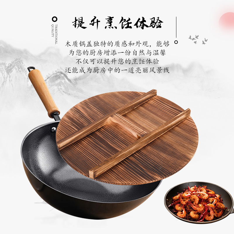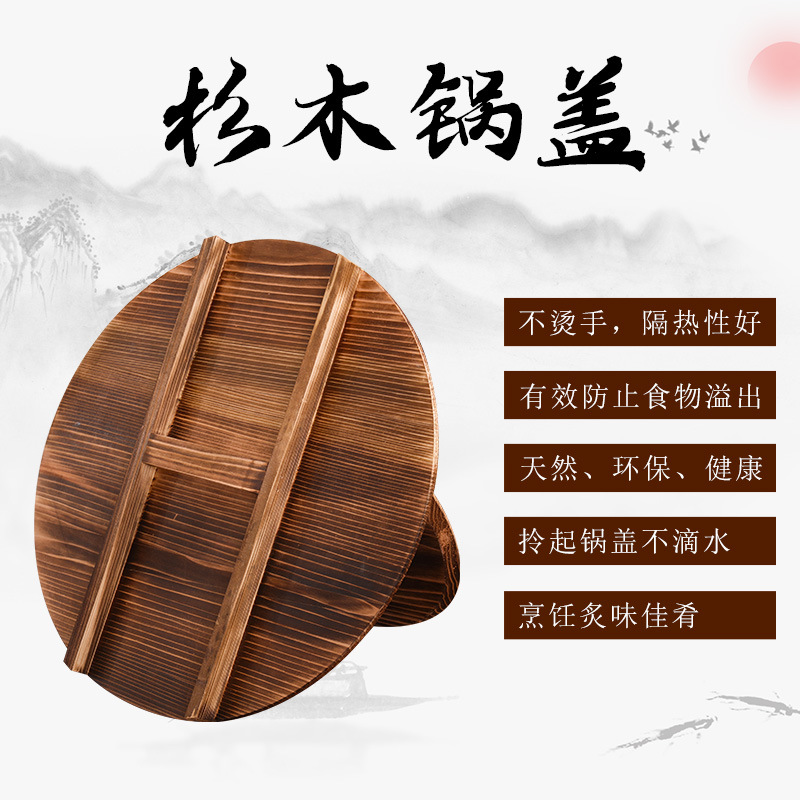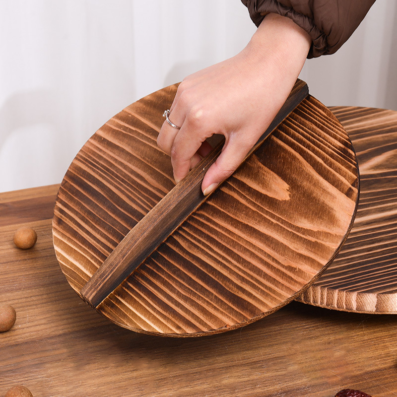 杉木锅盖家用圆形炒锅盖加厚碳化实木锅盖农村老式大锅盖水缸盖