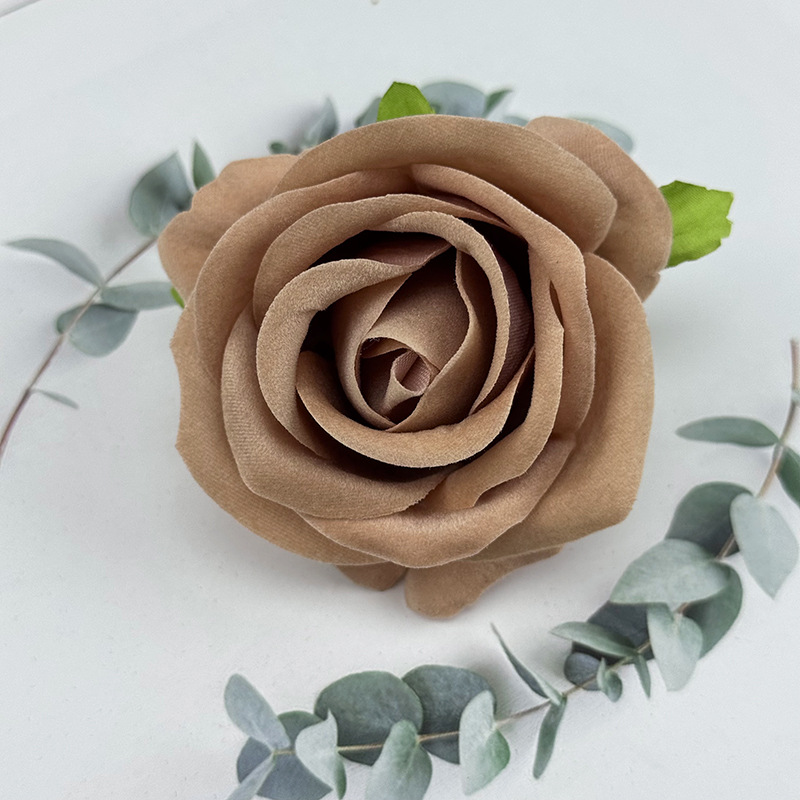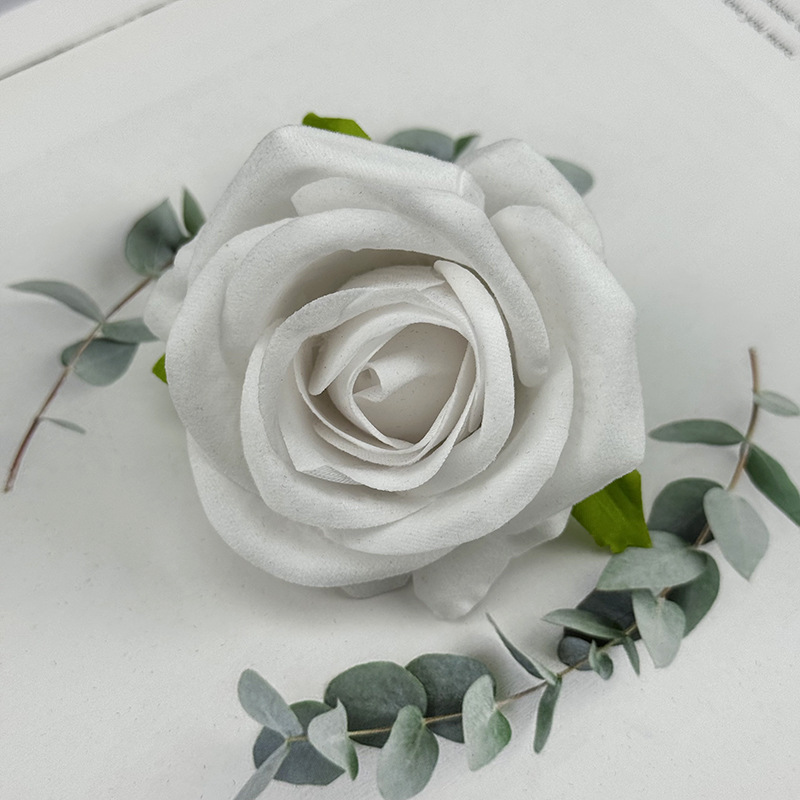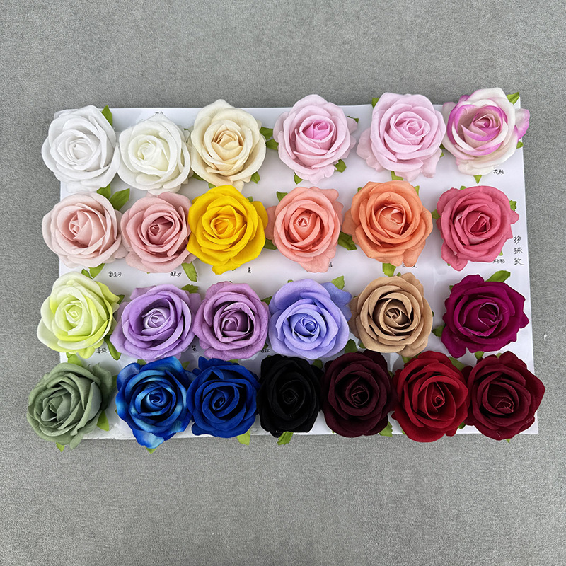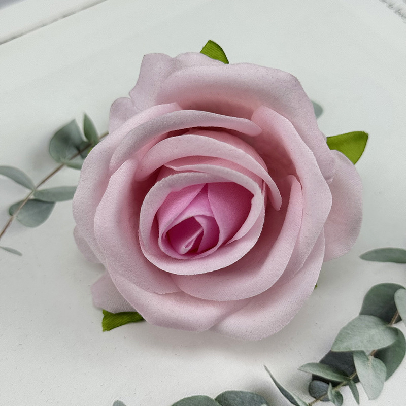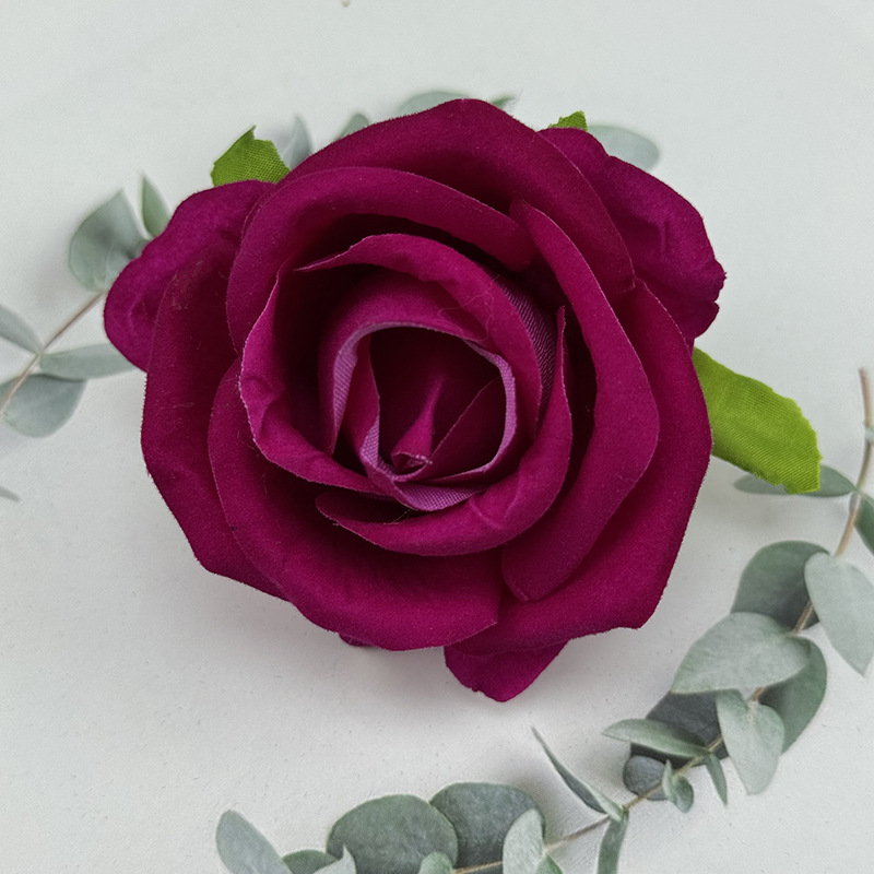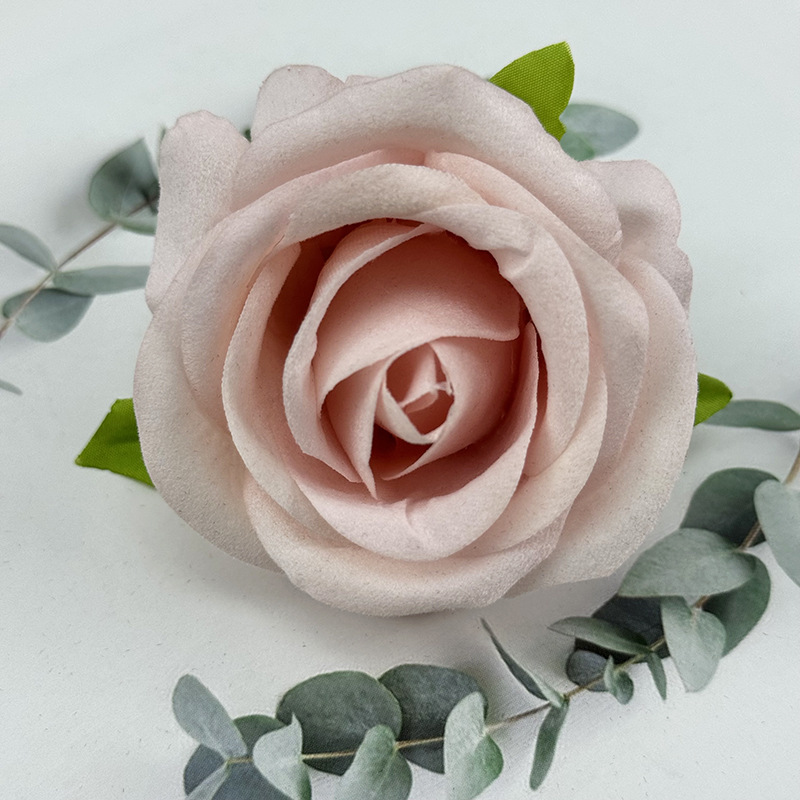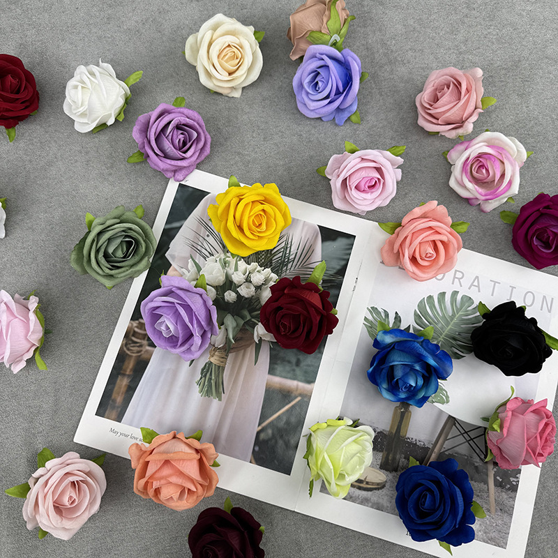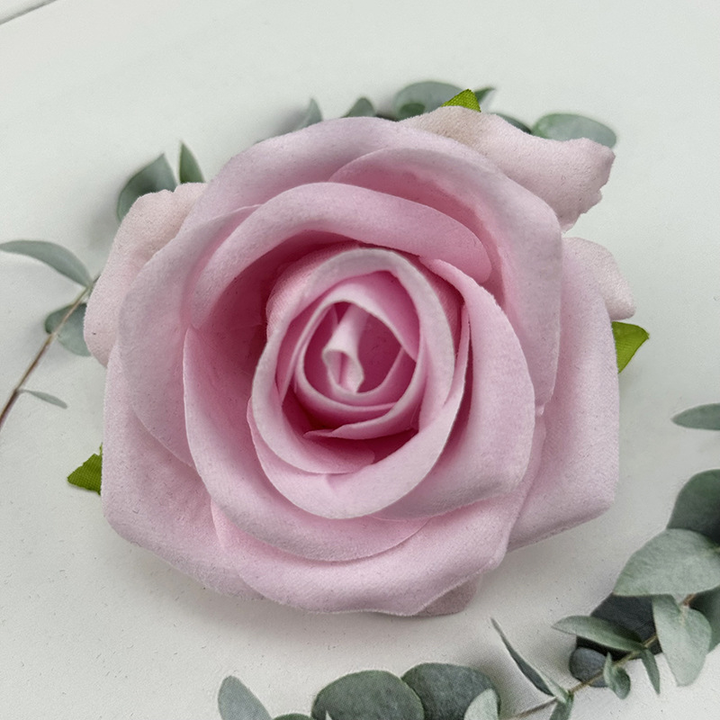 跨境新品仿真玫瑰花头绒布珍珠玫婚礼堂花墙装饰假花头摄影道具花