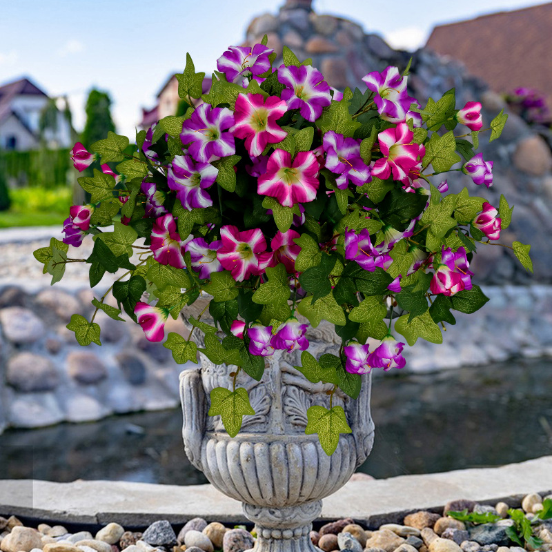 跨境亚马逊欧式复古罗马柱仿真牵牛花摆件户外喇叭花装饰客厅家居