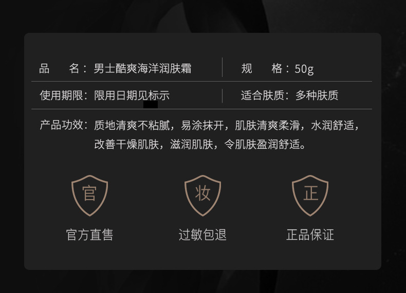 正品洁芙泉男士酷爽海洋润肤霜补水滋润保湿秋冬护肤男士面霜厂家