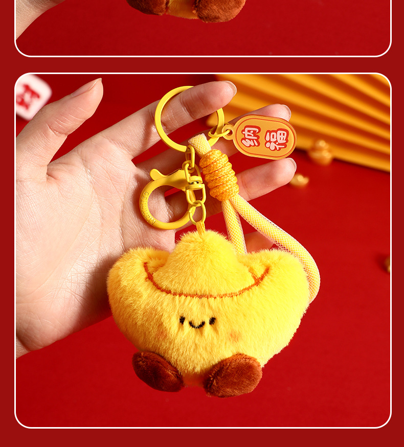 新年小礼物毛绒元宝钥匙扣链可爱包包汽车挂件钥匙链小礼品批发