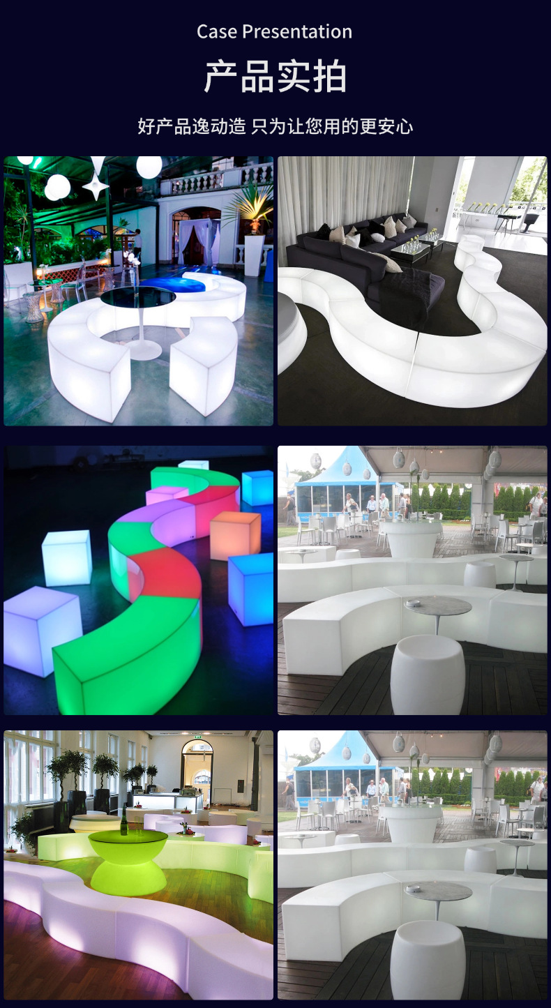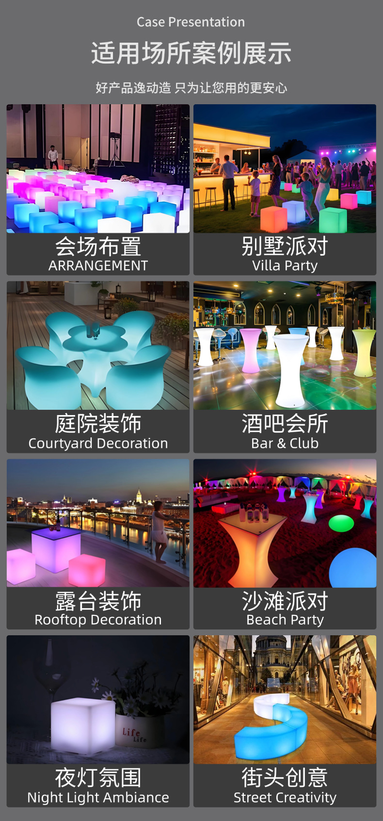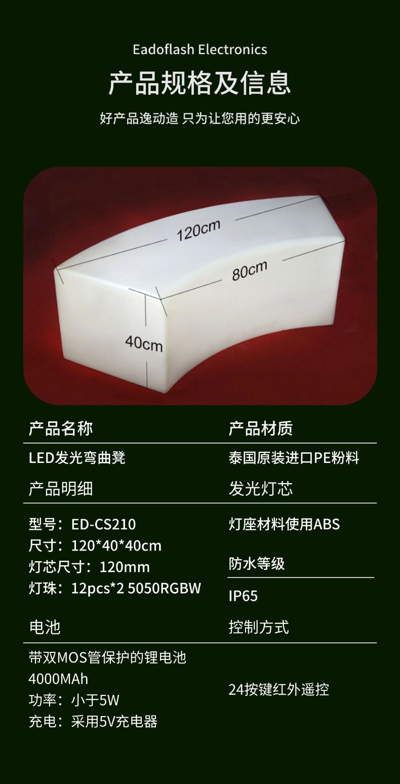 跨境LED发光弧形凳子七彩家具吧凳户外公园椅个性酒吧椅氛围凳子