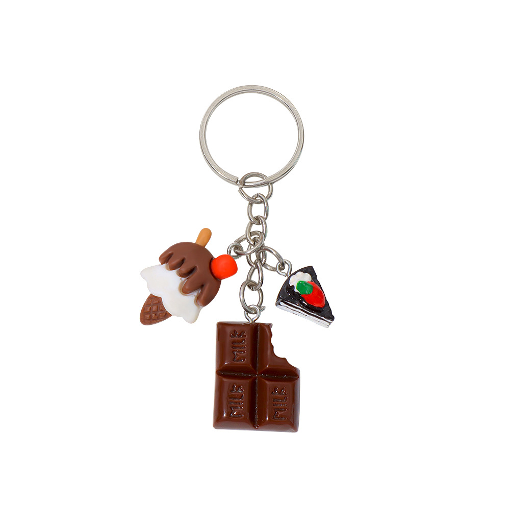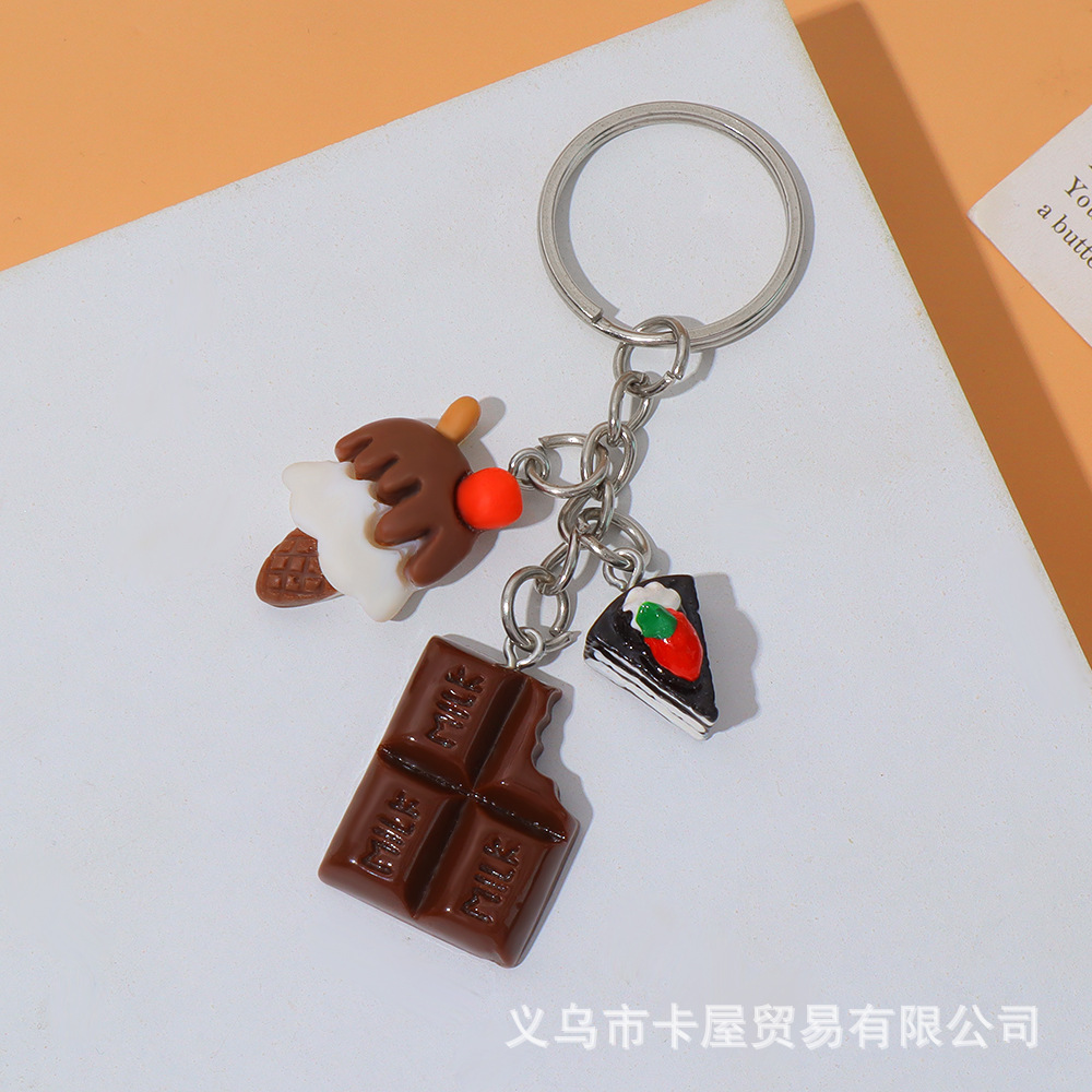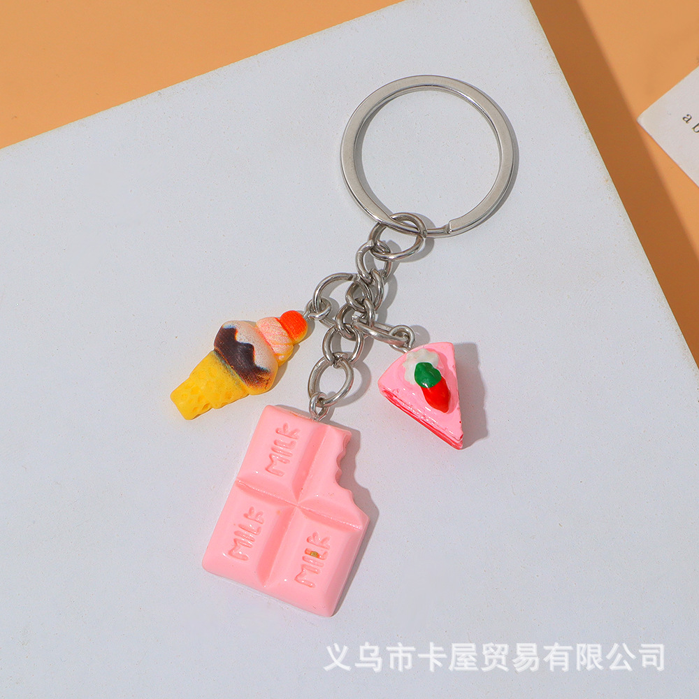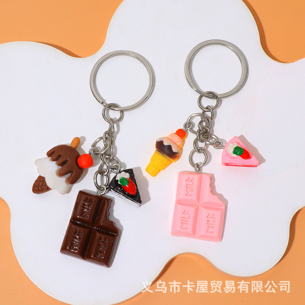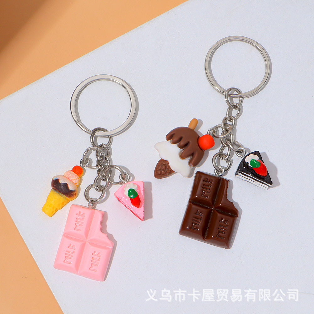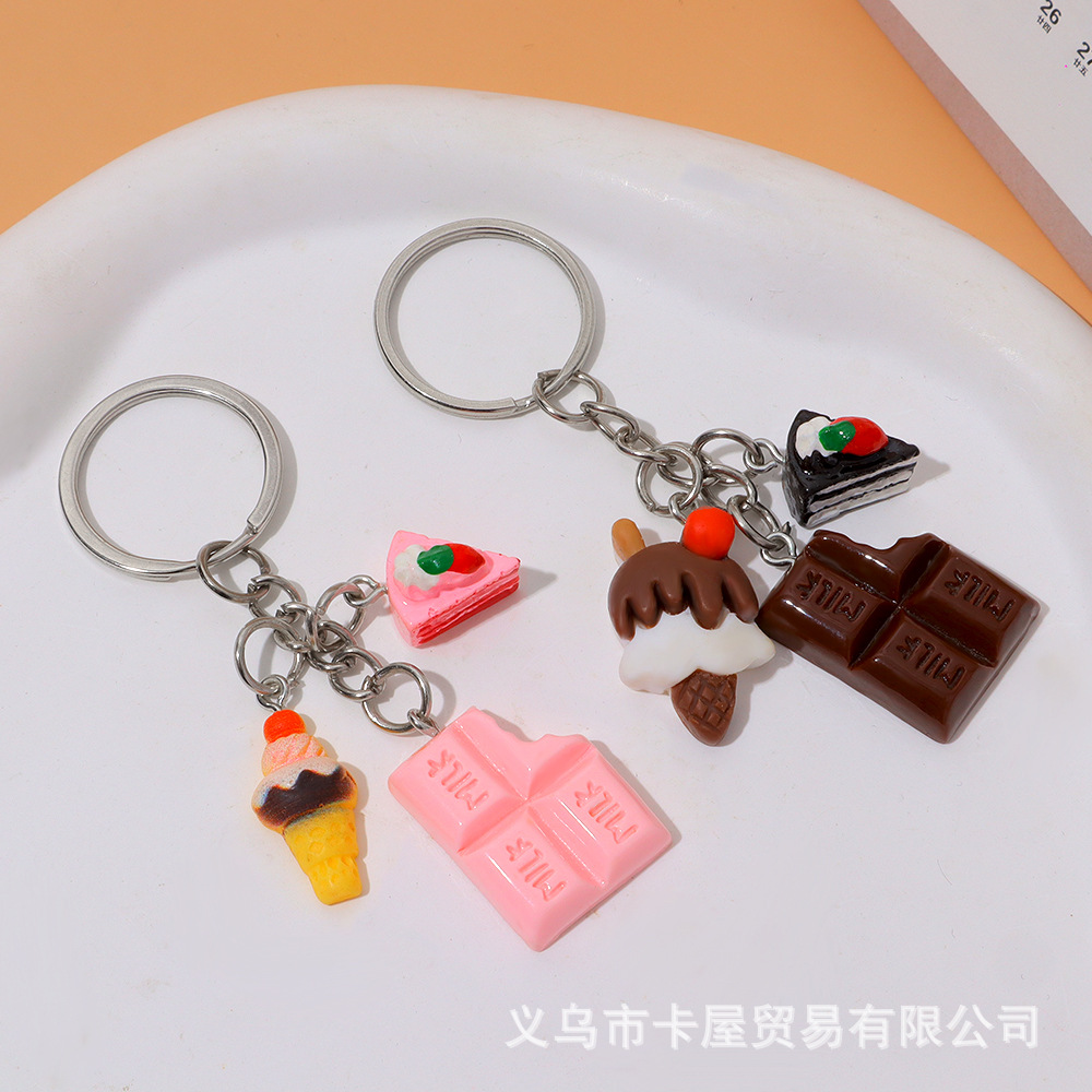 树脂仿真缺口巧克力冰淇淋字牌钥匙扣粉色迷你钥匙挂件闺蜜礼物款