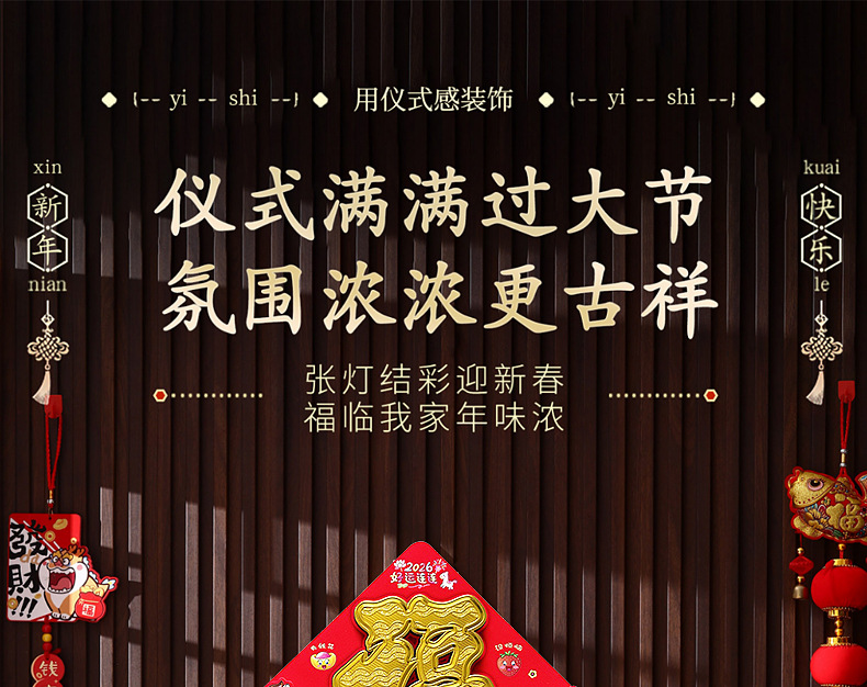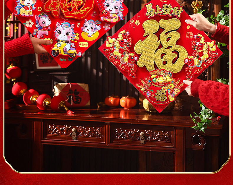 2026年福字门贴自粘式马年生肖植绒立体福字烫金门贴春节福字贴
