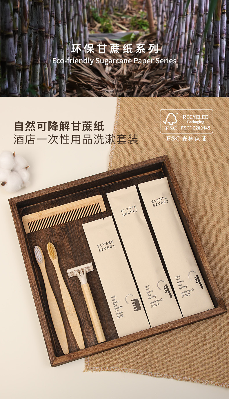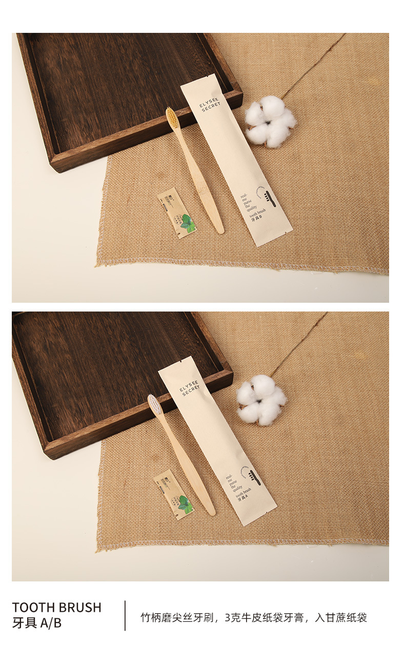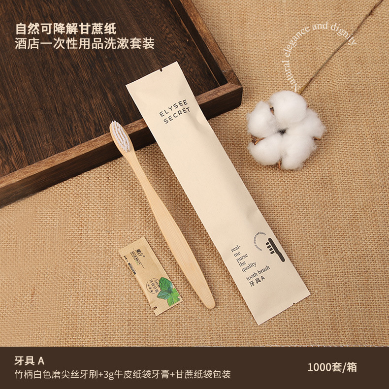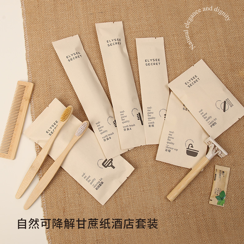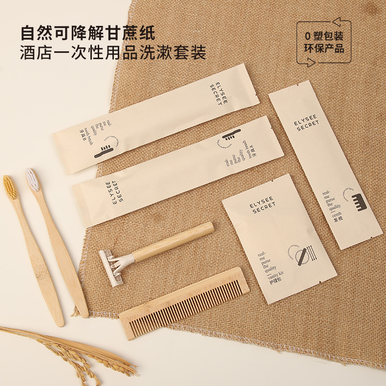可降解甘蔗纸酒店一次性竹木牙刷梳子民宿环保洗漱套装跨境外贸
