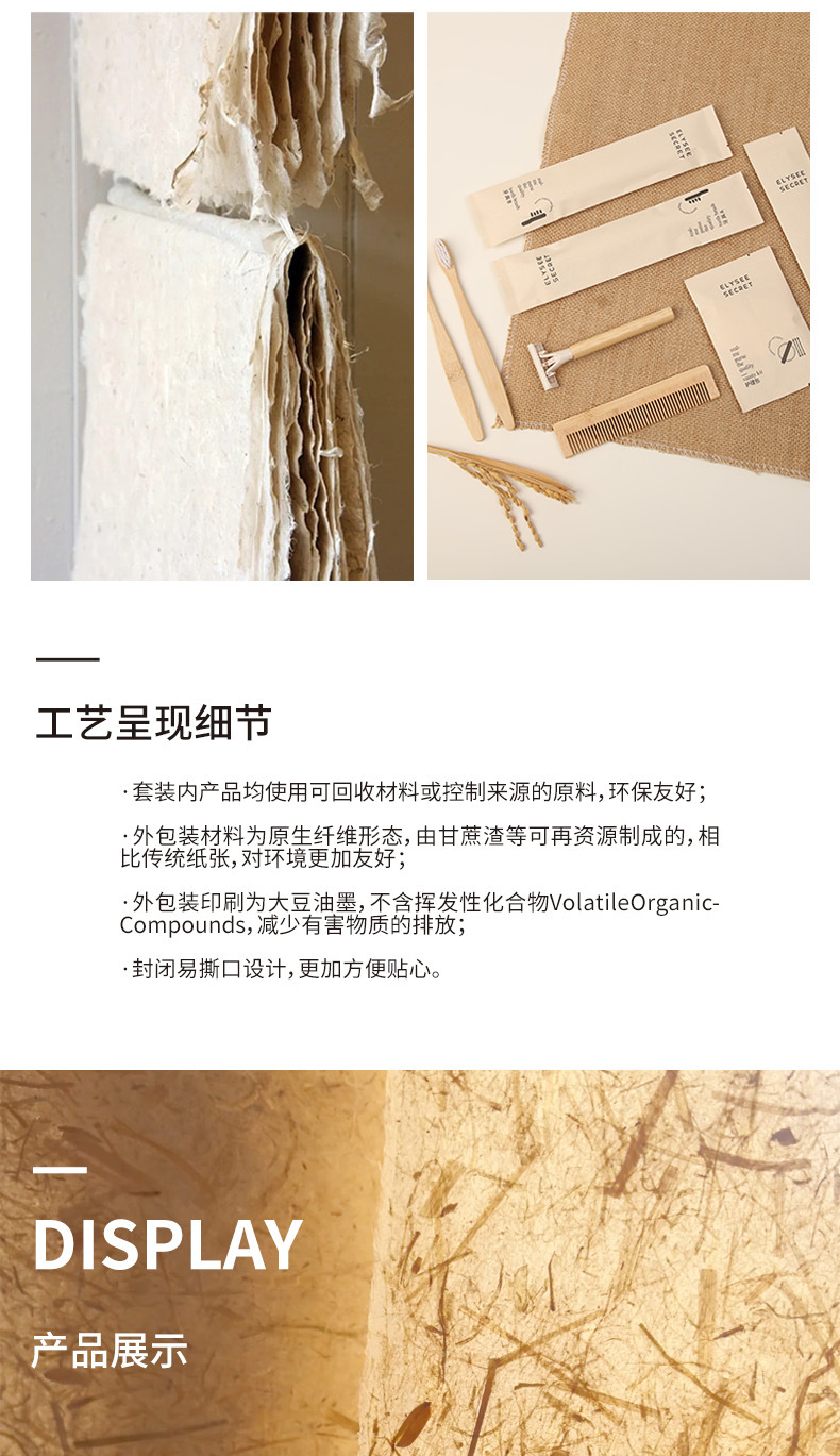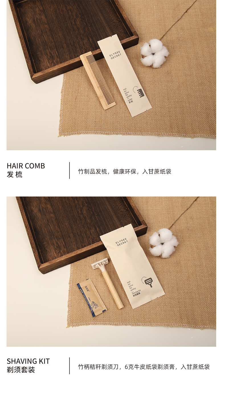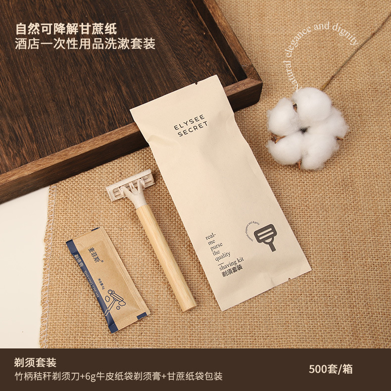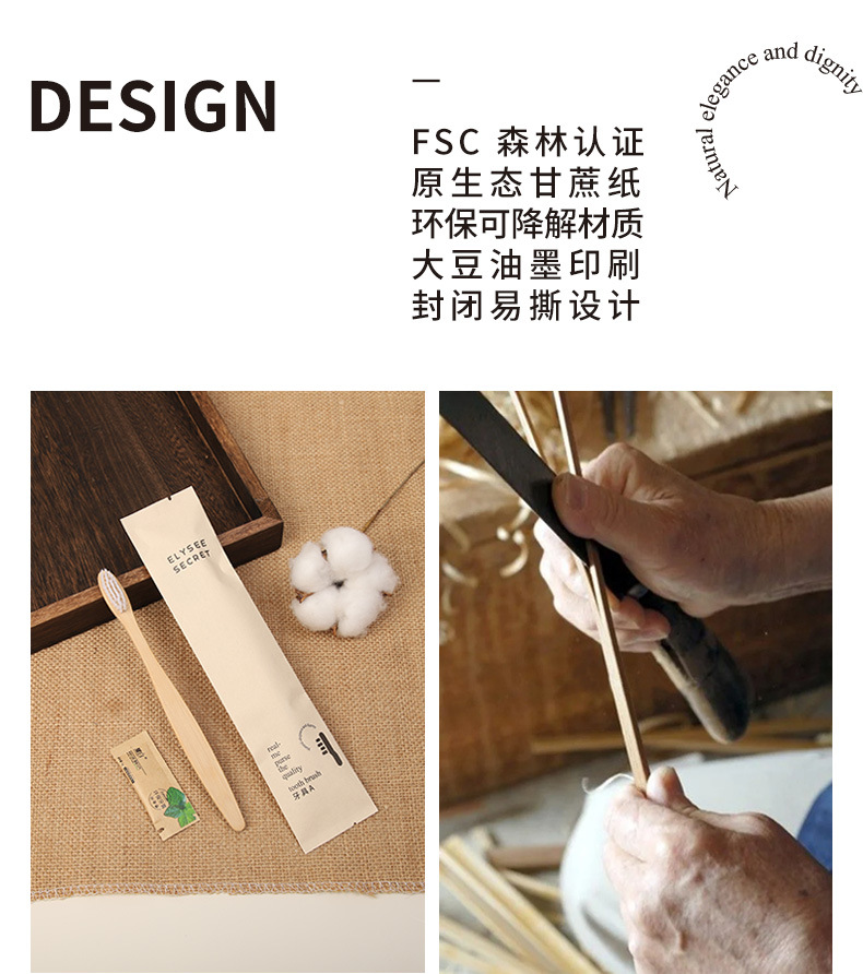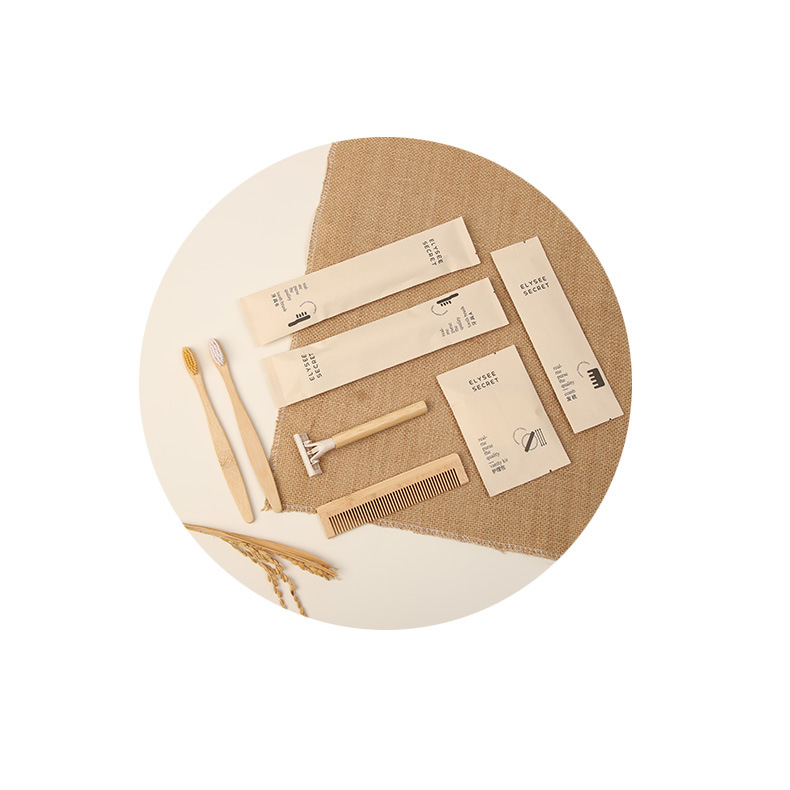 可降解甘蔗纸酒店一次性竹木牙刷梳子民宿环保洗漱套装跨境外贸