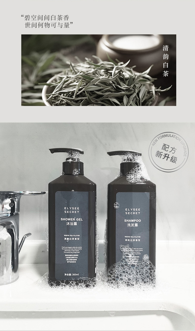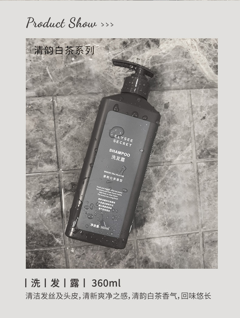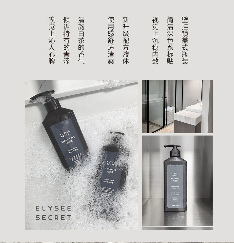 Elysee Secret白茶洗发水沐浴露锁盖壁挂瓶酒店民宿洗护用品套装