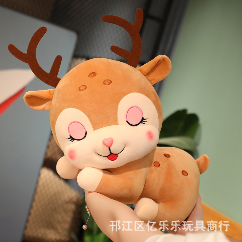 可爱梦幻小鹿公仔毛绒玩具卡通趴姿小鹿抱枕玩偶娃娃床上装饰靠枕