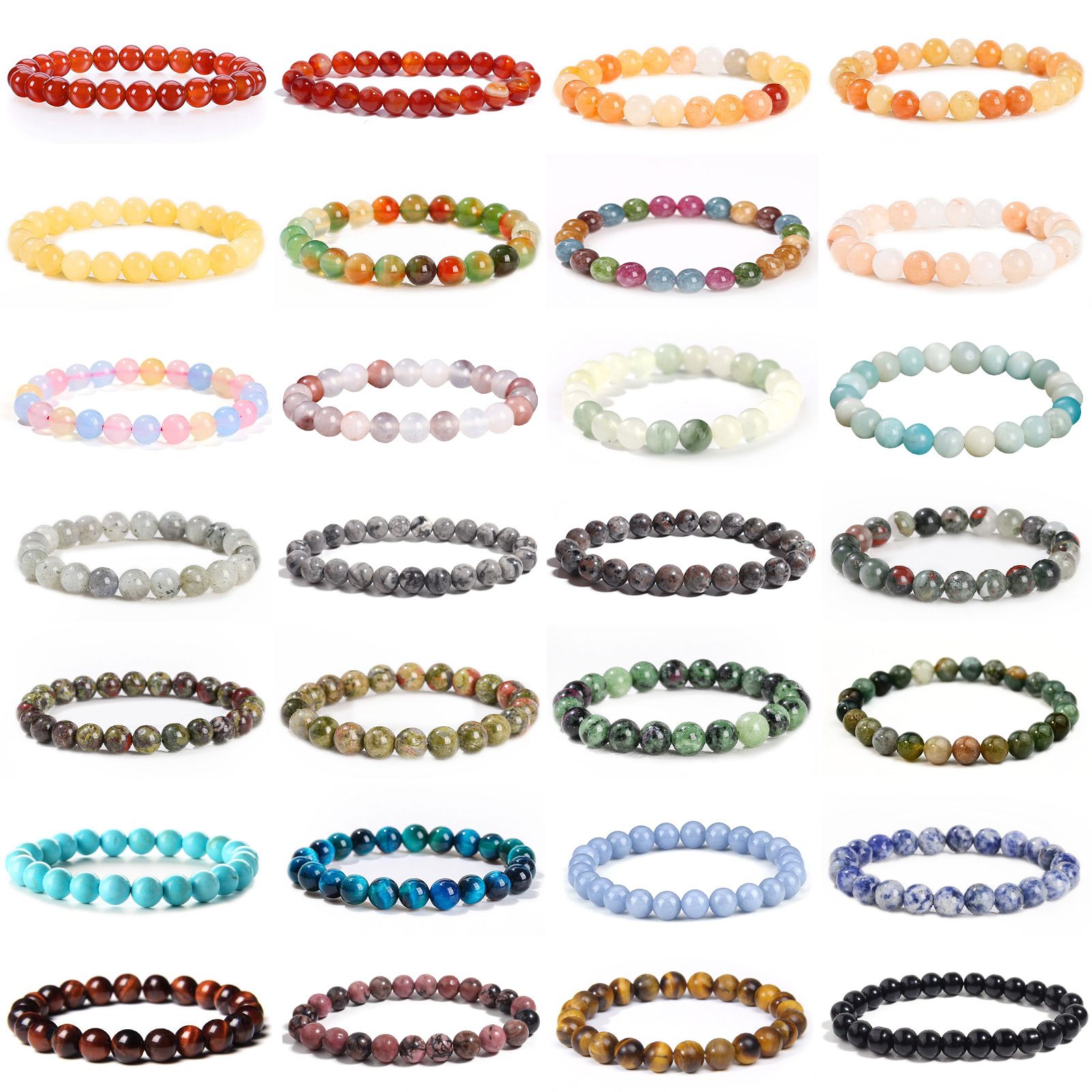 跨境热销天然石水晶玛瑙圆珠手串男女虎眼石简约单圈手链饰品批发