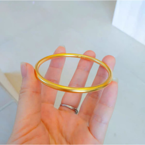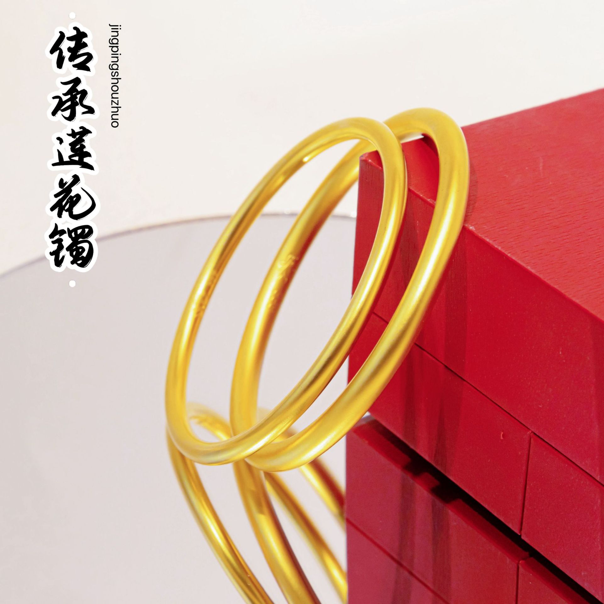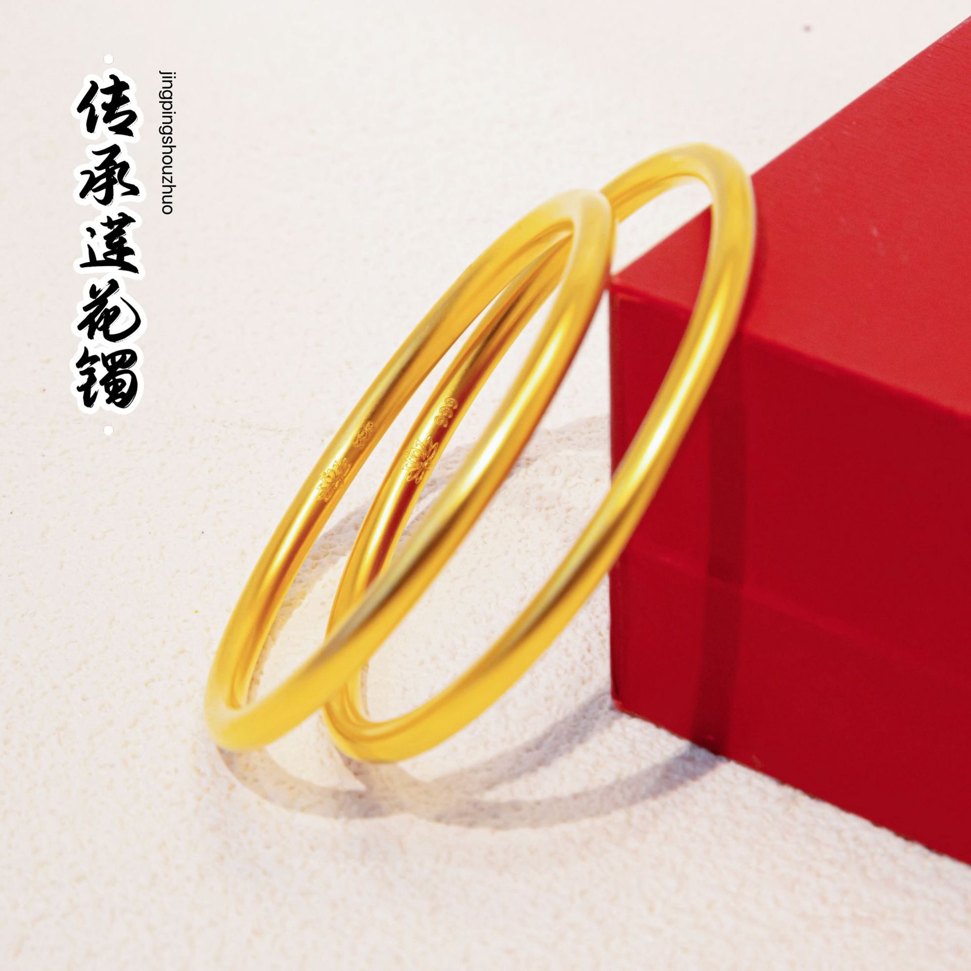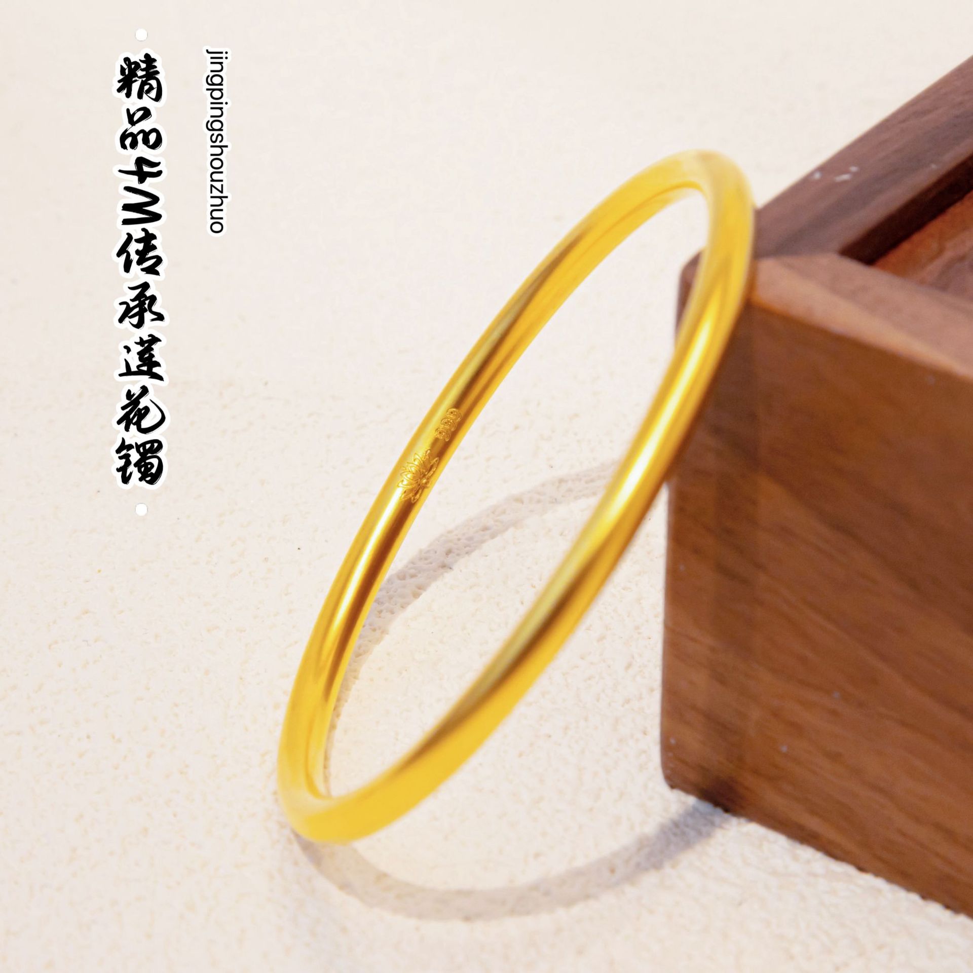 高保色黄铜镀金莲花亮面泥鳅背手镯 素圈金镯子里外一色百搭结婚