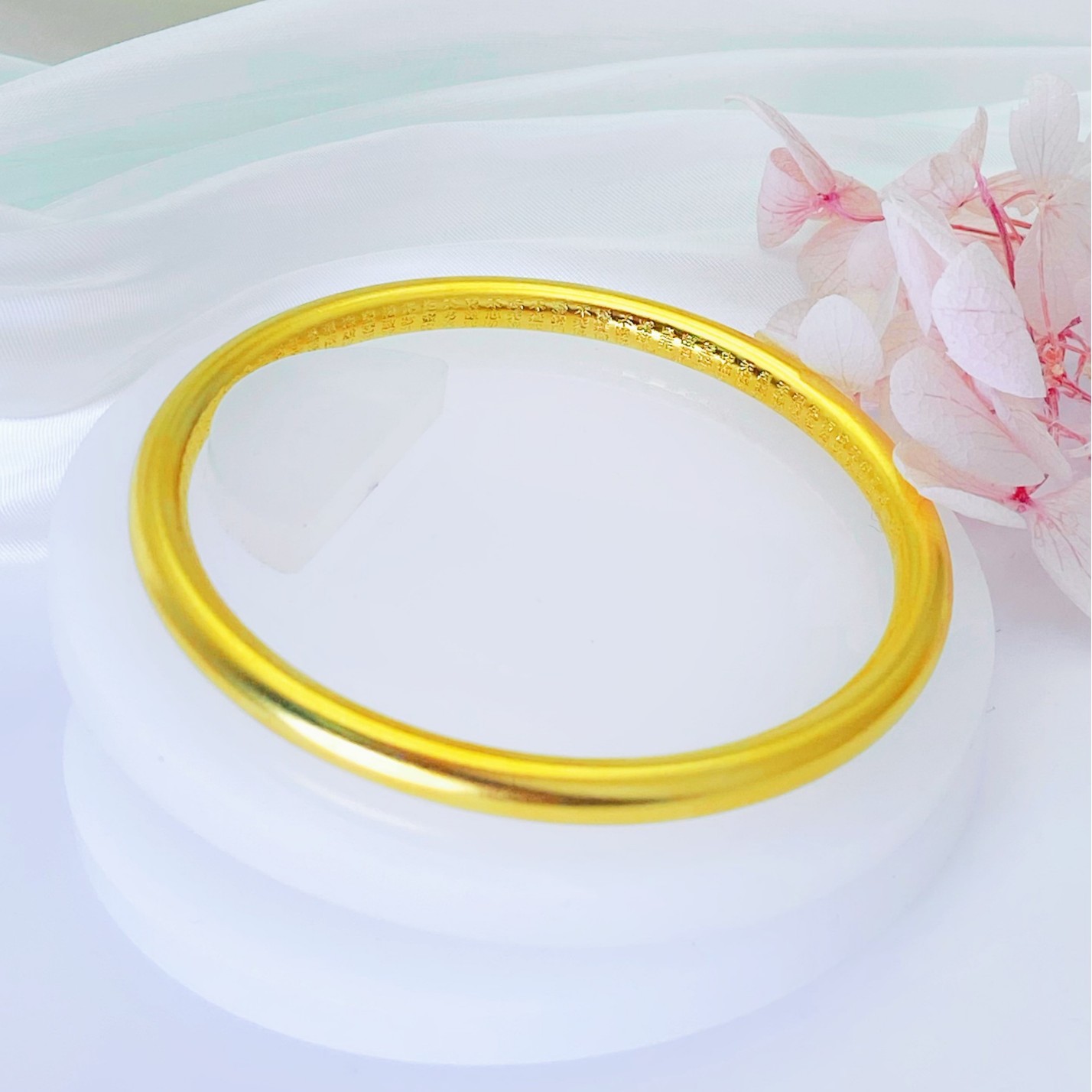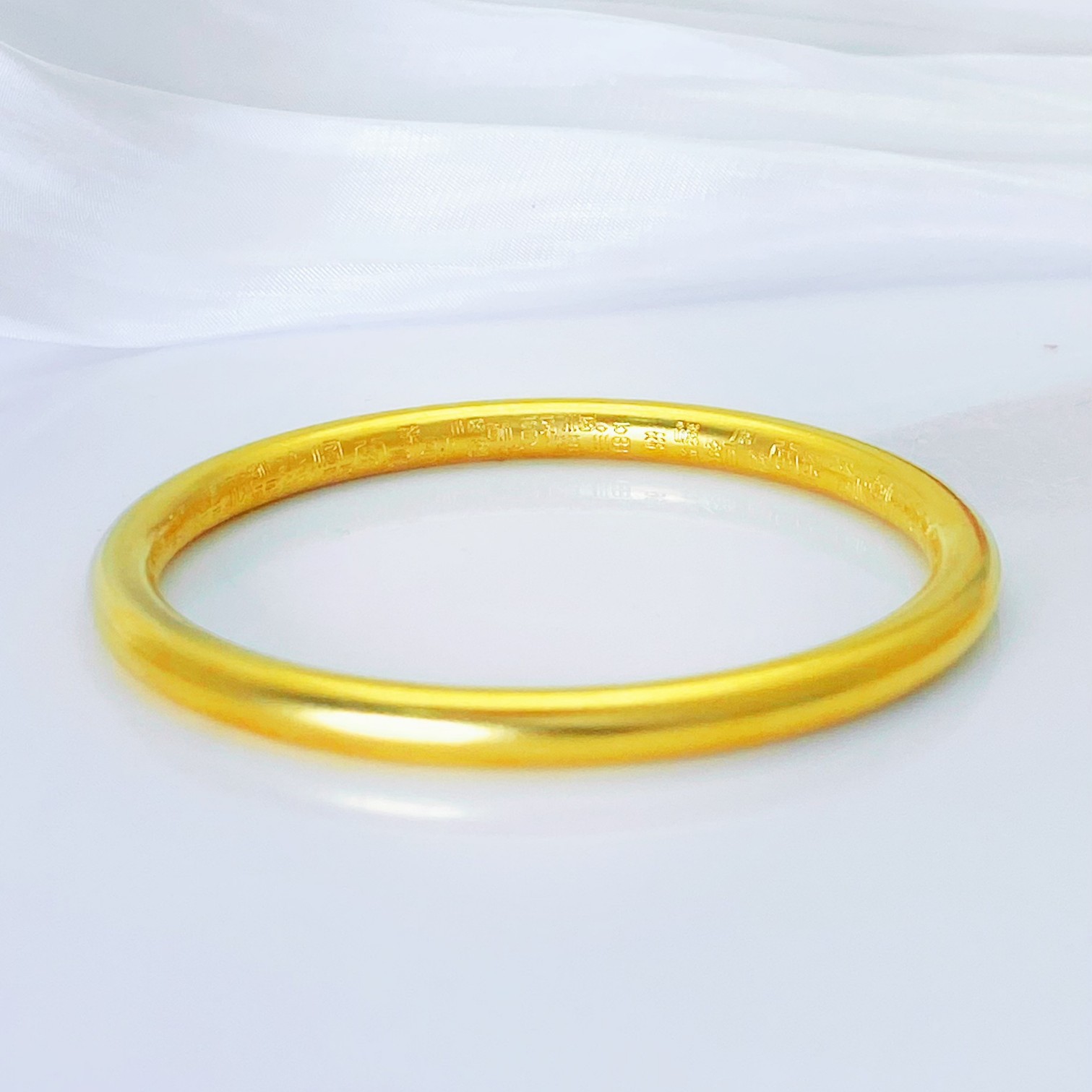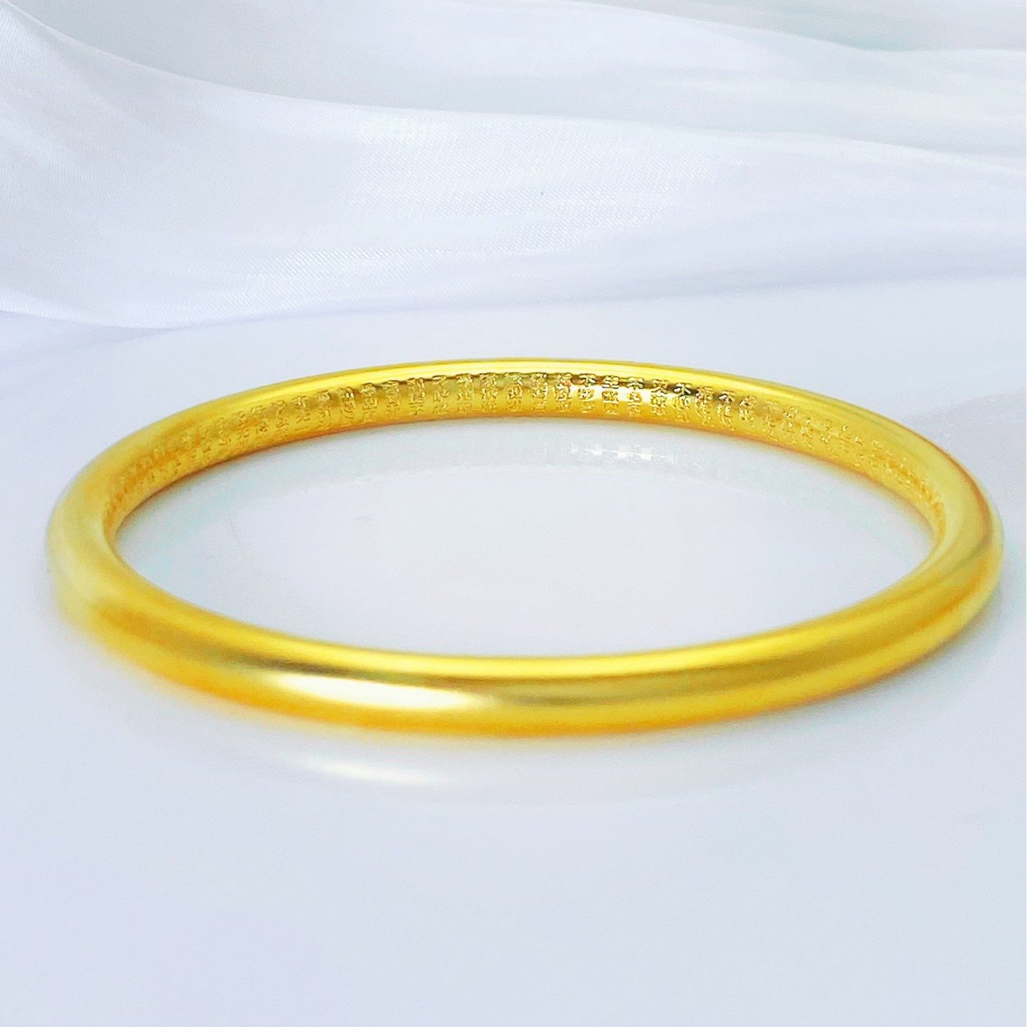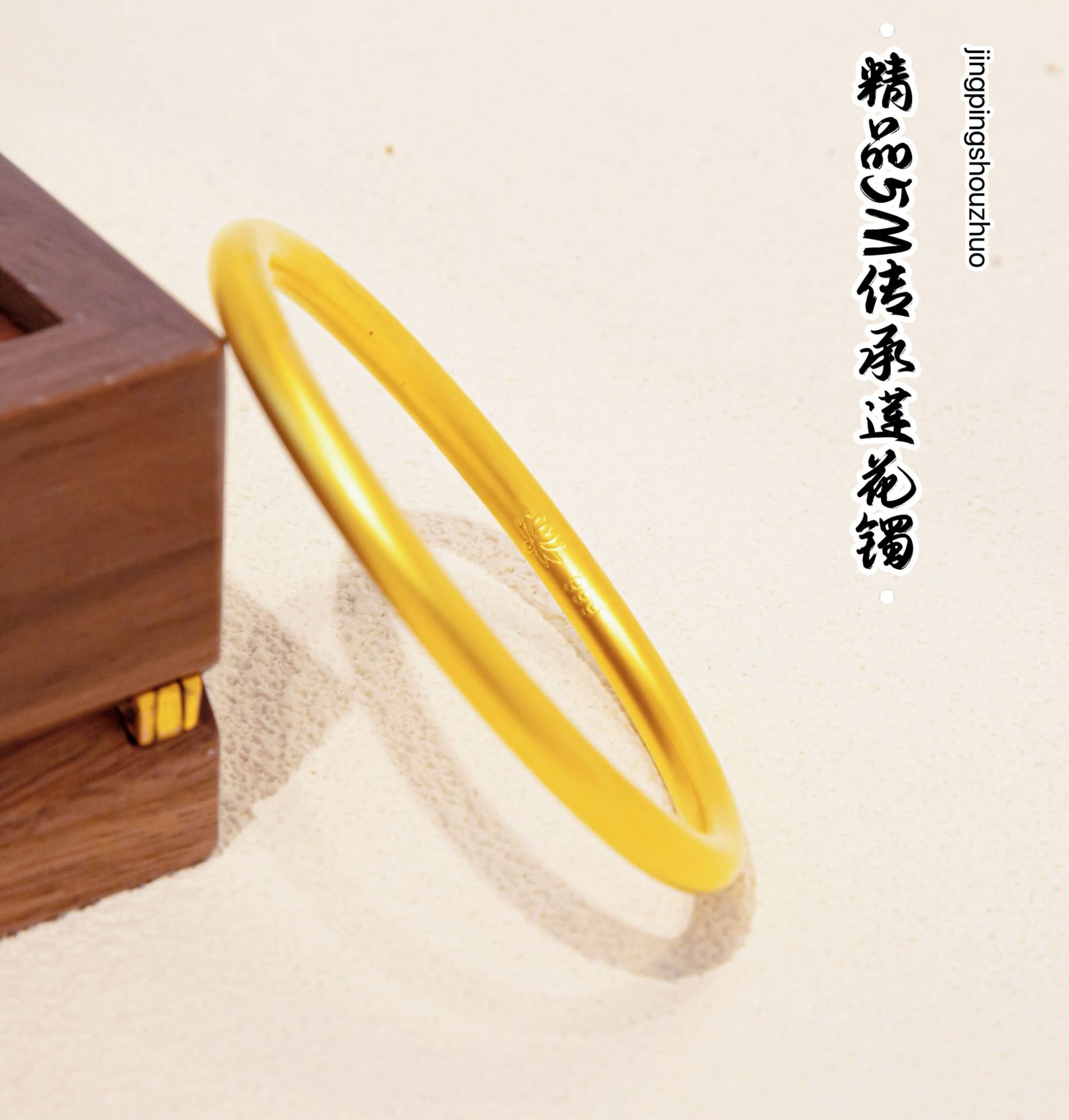 高保色黄铜镀金莲花亮面泥鳅背手镯 素圈金镯子里外一色百搭结婚