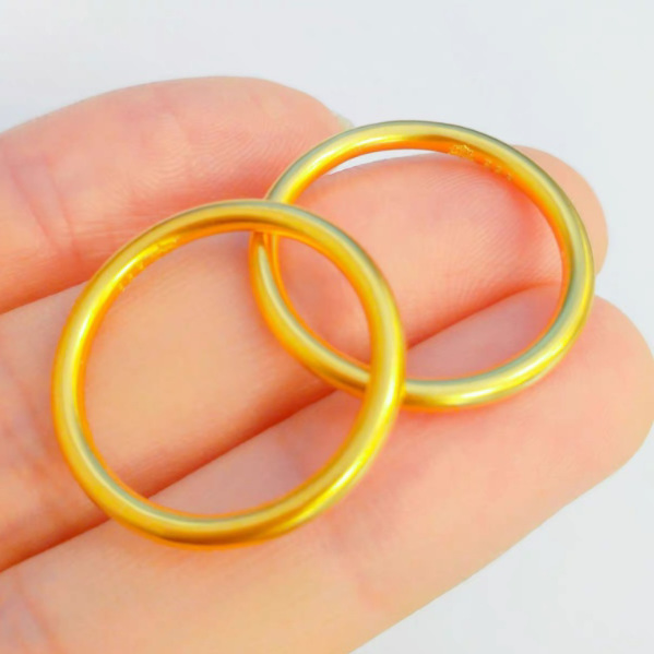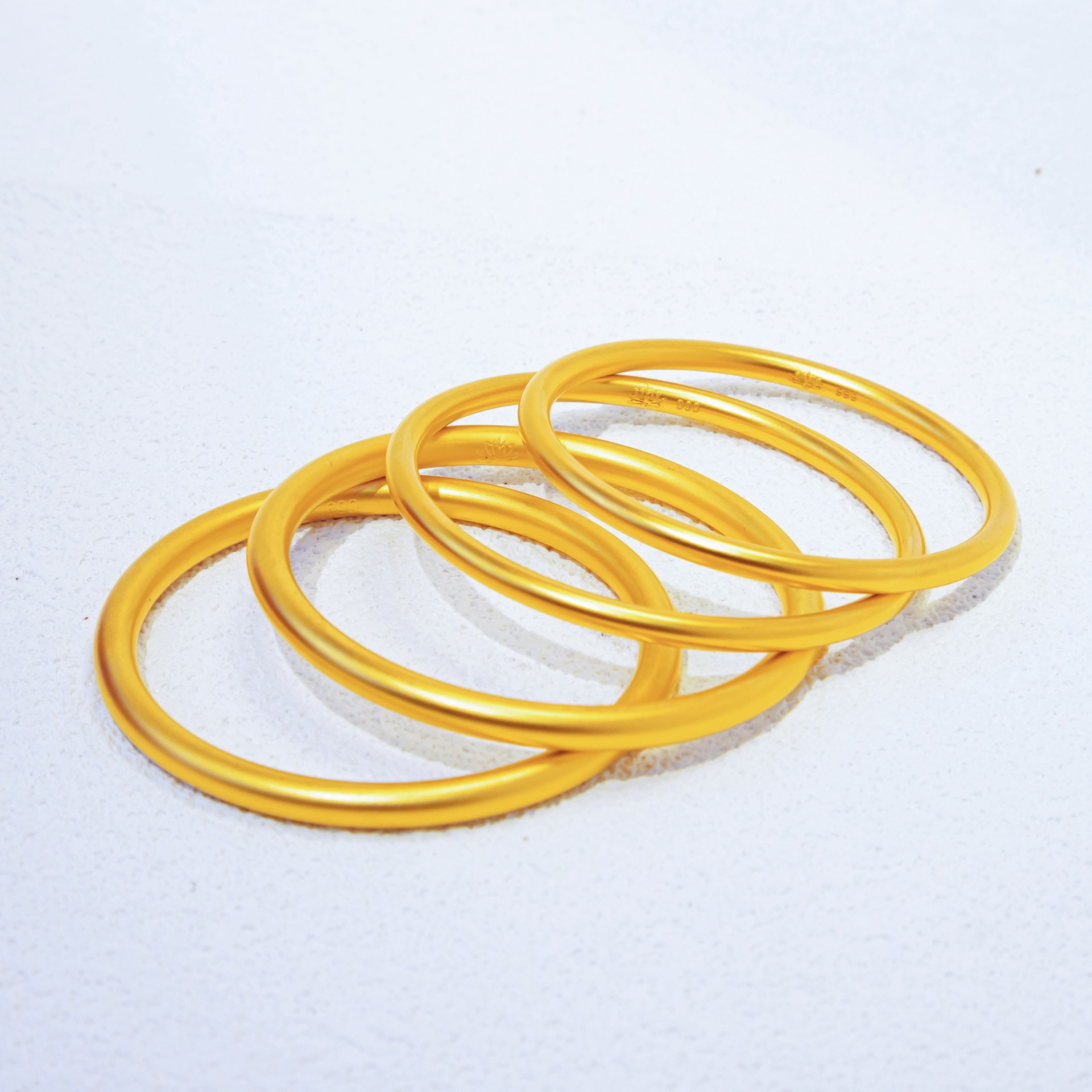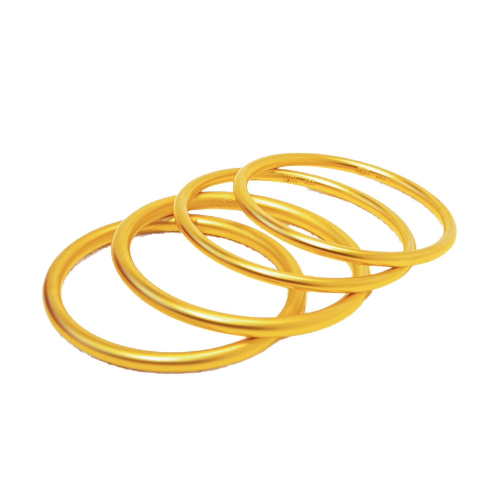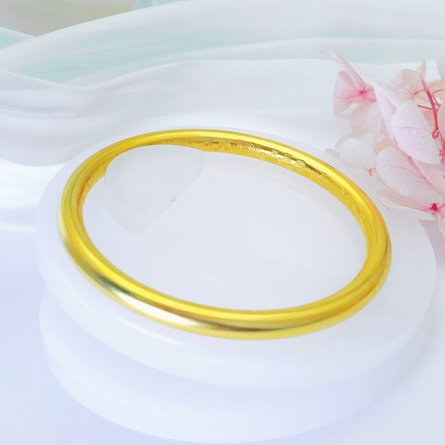 高保色黄铜镀金莲花亮面泥鳅背手镯 素圈金镯子里外一色百搭结婚
