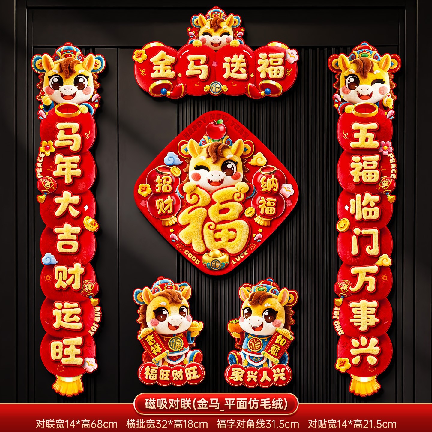 马年磁吸对联春联批货2026新款过年春节福字门贴新年装饰年货布置