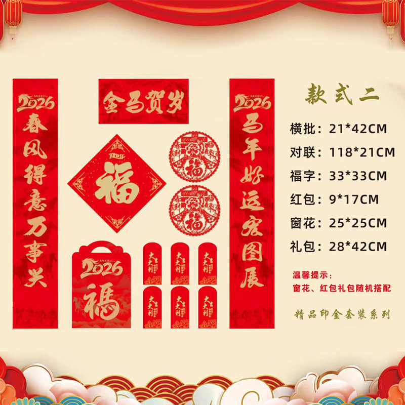 2026年春节广告对联定制大礼包定做logo银行企业宣传马年春联礼包