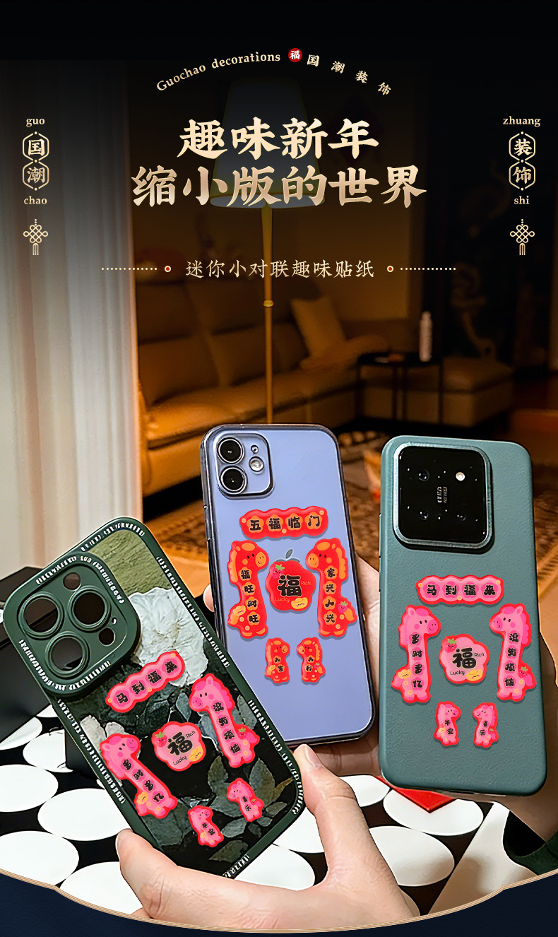 手机迷你小对联2026马年春节过年春联喜庆福字手机壳贴纸新年装饰