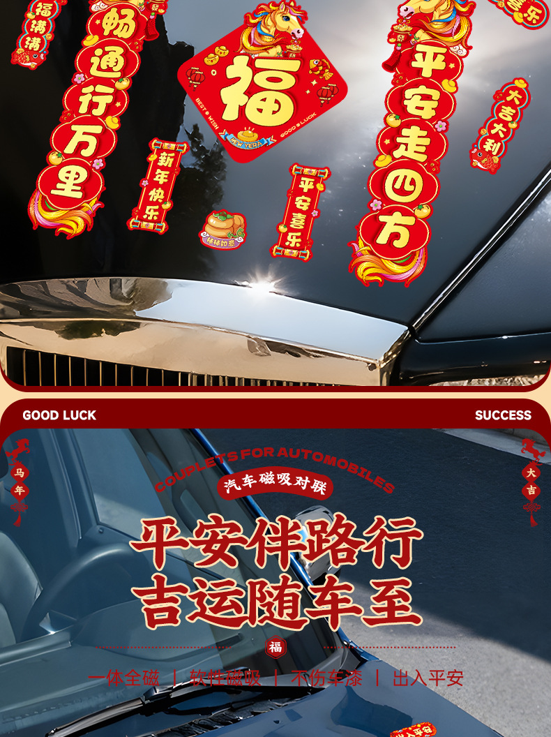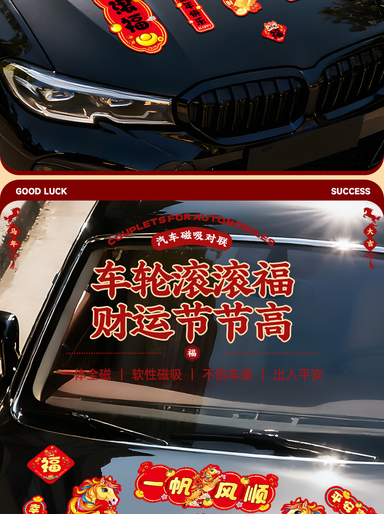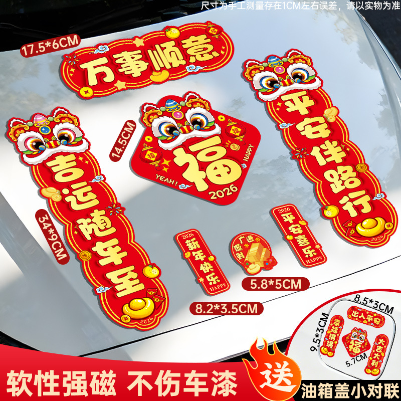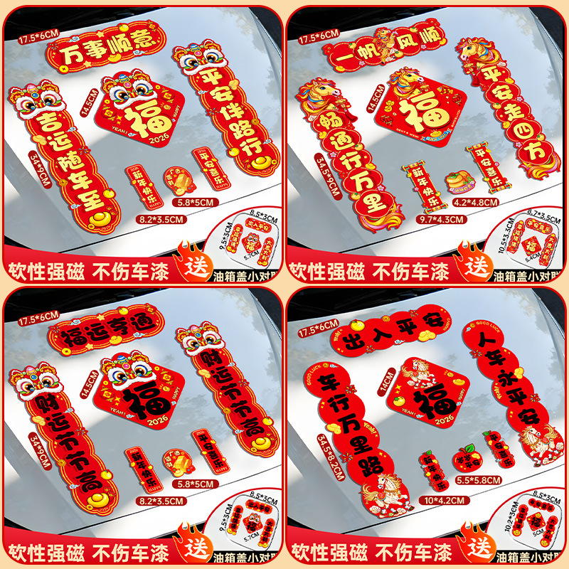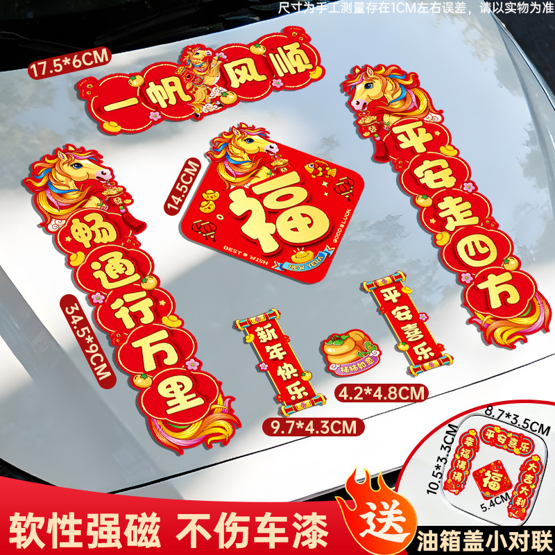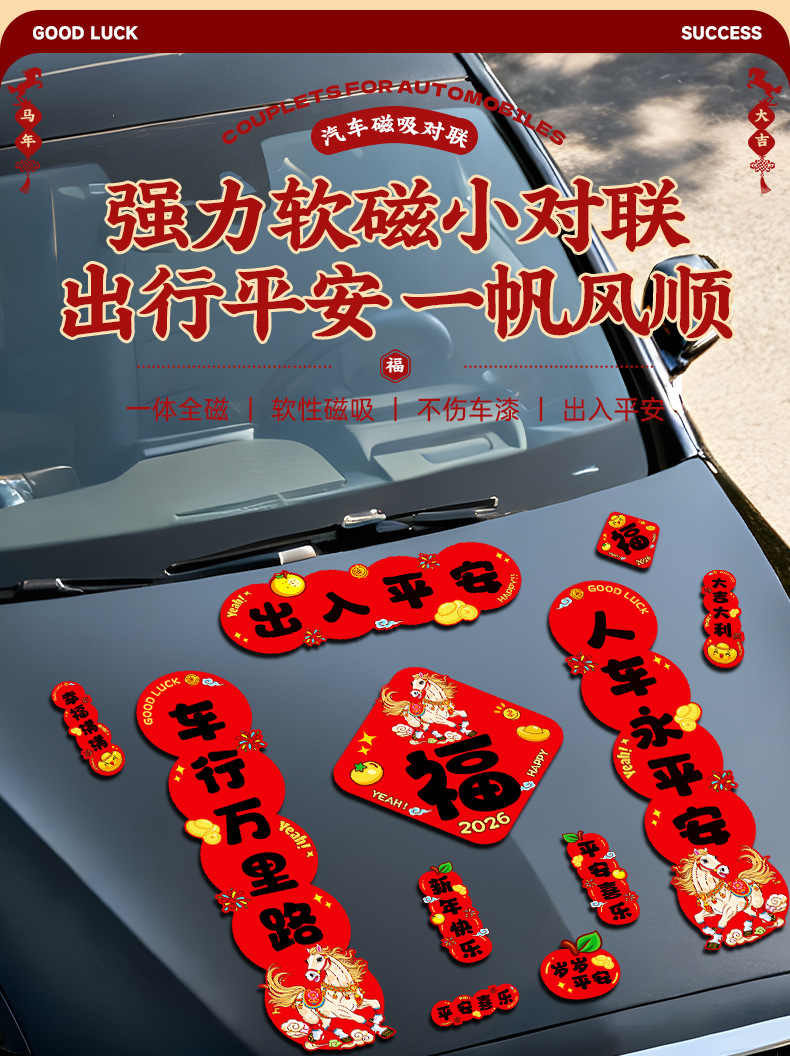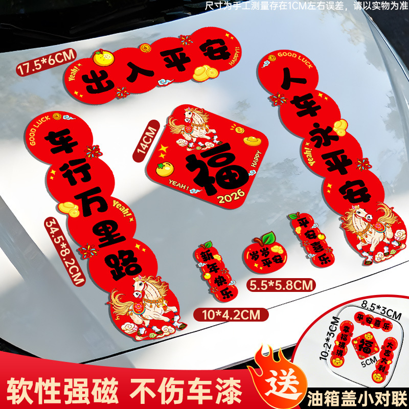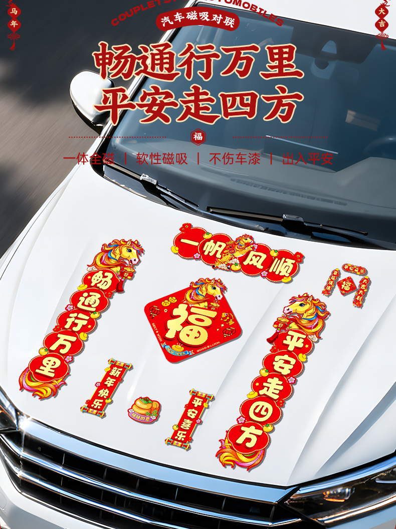 马年磁吸车贴对联2026汽车对联过年装饰车用贴纸春联福字出入平安