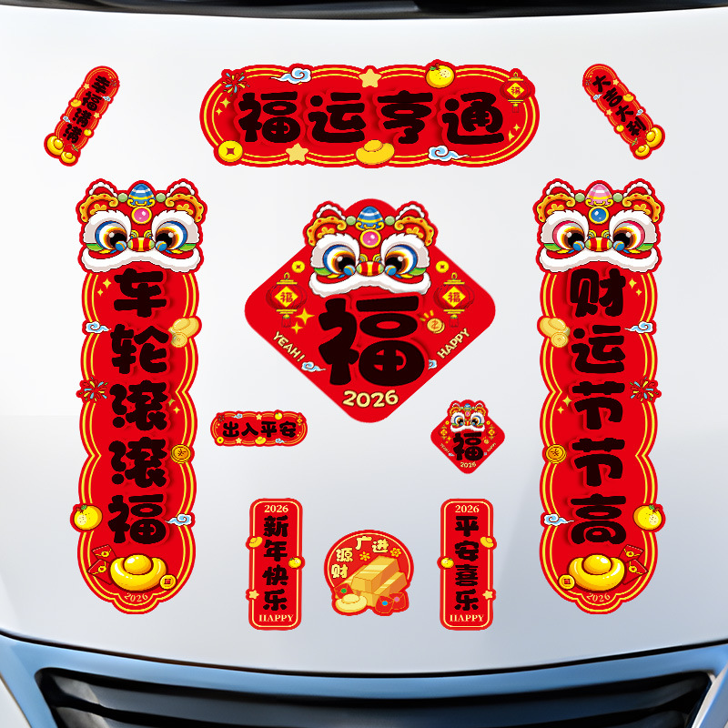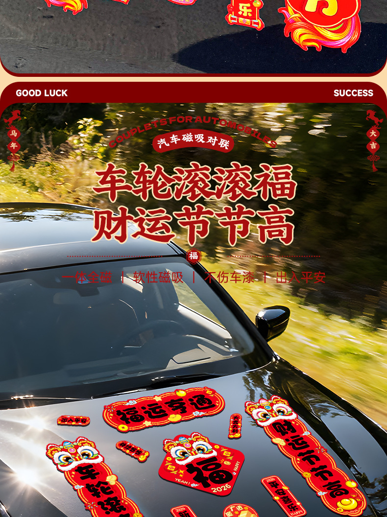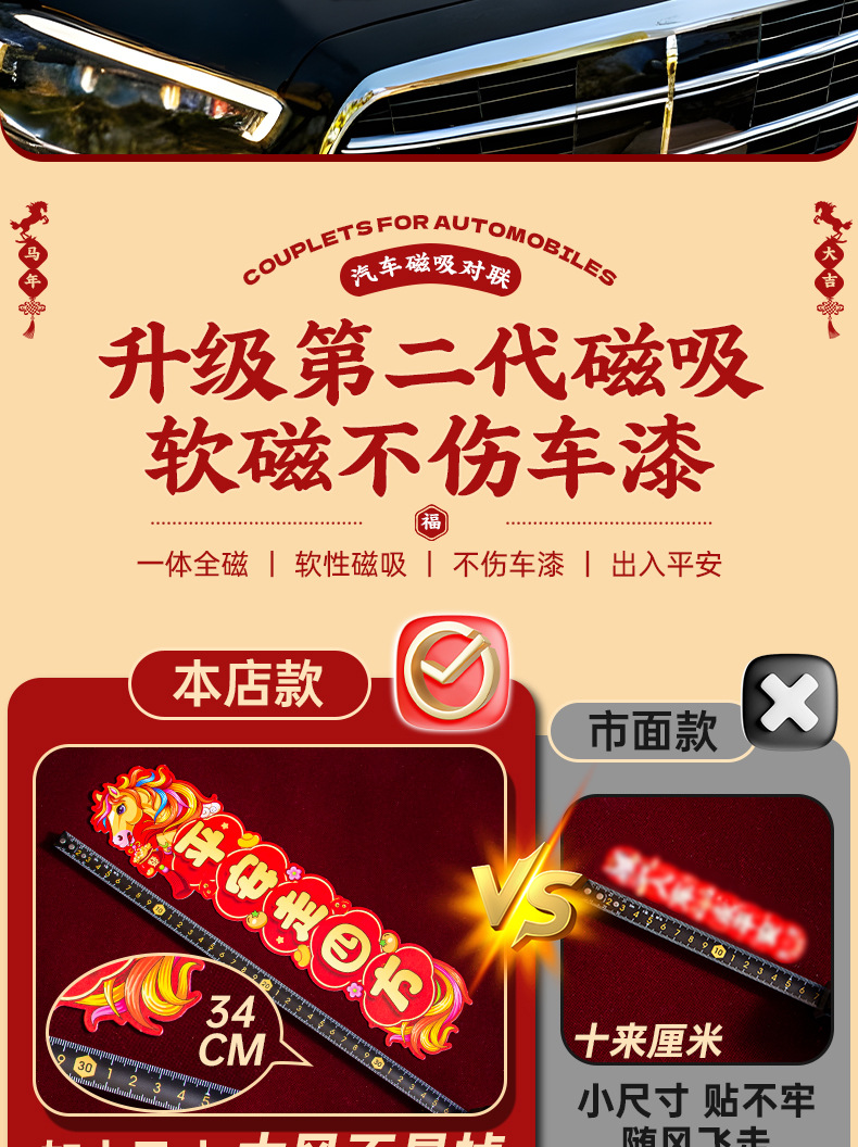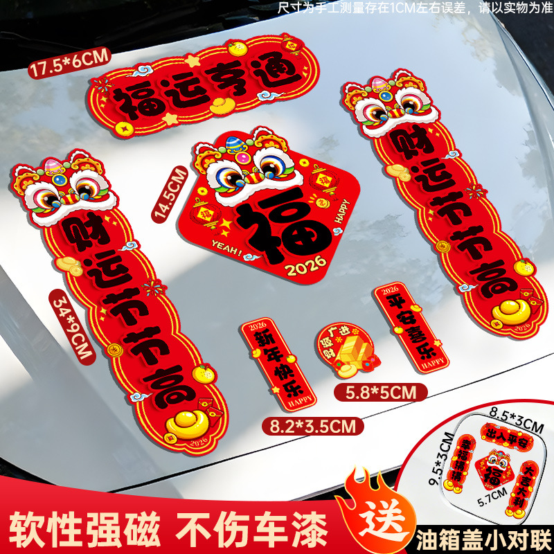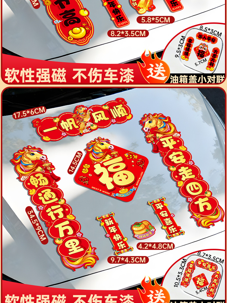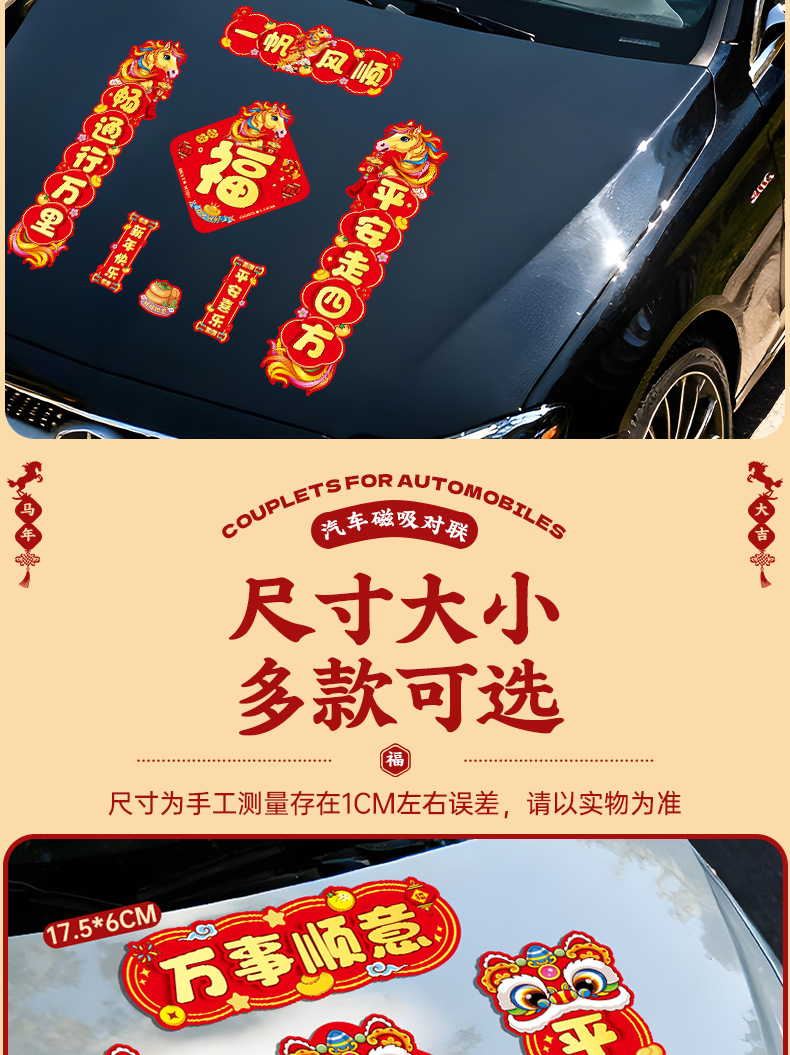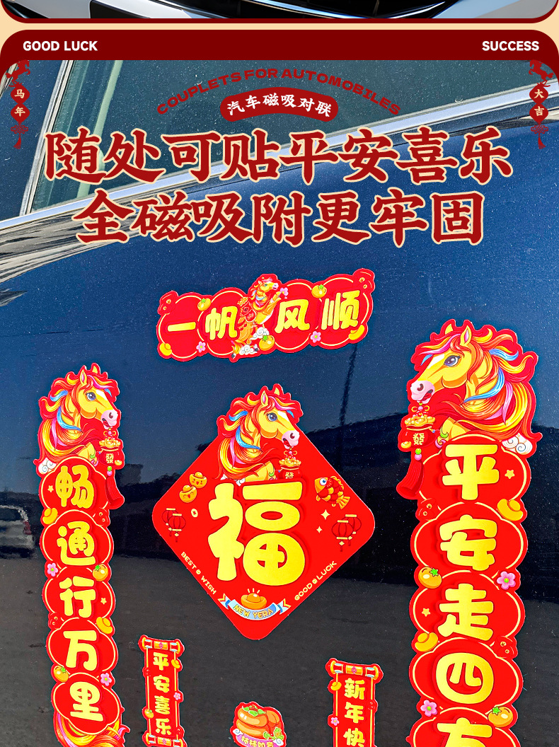 马年磁吸车贴对联2026汽车对联过年装饰车用贴纸春联福字出入平安