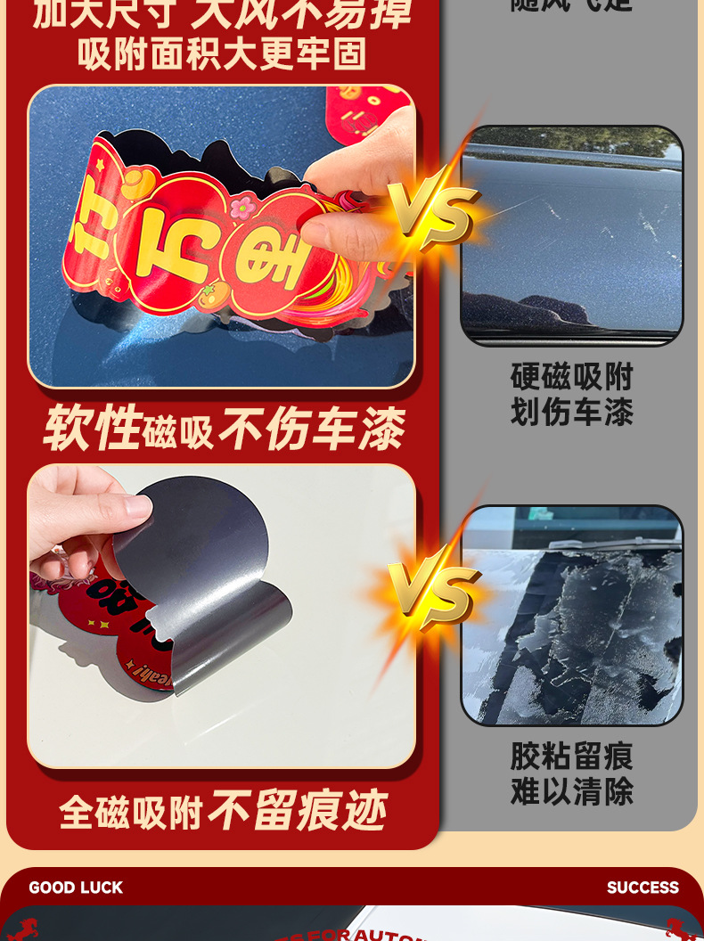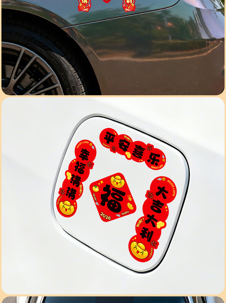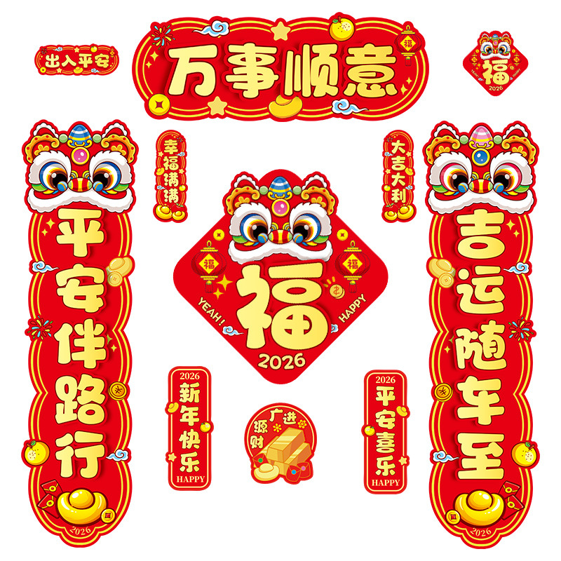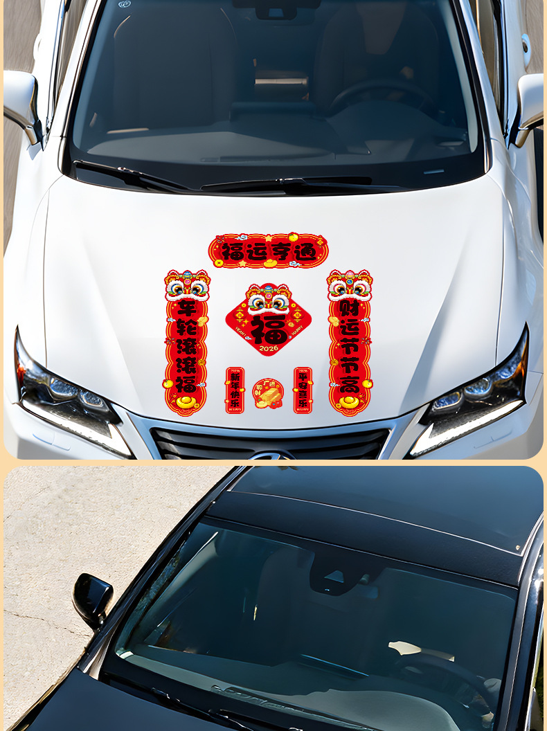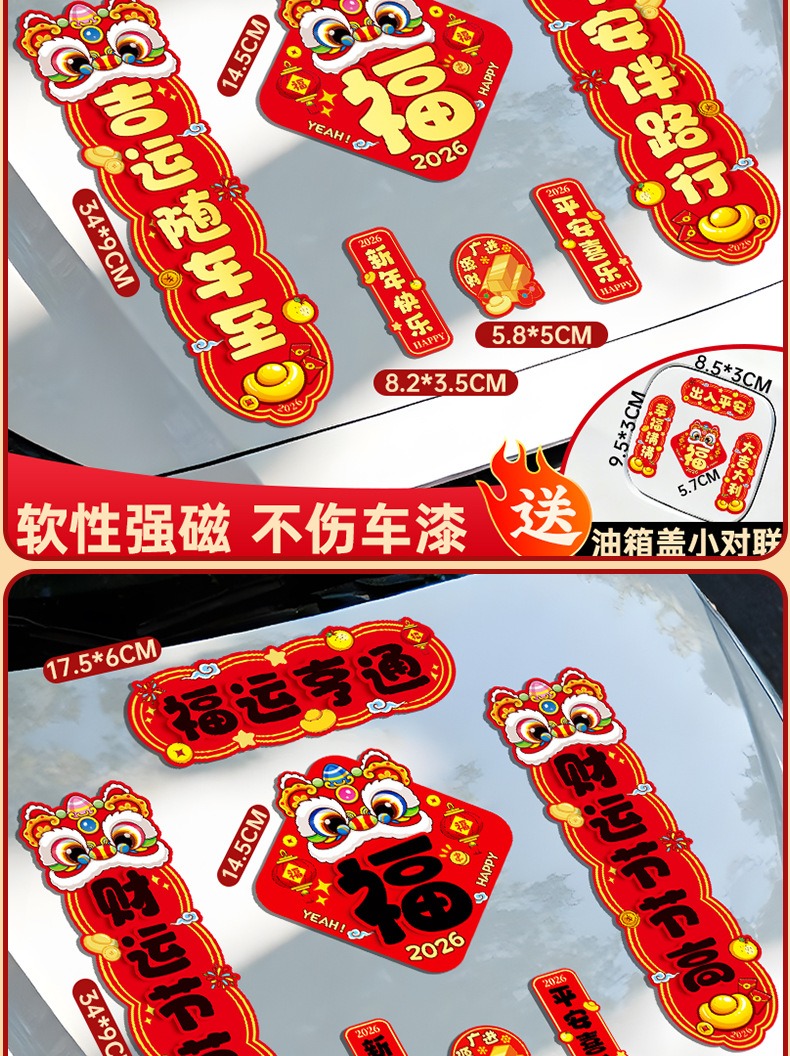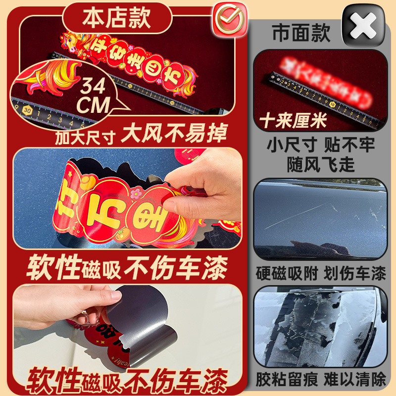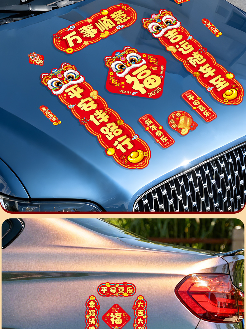 马年磁吸车贴对联2026汽车对联过年装饰车用贴纸春联福字出入平安