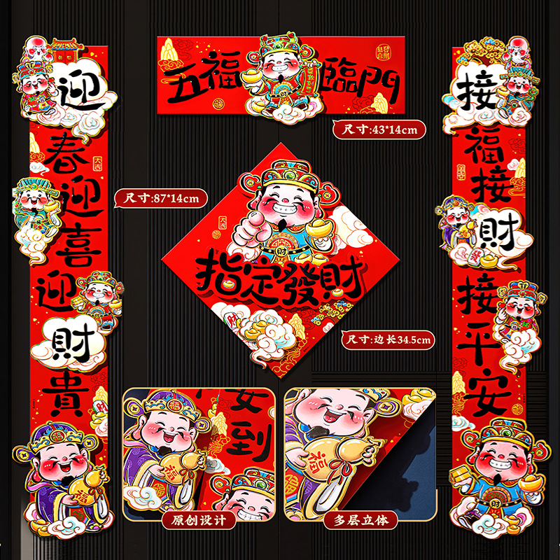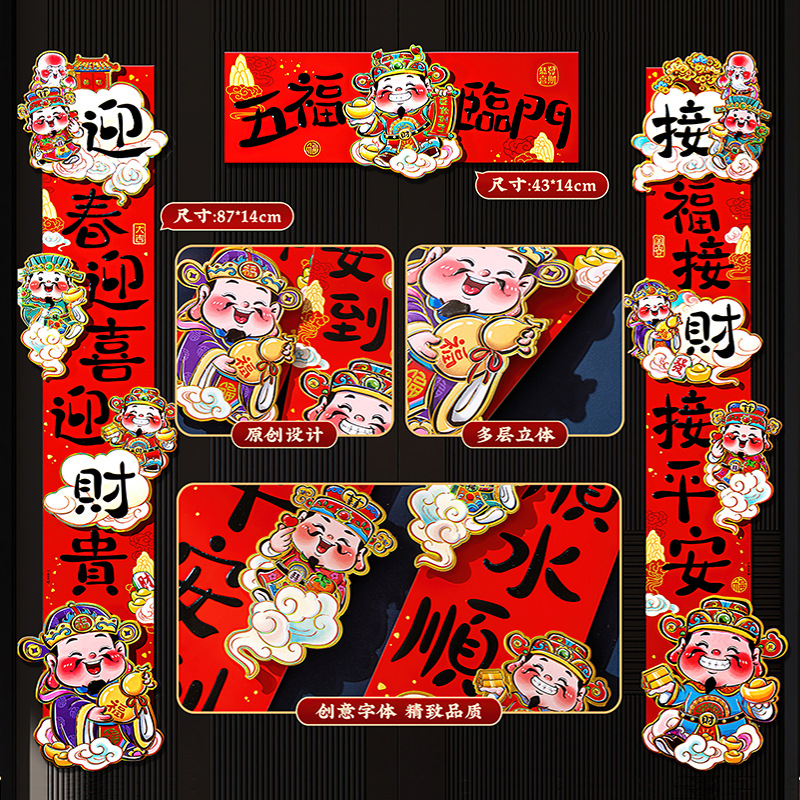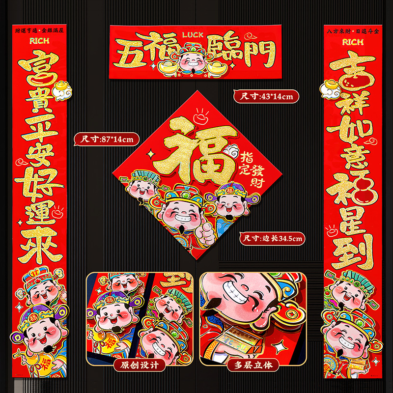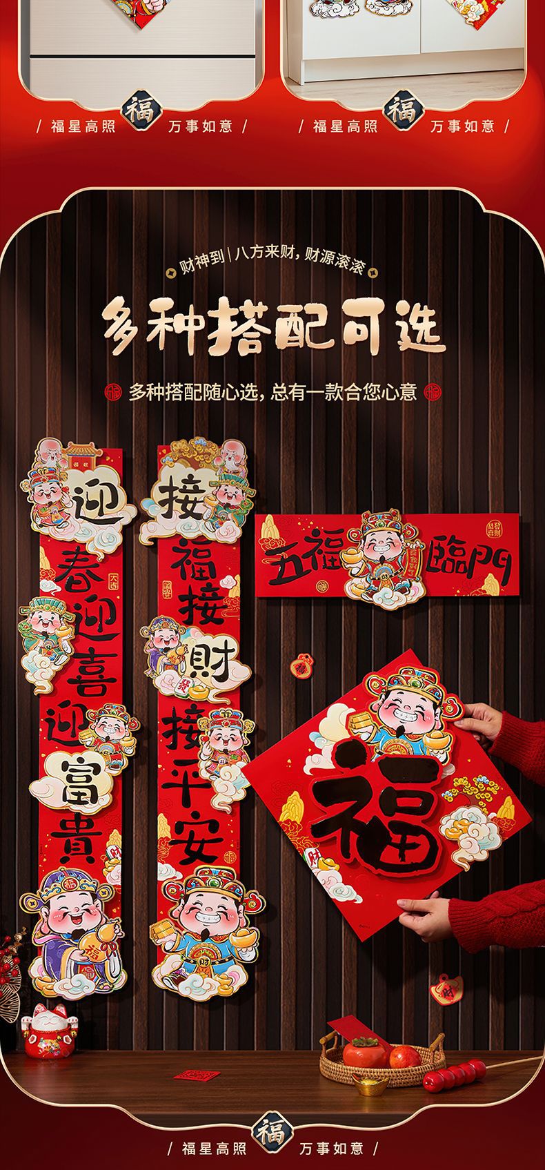 新年新春对联2026新款马年立体烫金春联国潮春节过年福字门贴装饰