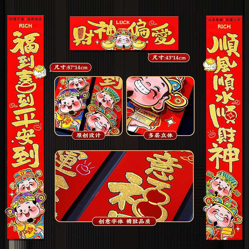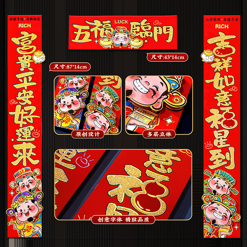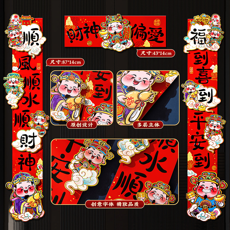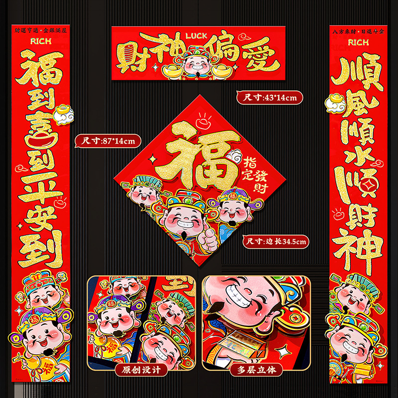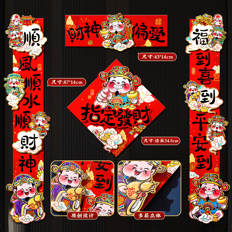 新年新春对联2026新款马年立体烫金春联国潮春节过年福字门贴装饰