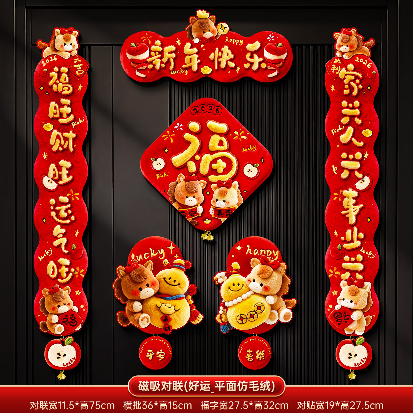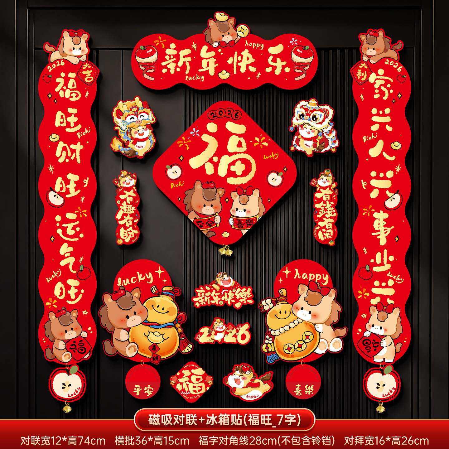2026新年磁吸对联春联批货马年创意卡通福字门贴春节过年布置装饰