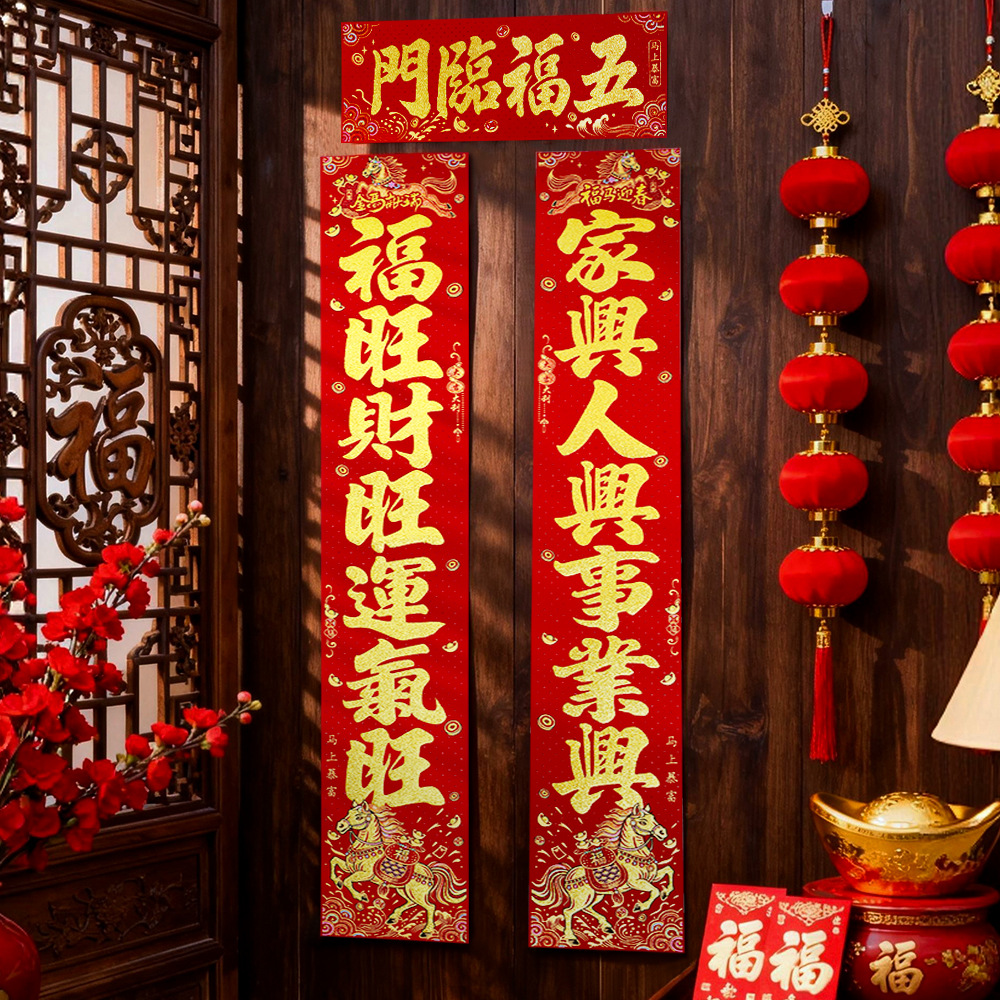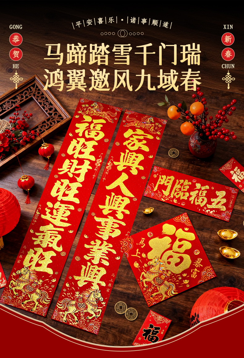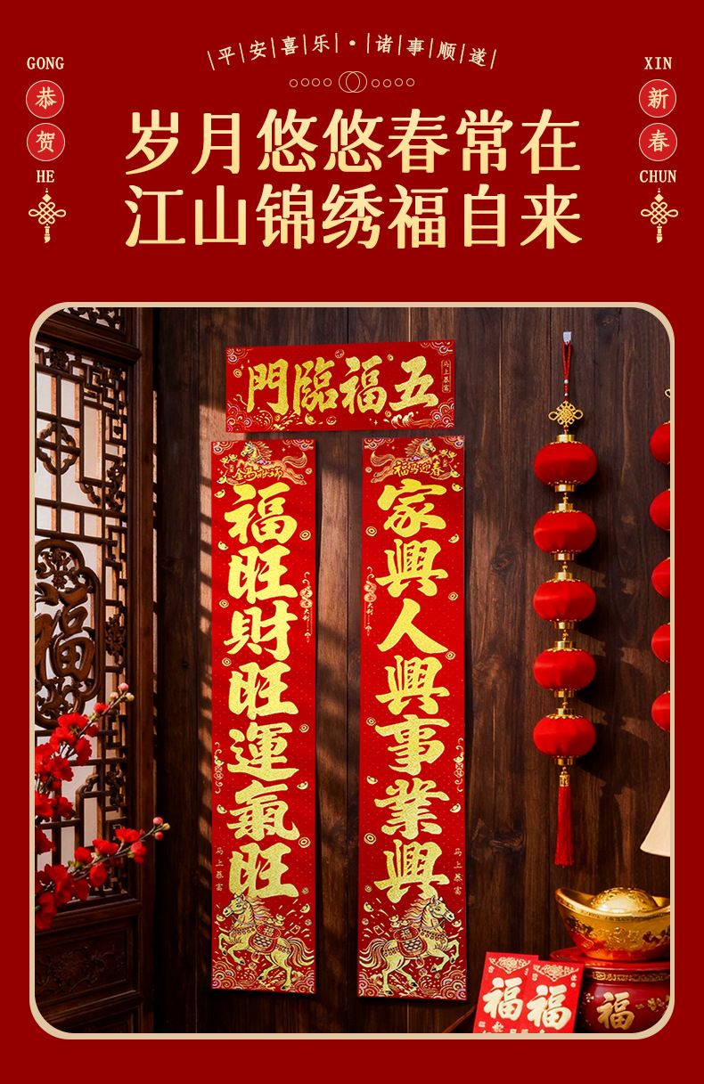 马年绒布对联2026新款植绒春联新年春节过年新春农村入户大门装饰