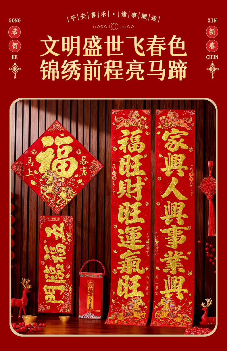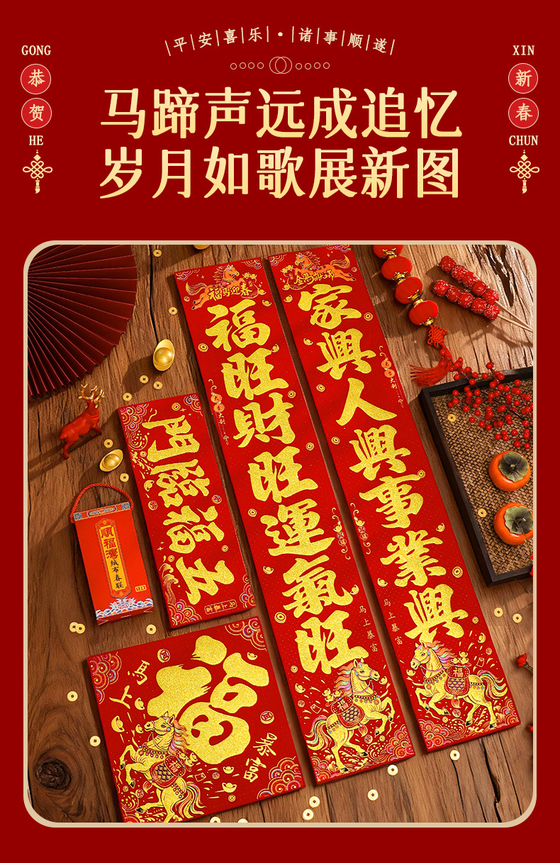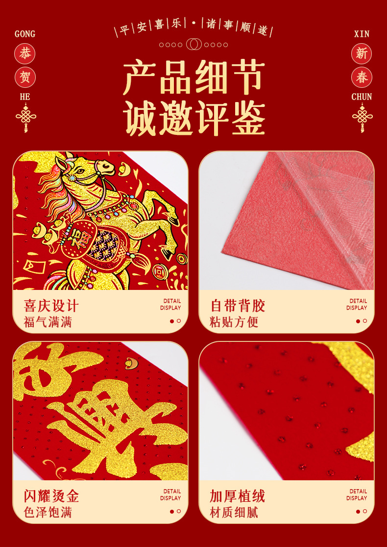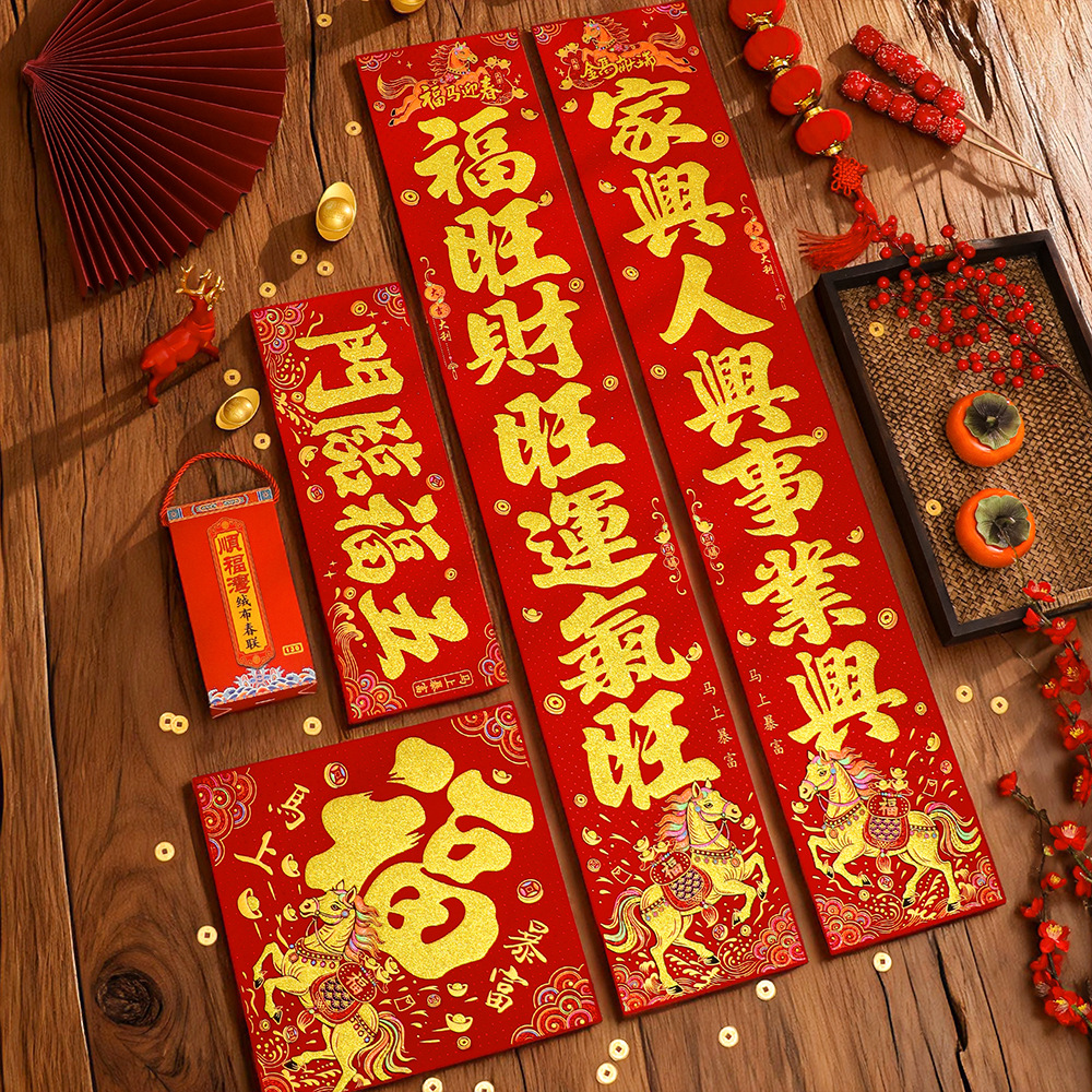 马年绒布对联2026新款植绒春联新年春节过年新春农村入户大门装饰