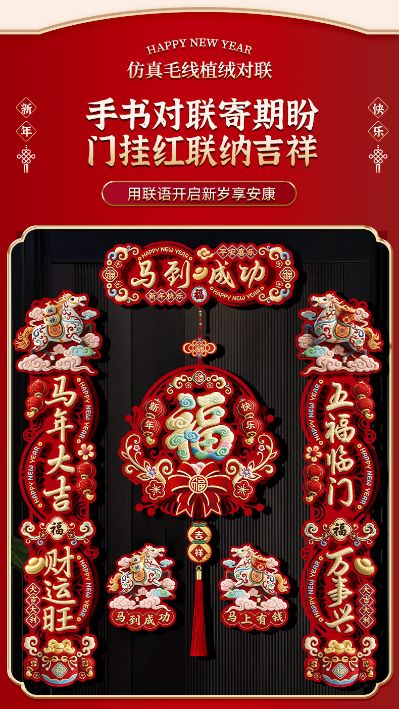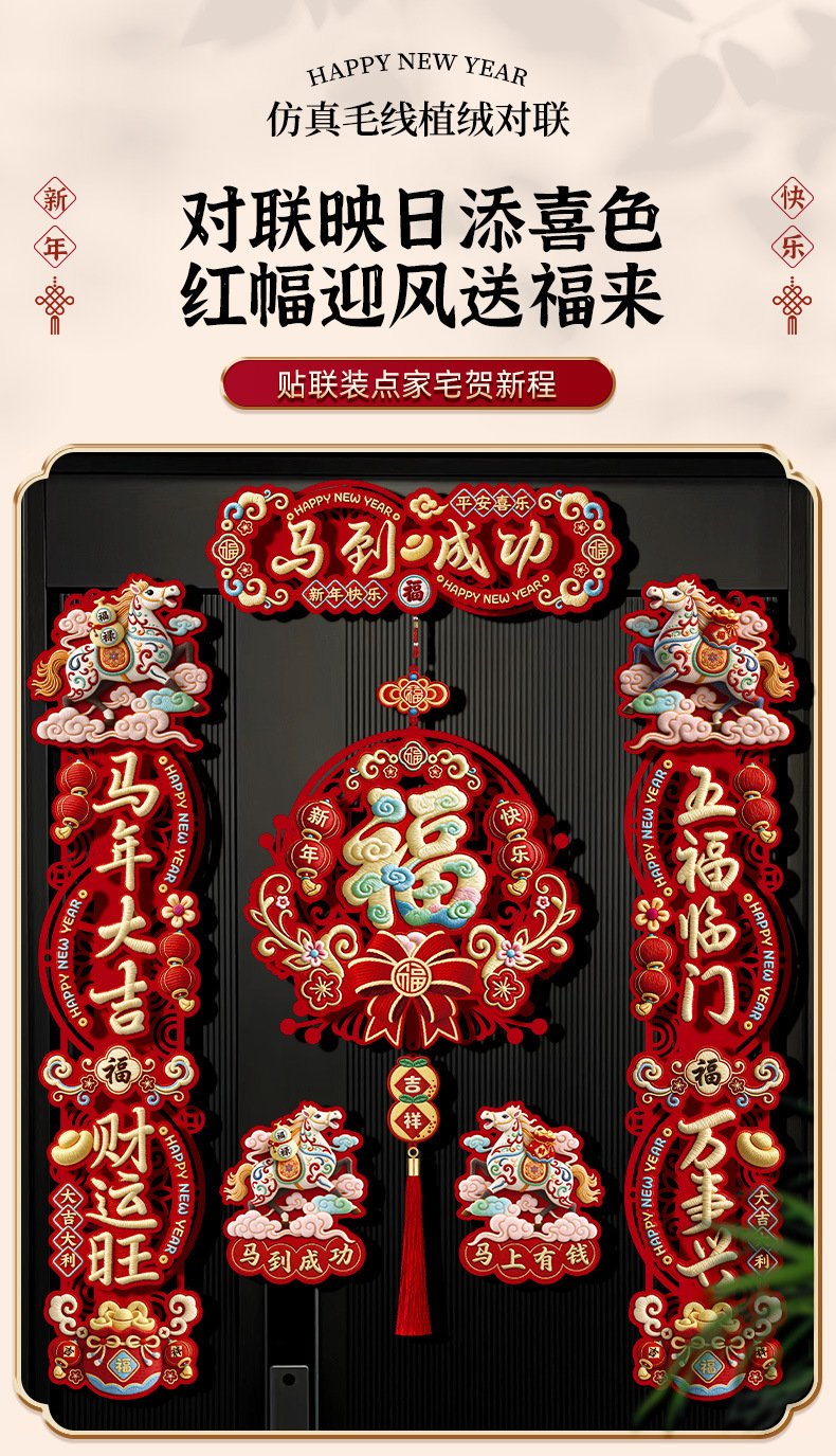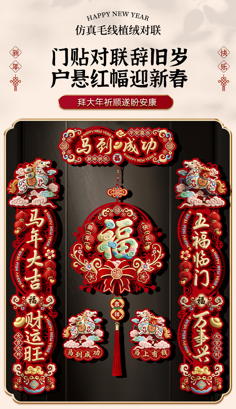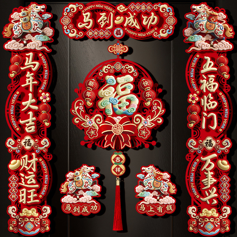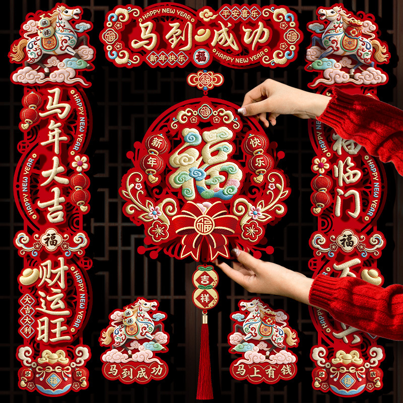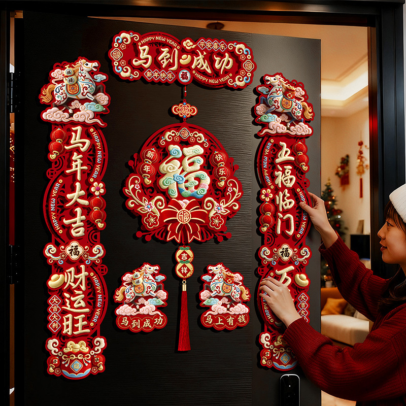 2026马年创意立体对联新年新款福字入户门贴过年春节大门磁吸春联
