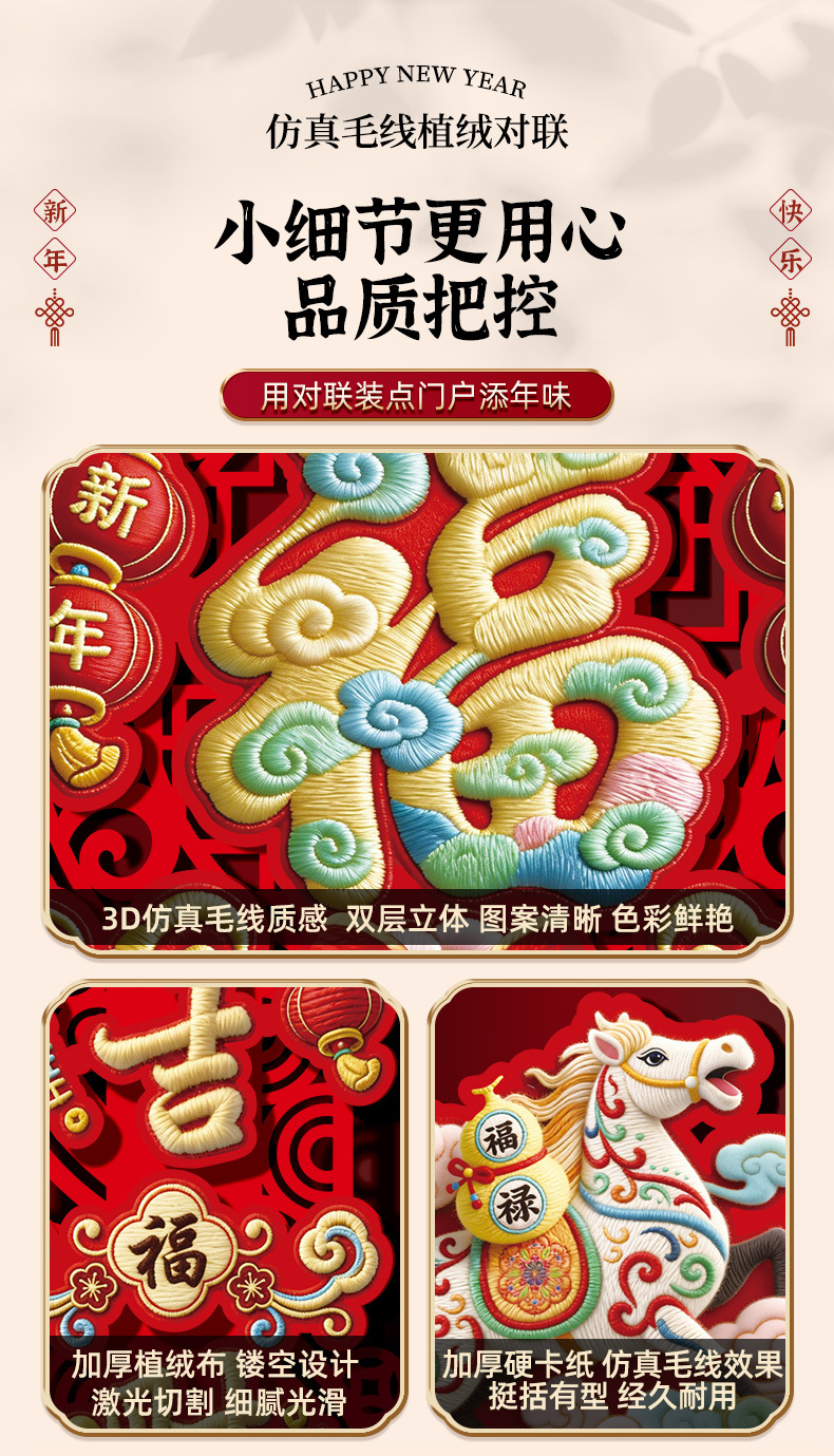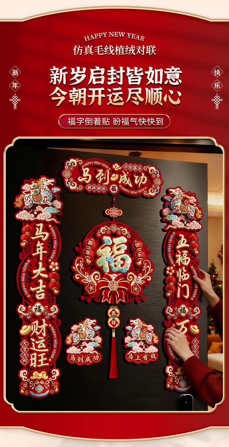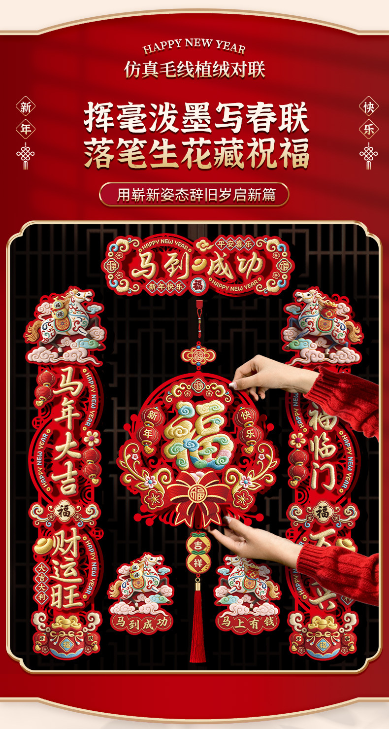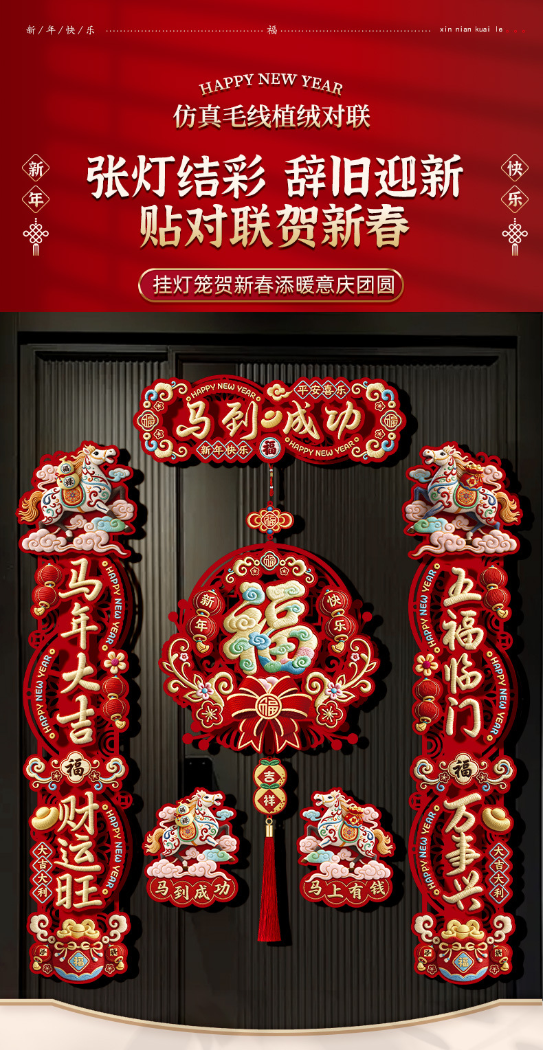 2026马年创意立体对联新年新款福字入户门贴过年春节大门磁吸春联