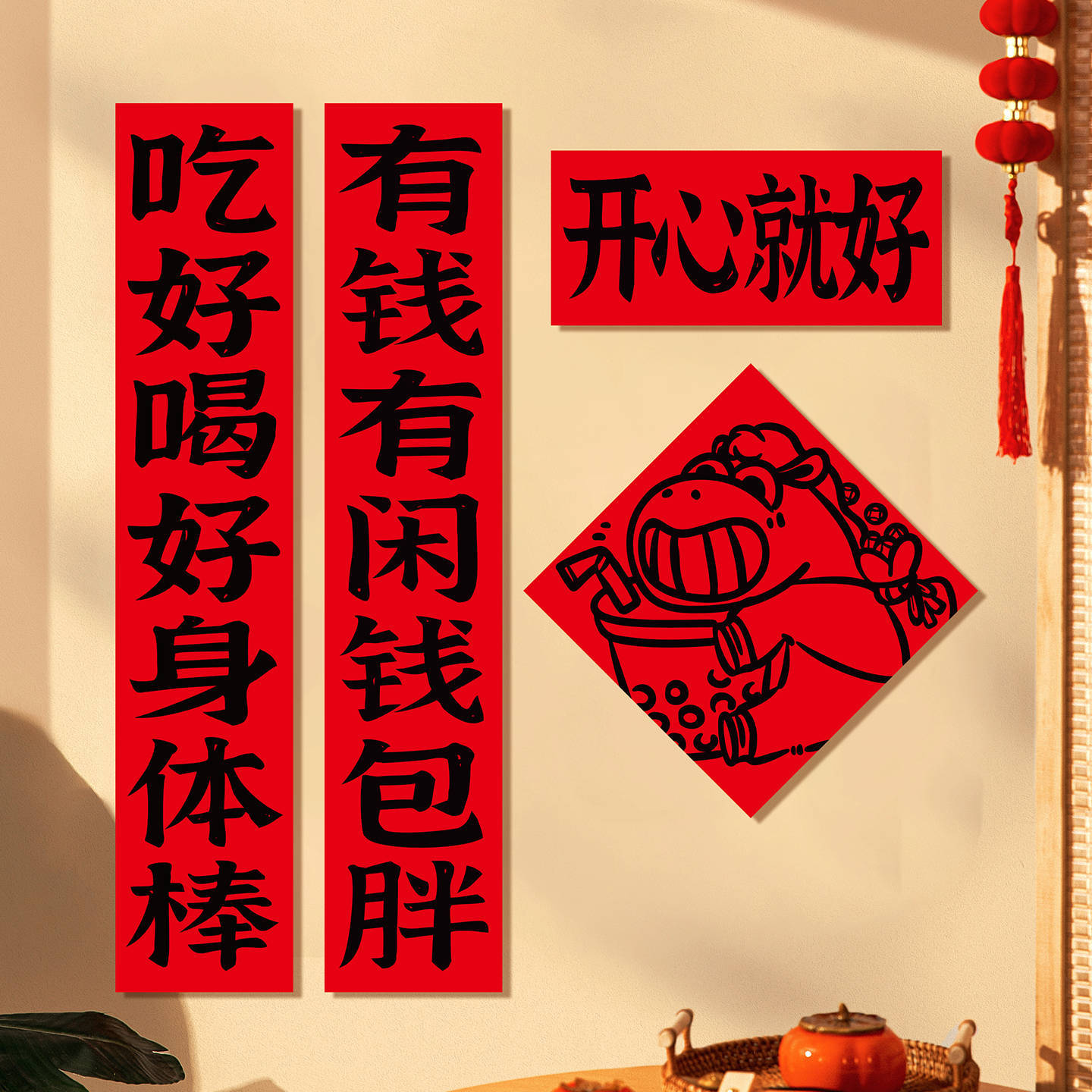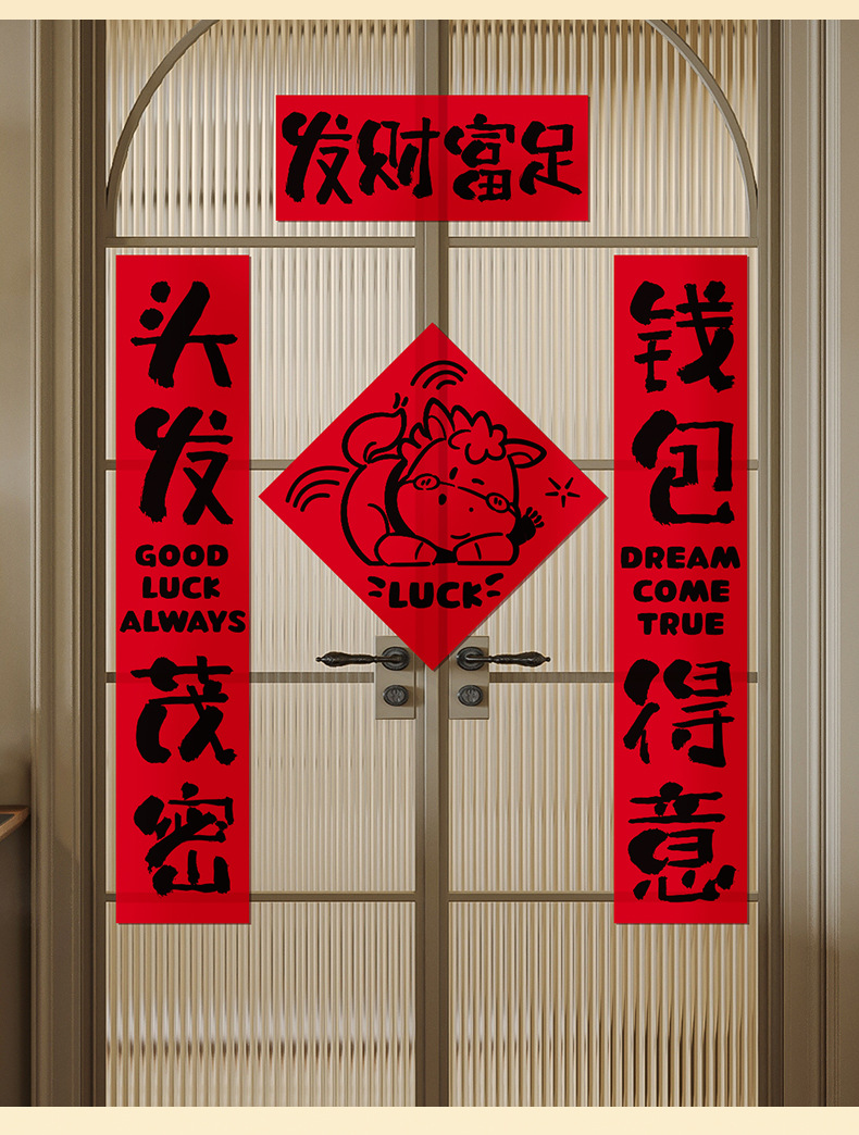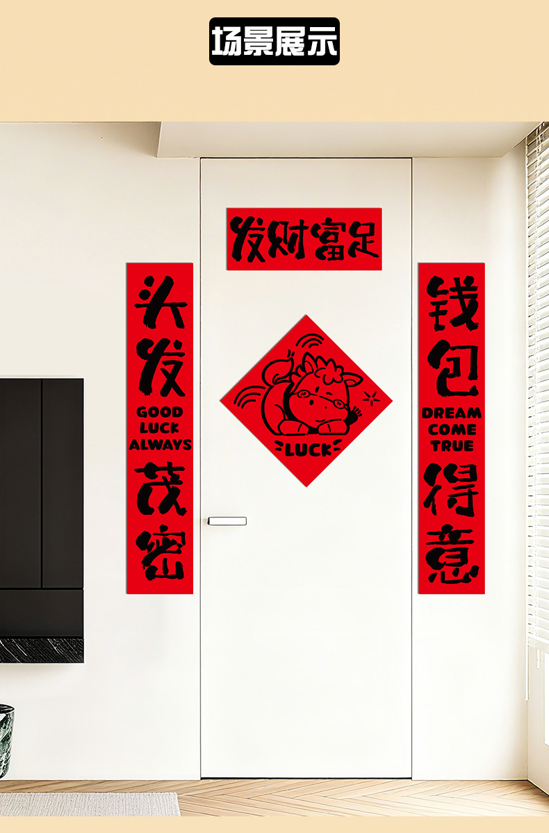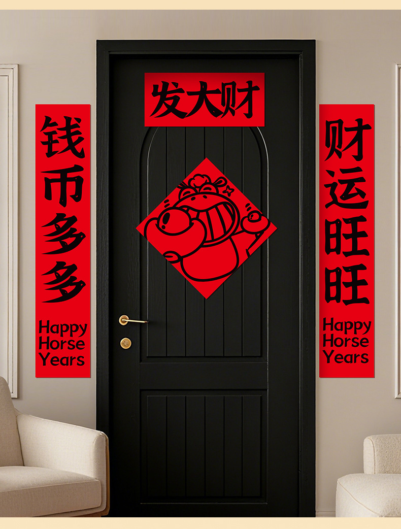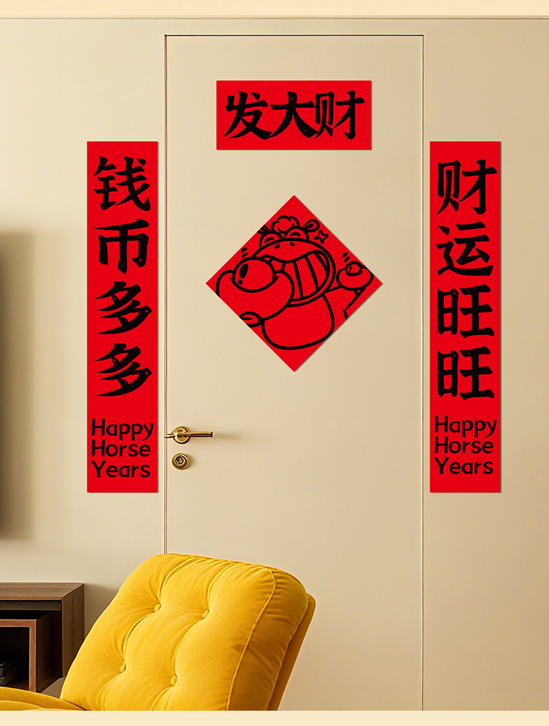 2026新款过新年春节对联家用室内纸平面趣味门联门贴场景氛围布置