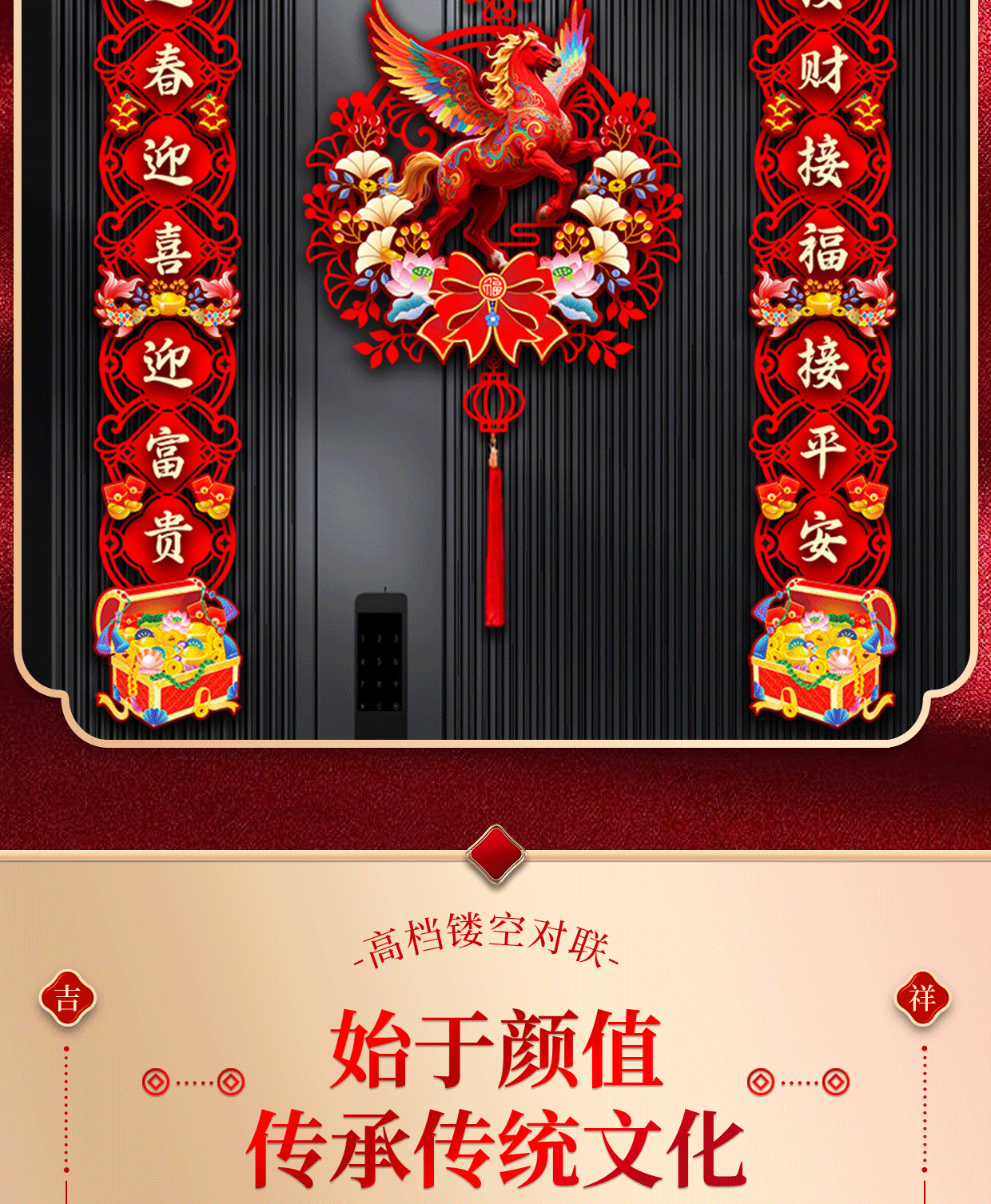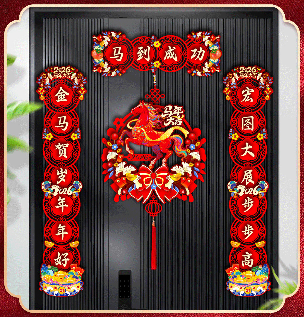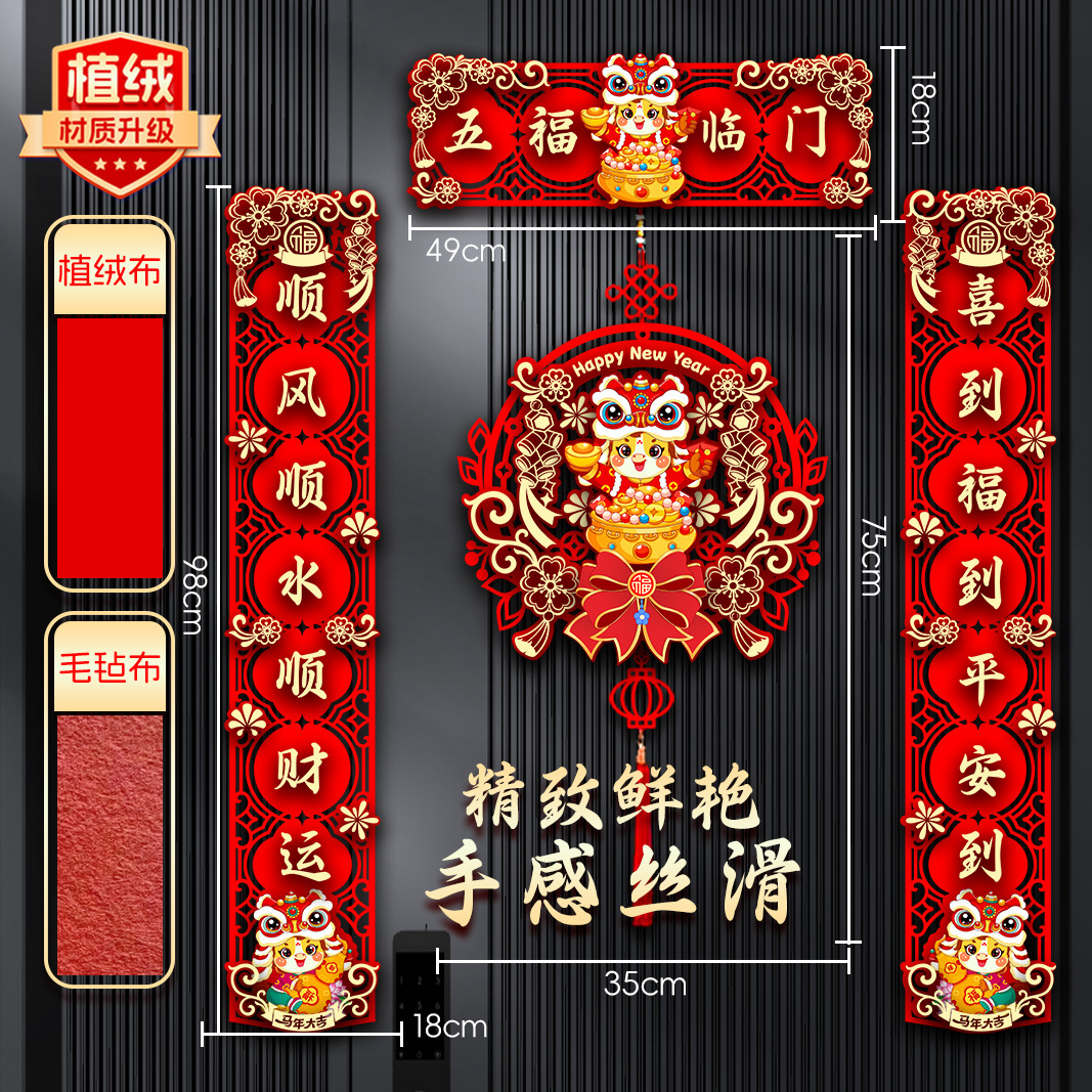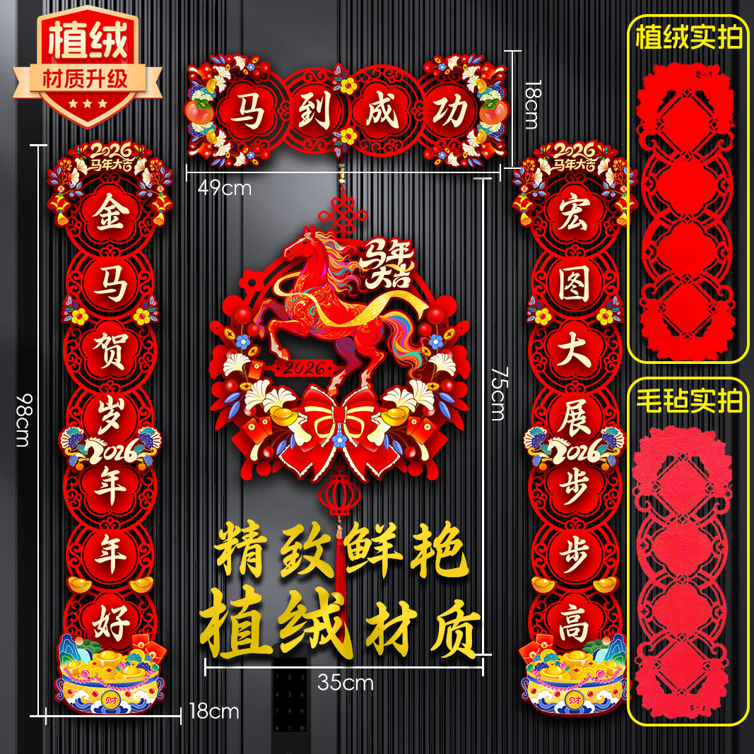植绒对联2026马年新款春节家用过年大门布置新年门贴装饰磁吸对联