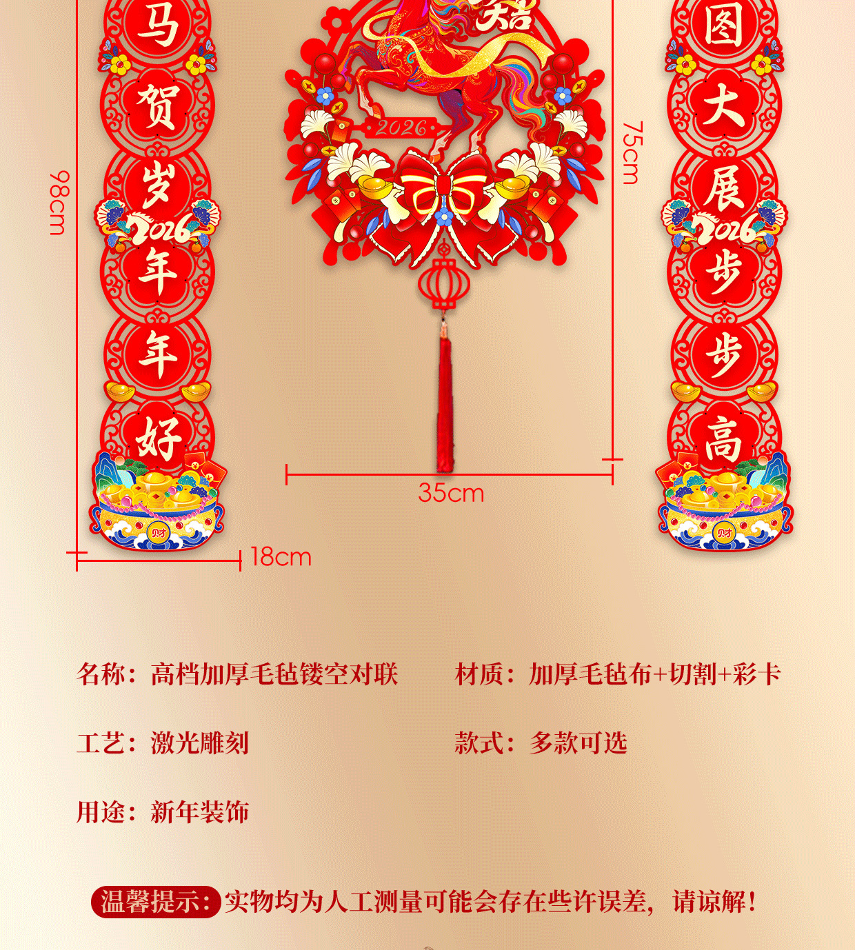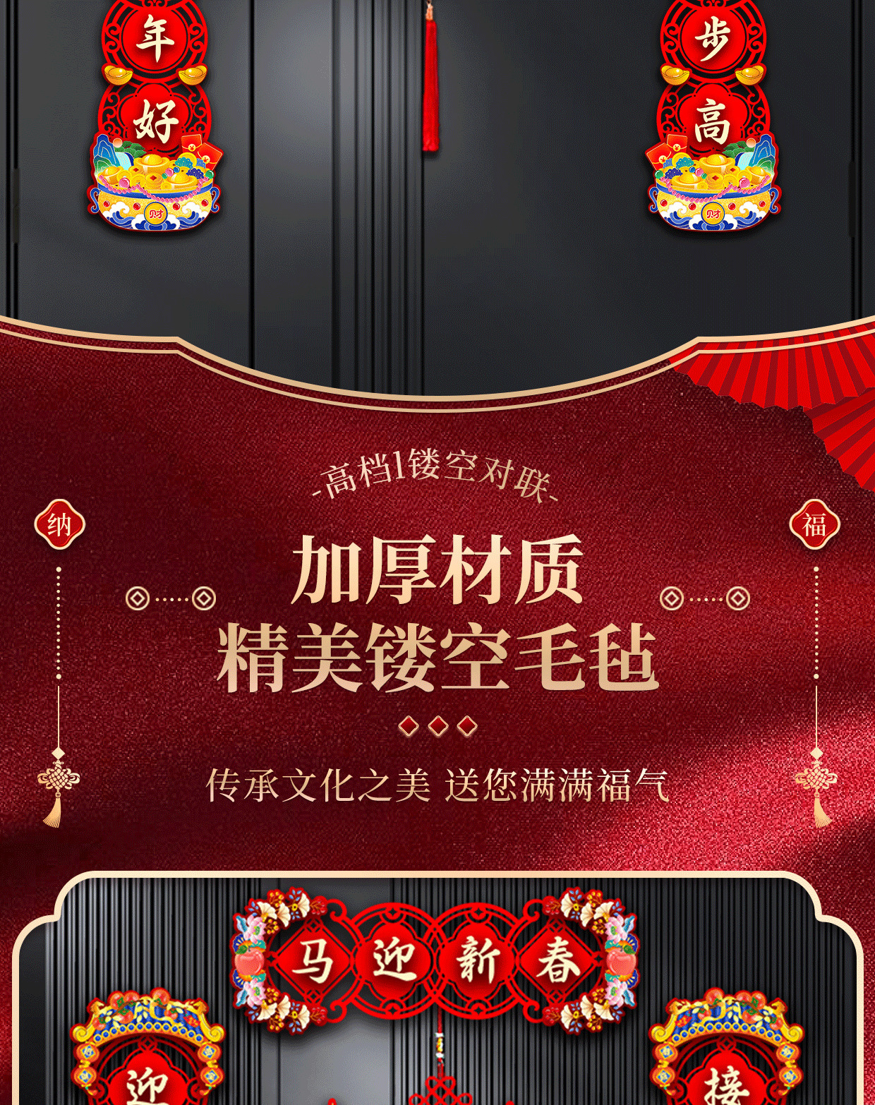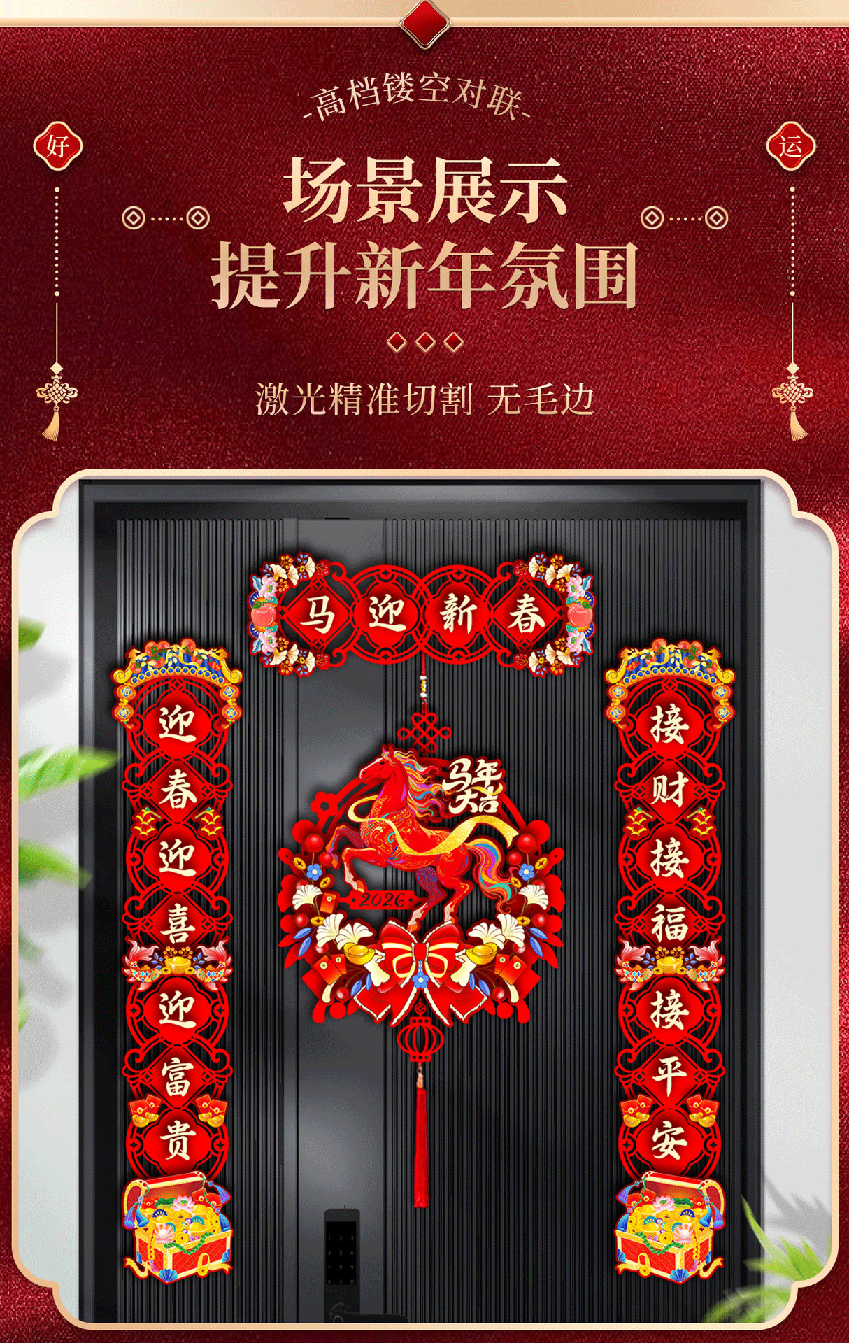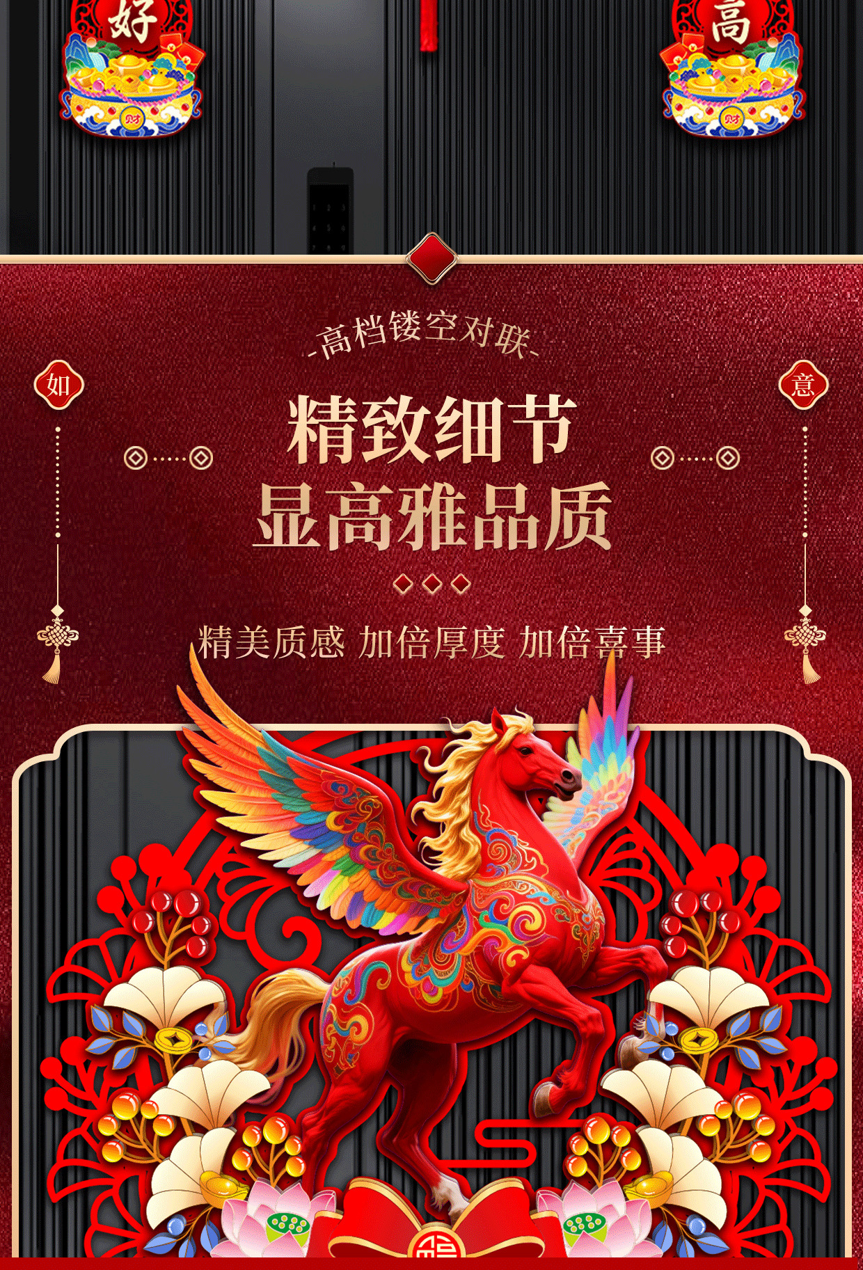 植绒对联2026马年新款春节家用过年大门布置新年门贴装饰磁吸对联