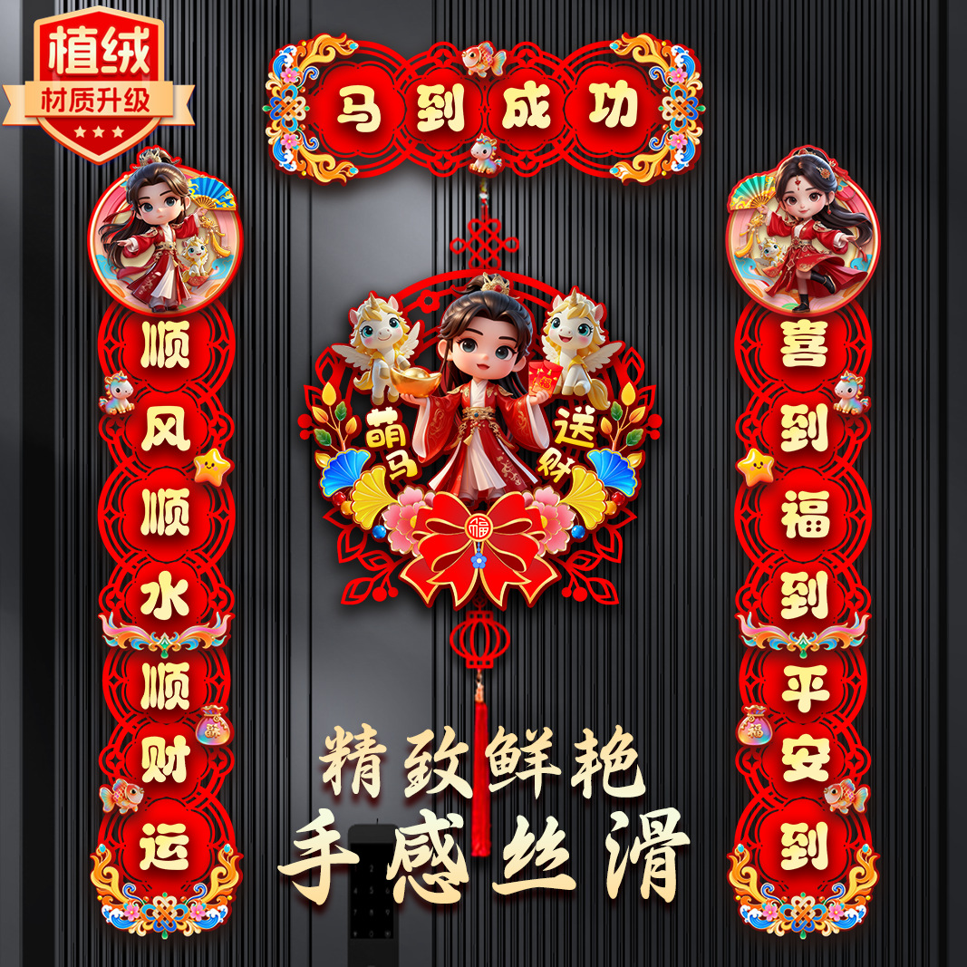 磁吸对联2026马年新款春节家用过年春联对联批货门贴植绒对联厂家