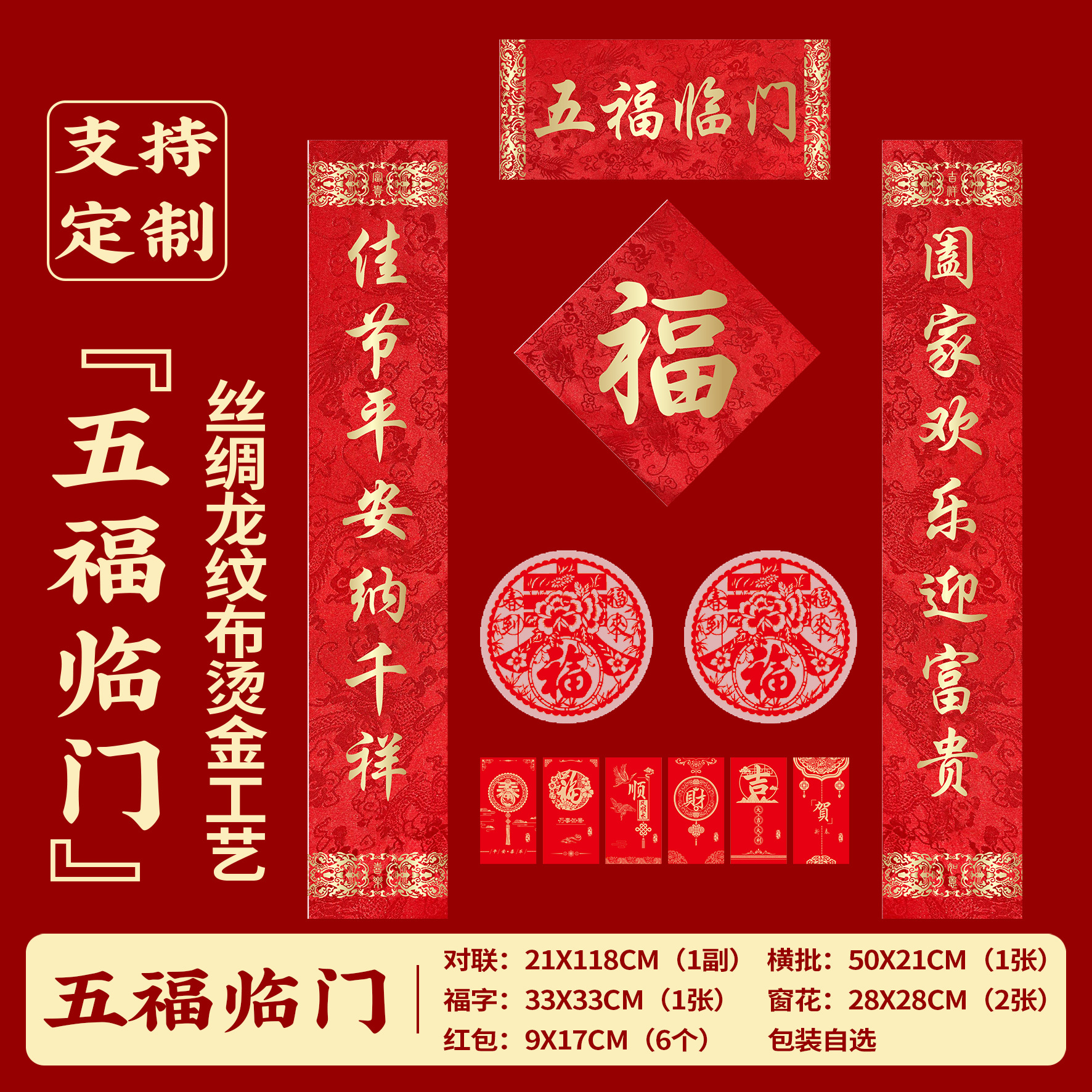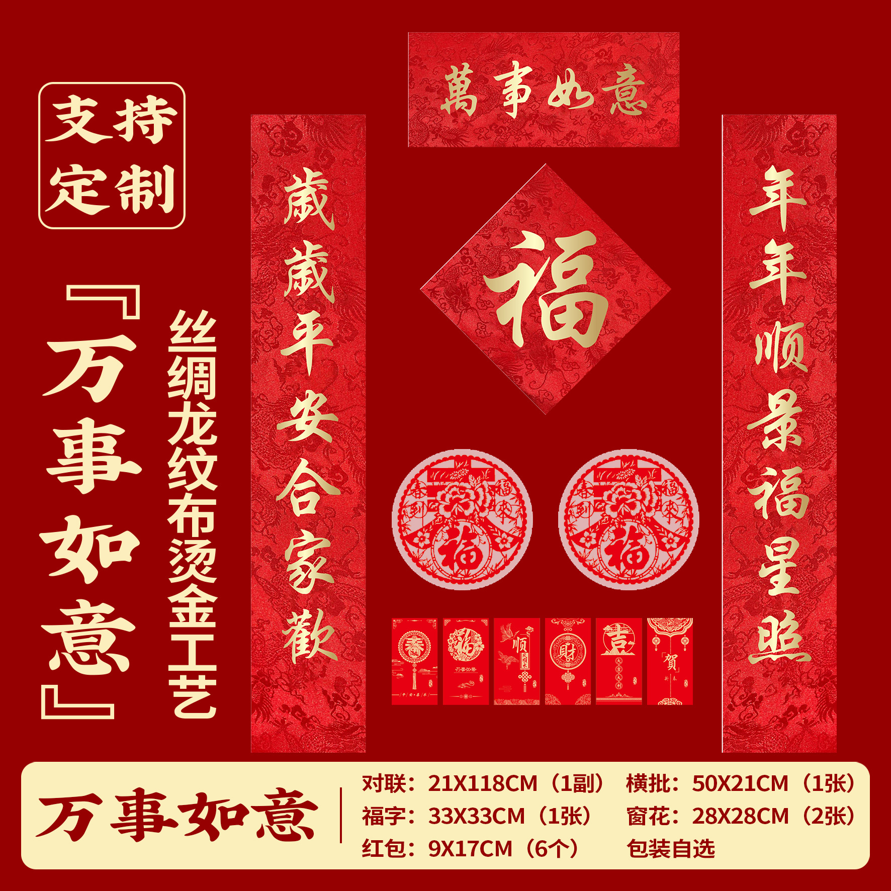 2026广告对联定制马年丝绸植绒烫金高档春联触感纸定做大礼包logo
