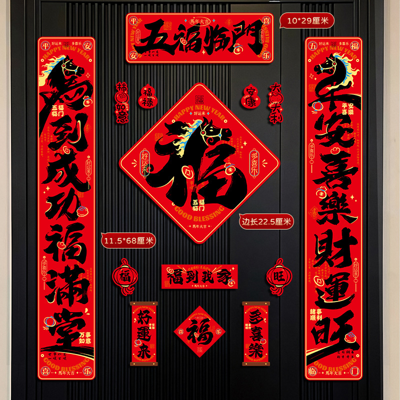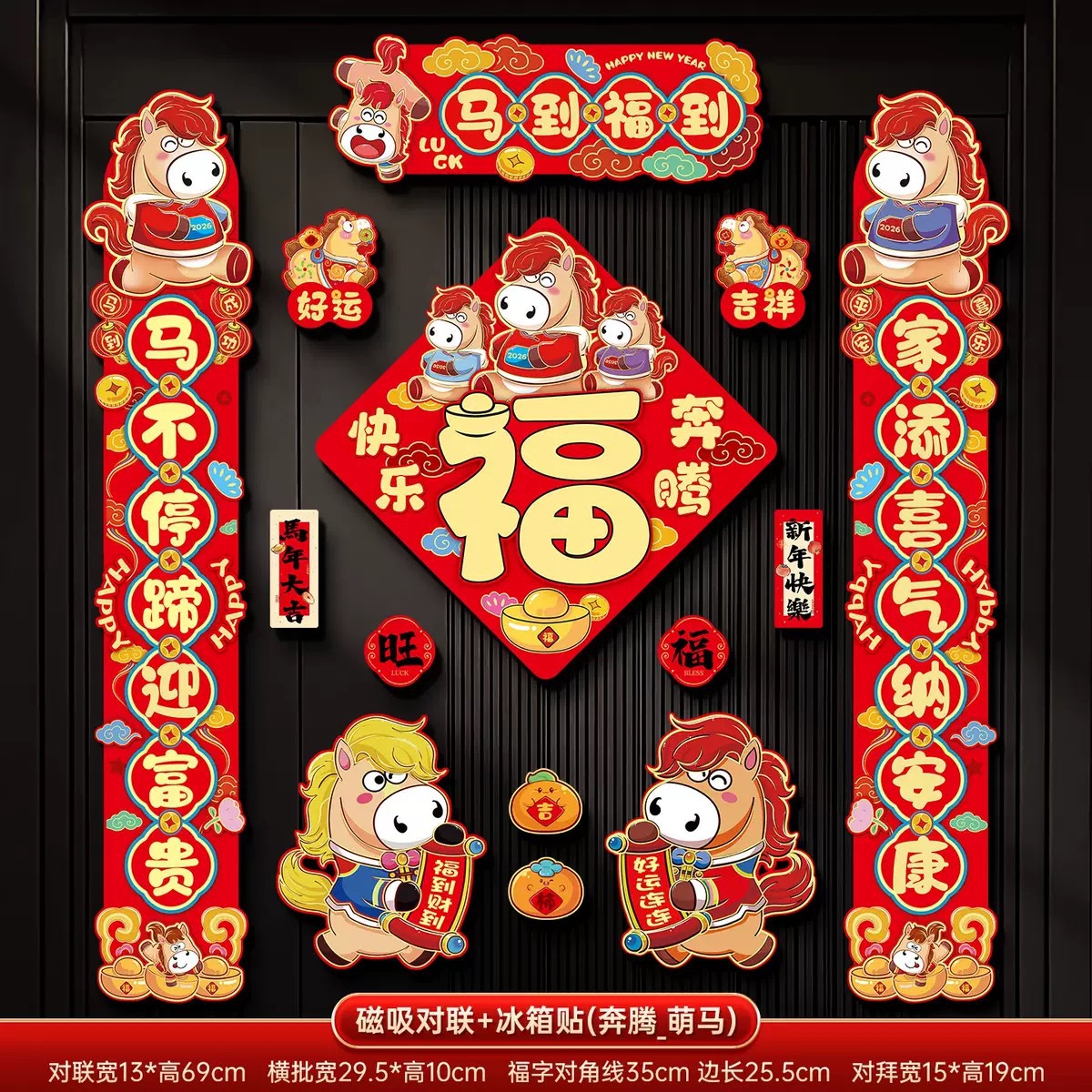 2026马年生肖磁吸对联新年春节入户家用福字门贴装饰布置春联批发