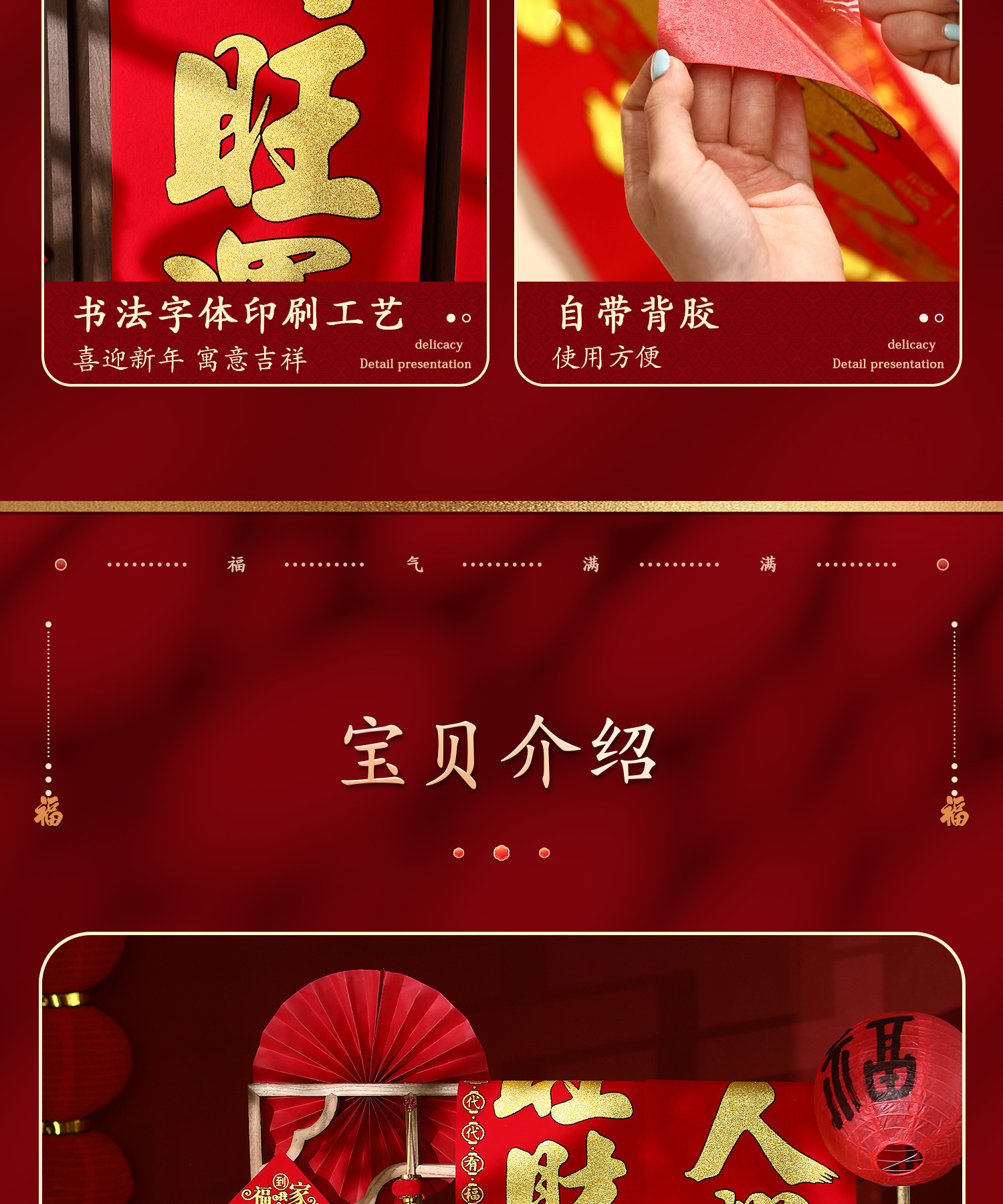 | lucky word door sticker included-[velvet couplet + self-adhesive backing](含福字门贴-【绒布对联+自带背胶】) | USD $5.25 | 38810 pair available |