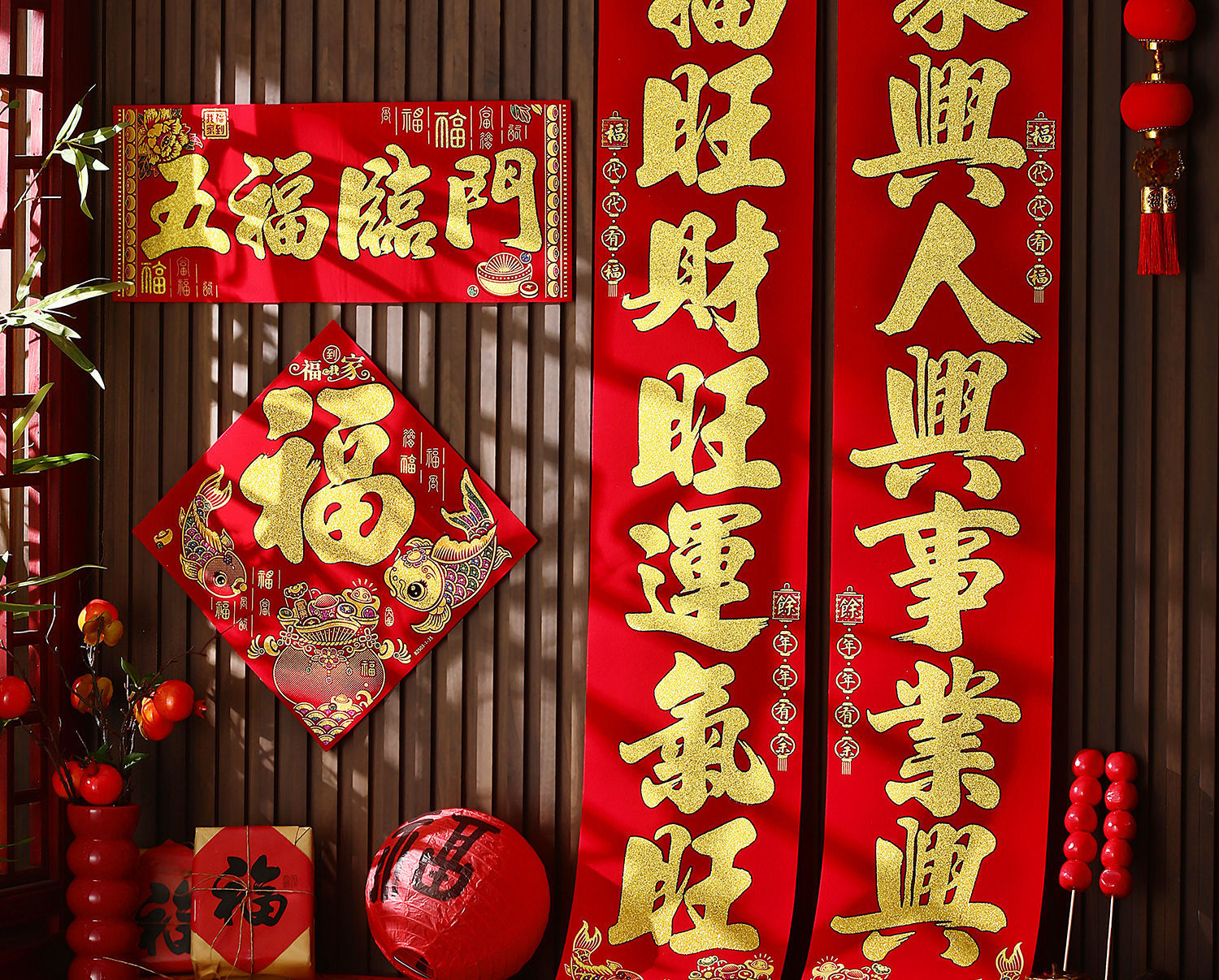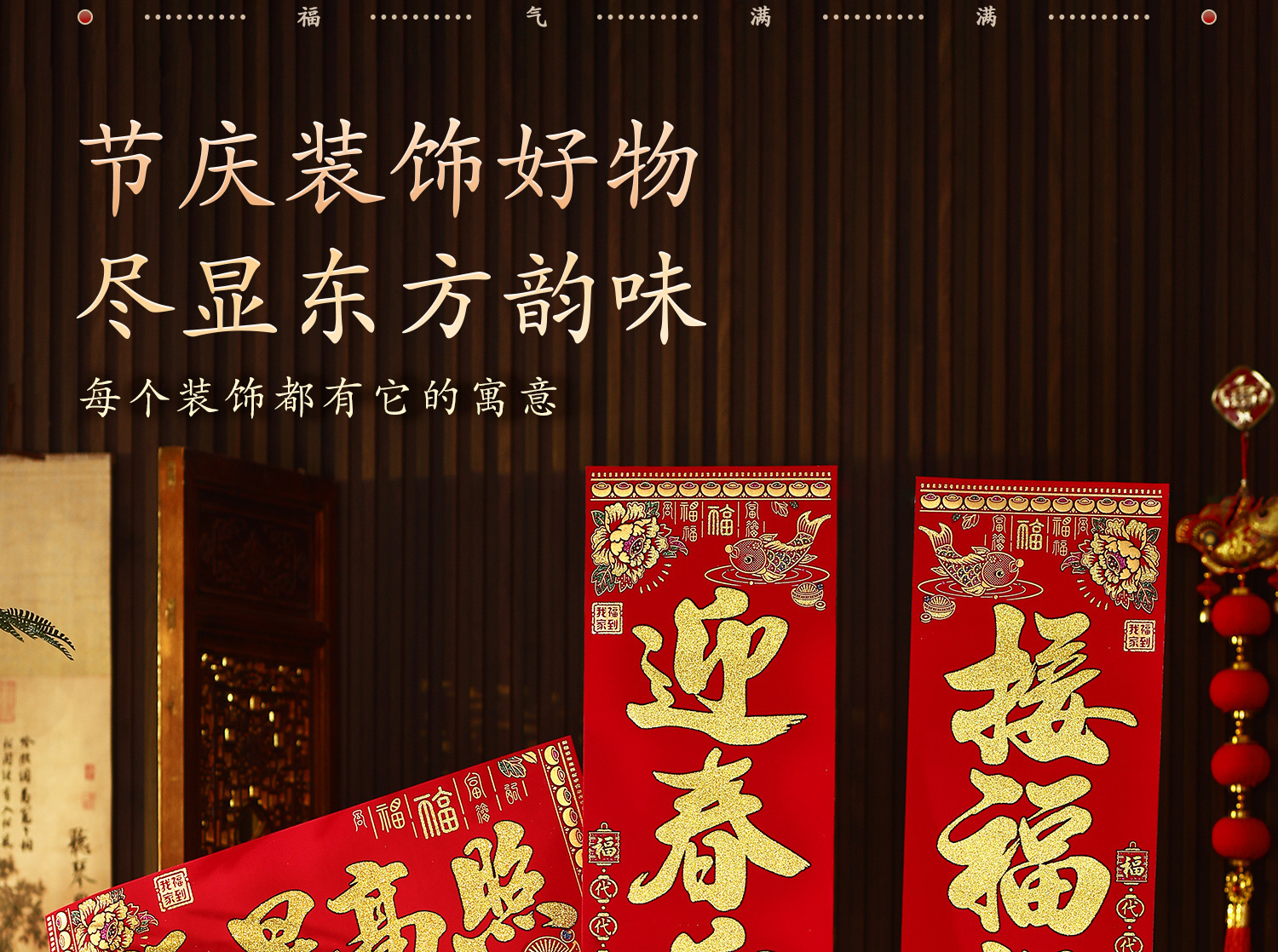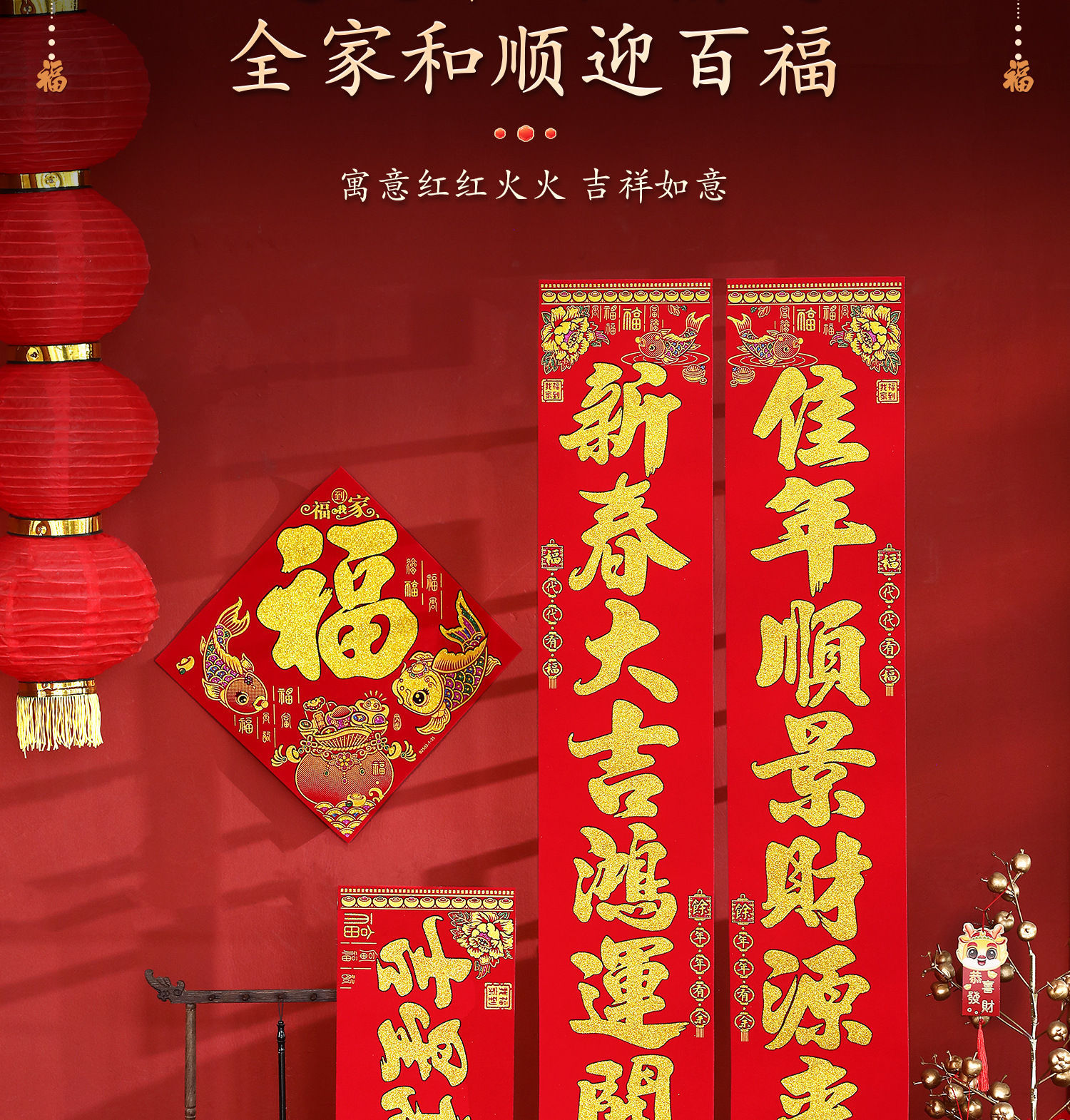| lucky word door sticker included-[velvet couplet + self-adhesive backing](含福字门贴-【绒布对联+自带背胶】) | USD $2.56 | 38424 pair available |