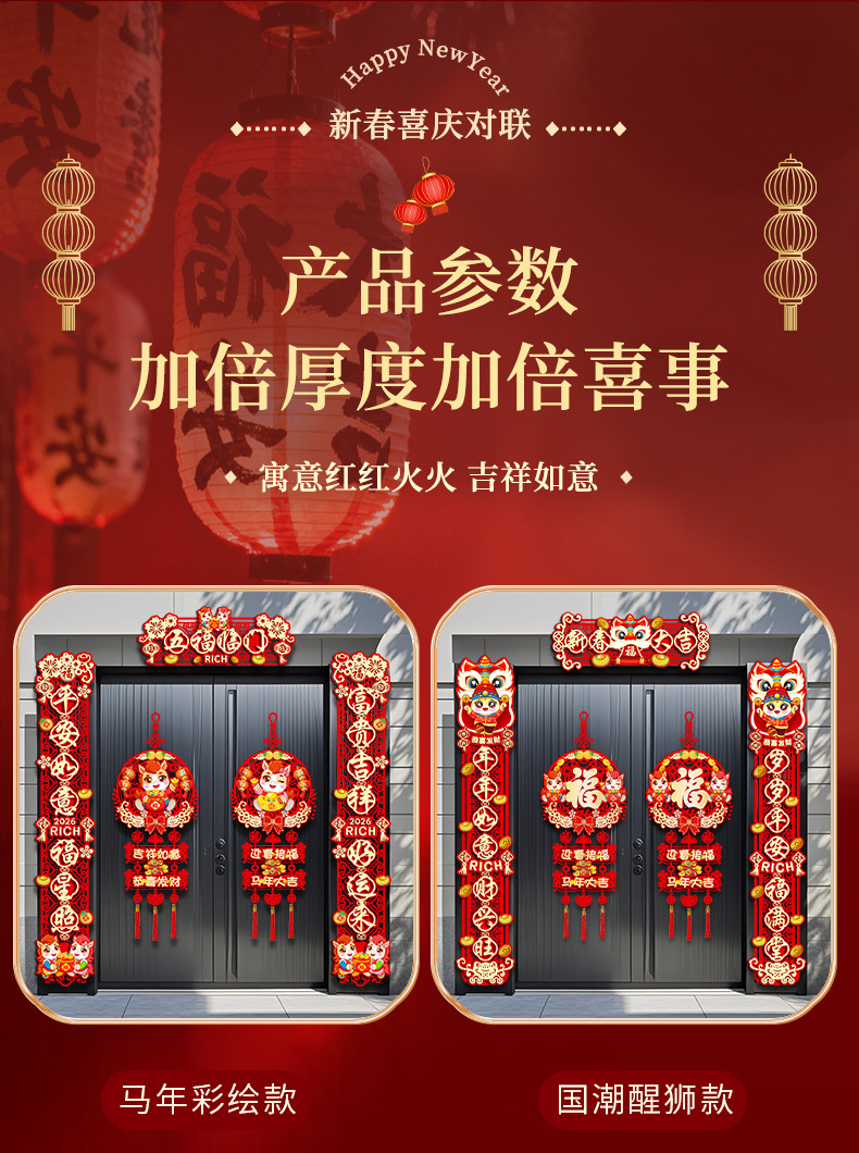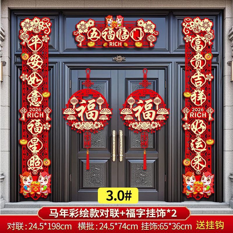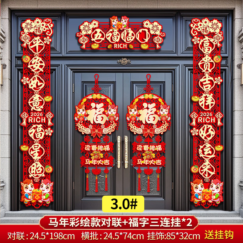 马年对联2026新款年春节农村大门春联过年入户门贴福字防盗门春联
