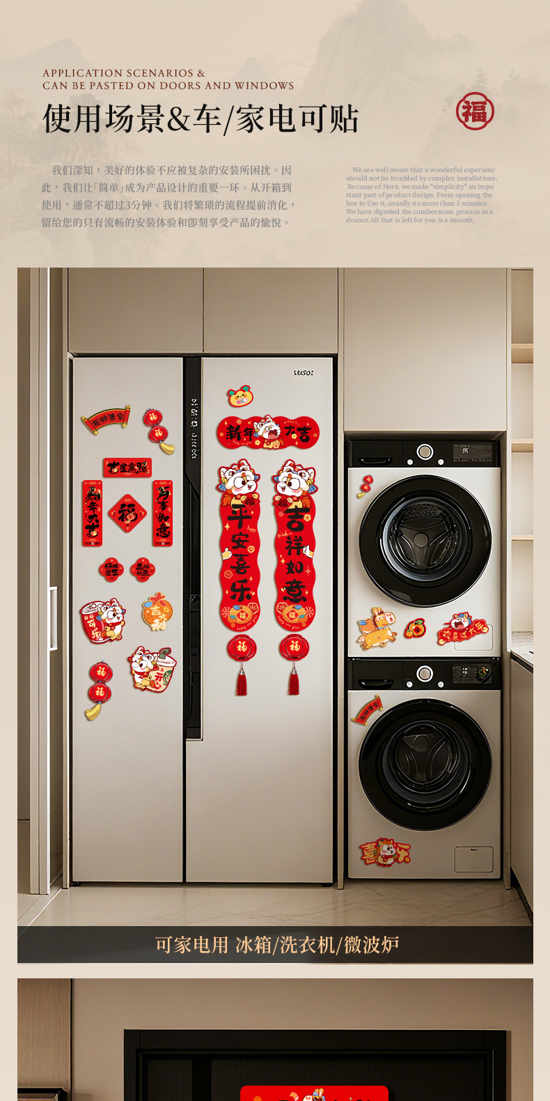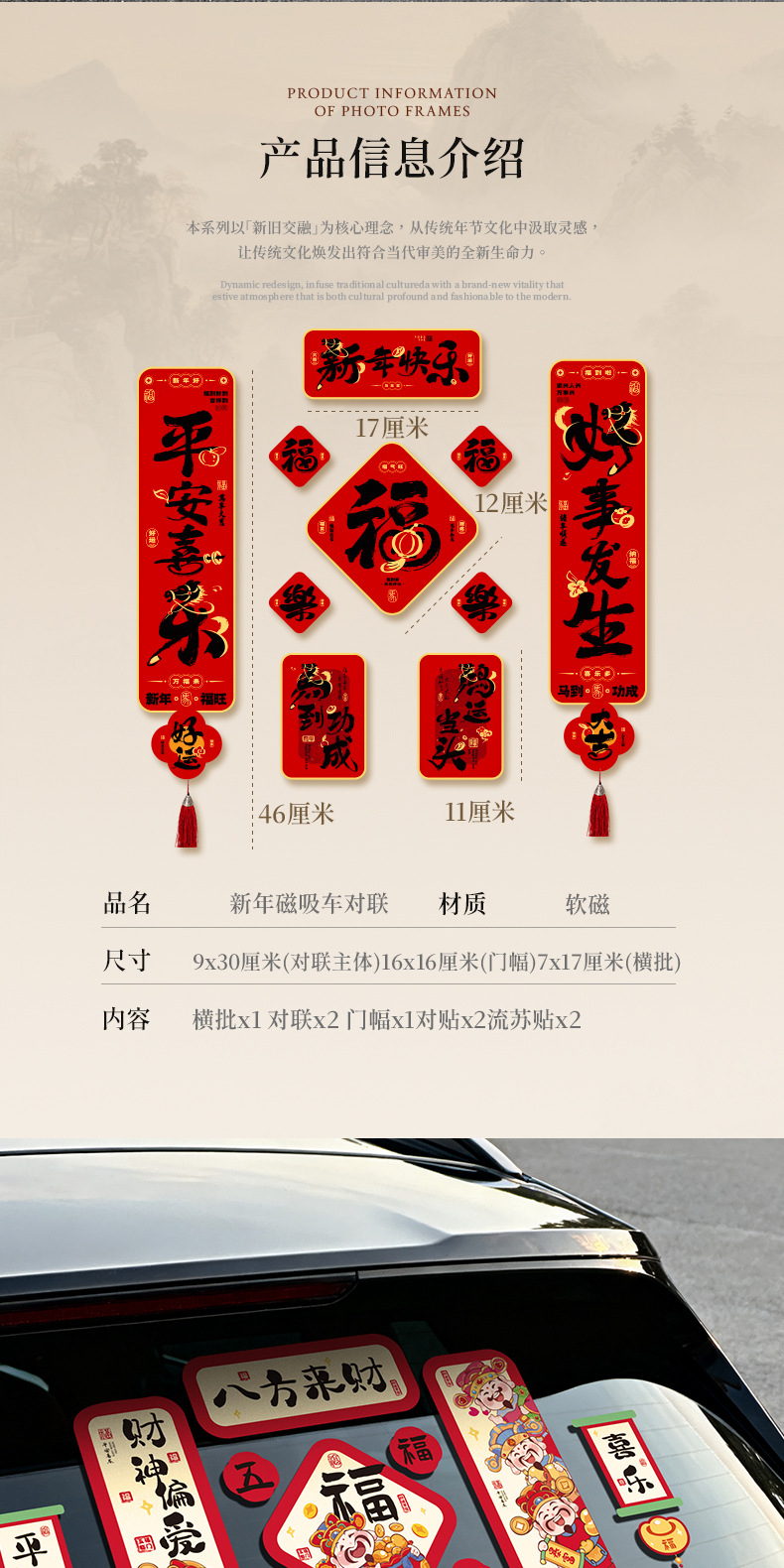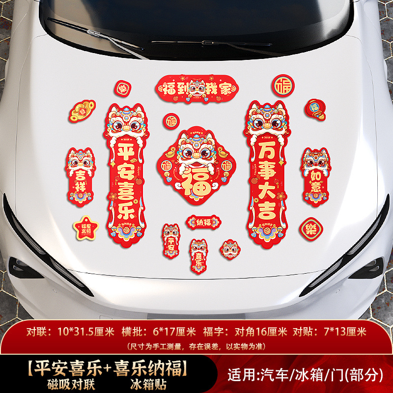 磁吸车对联2026新款春联马年春节新年家用迷你汽车贴磁贴过年装饰