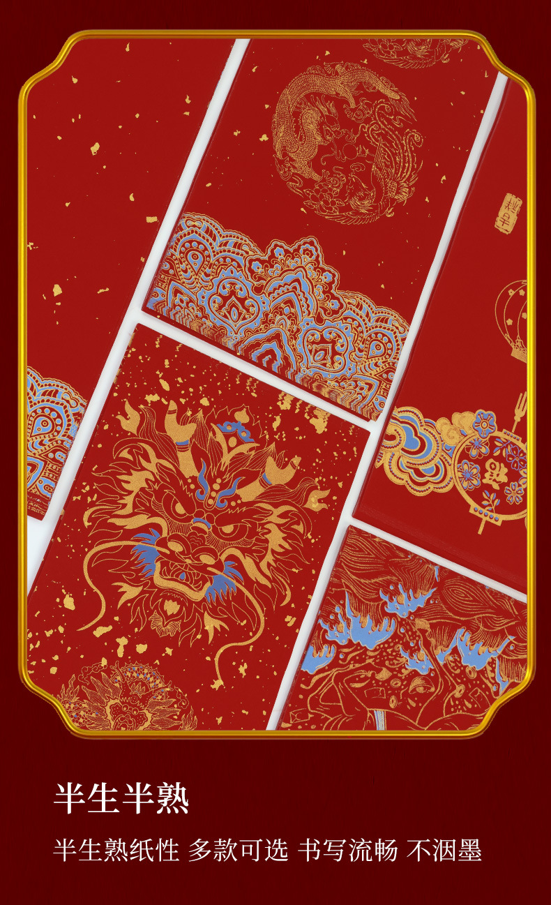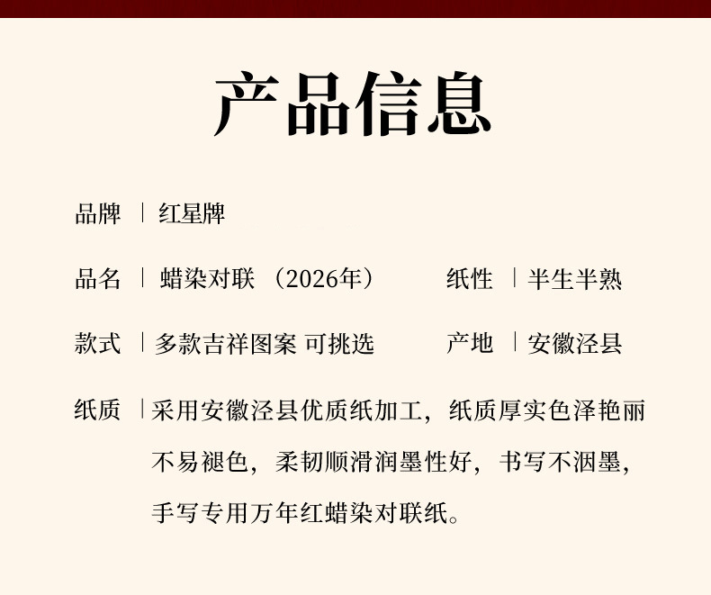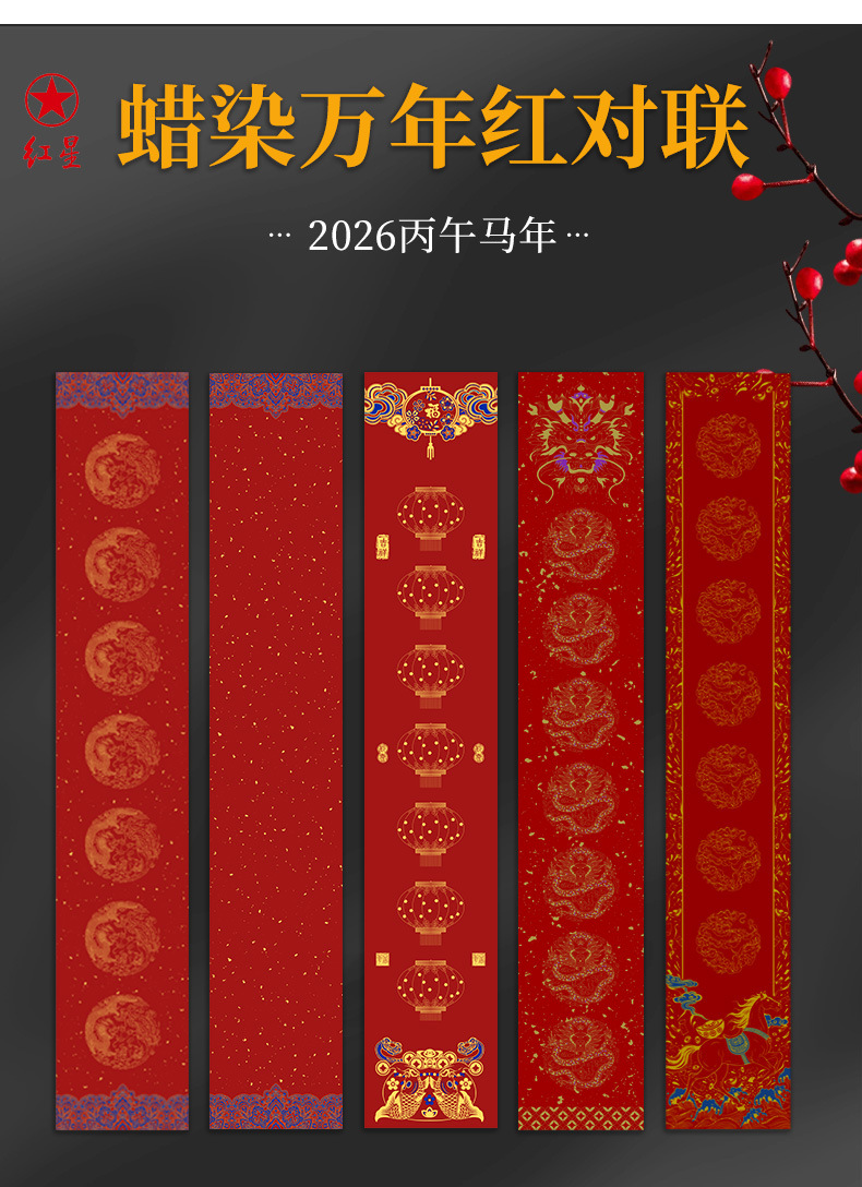 红星2026年马年空白蜡染对联手写加厚万年红门联纸洒金七言门对子