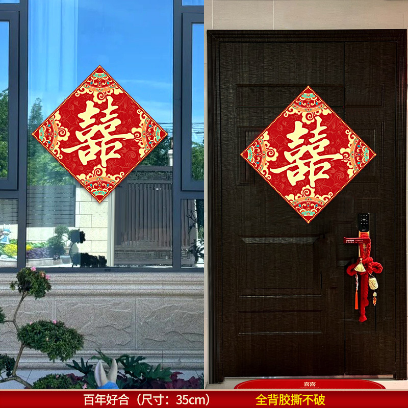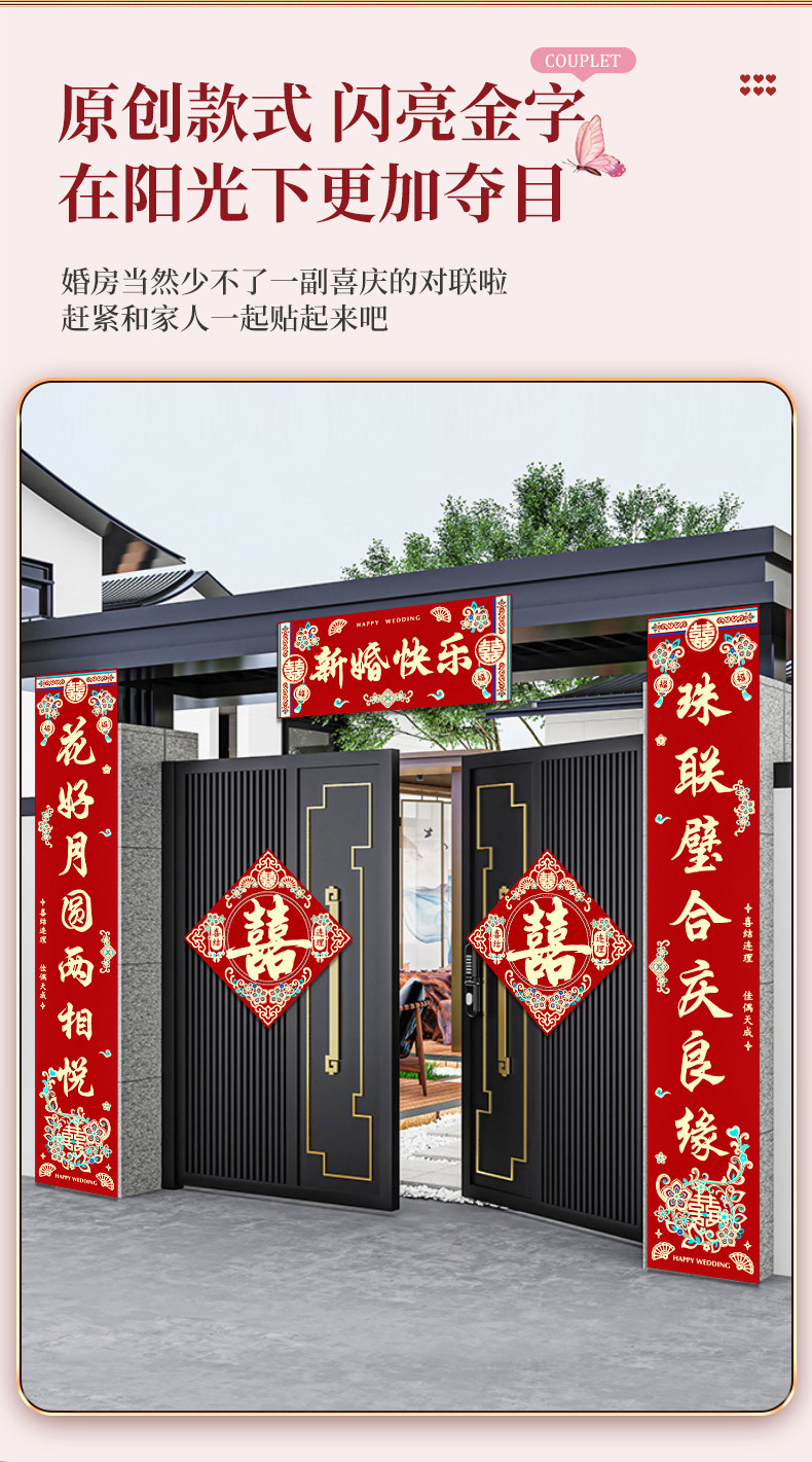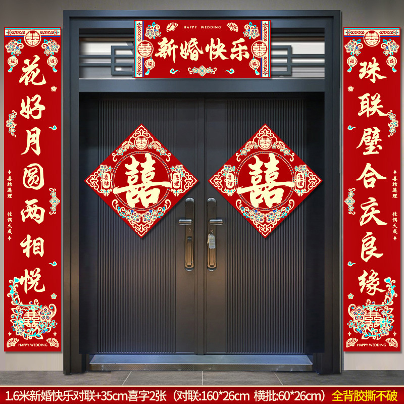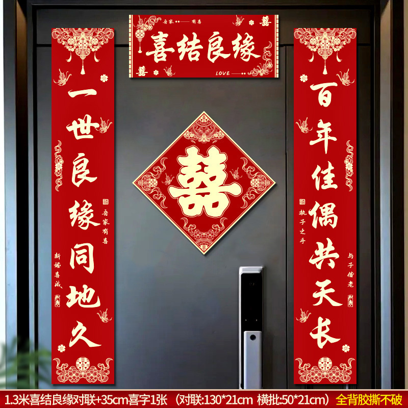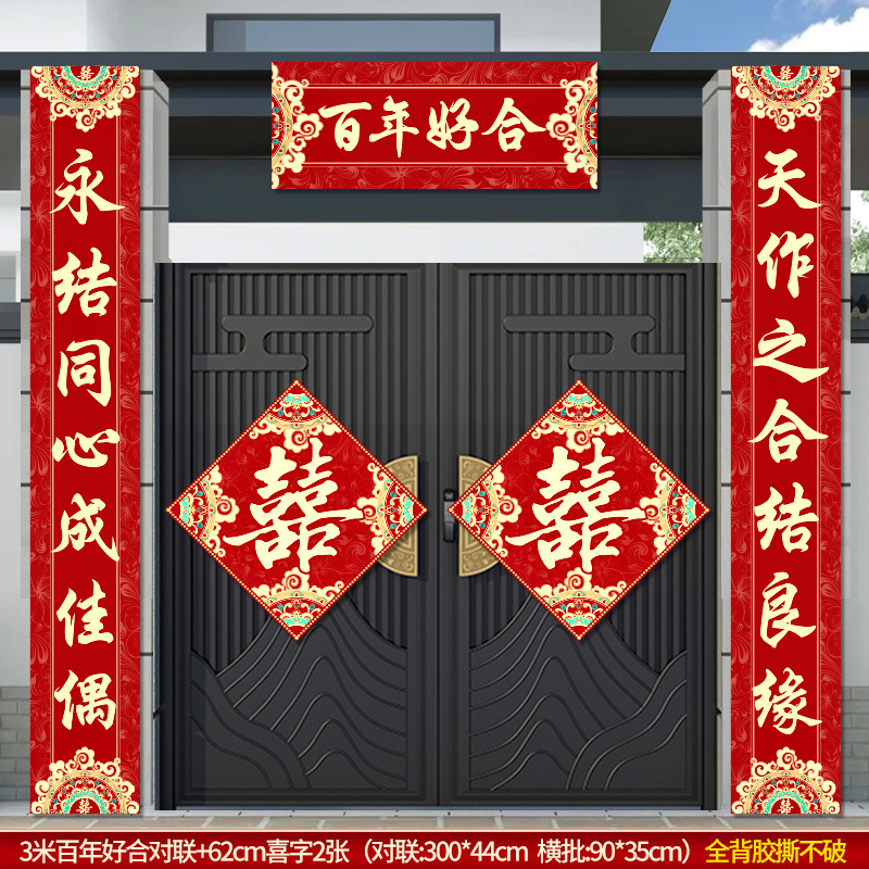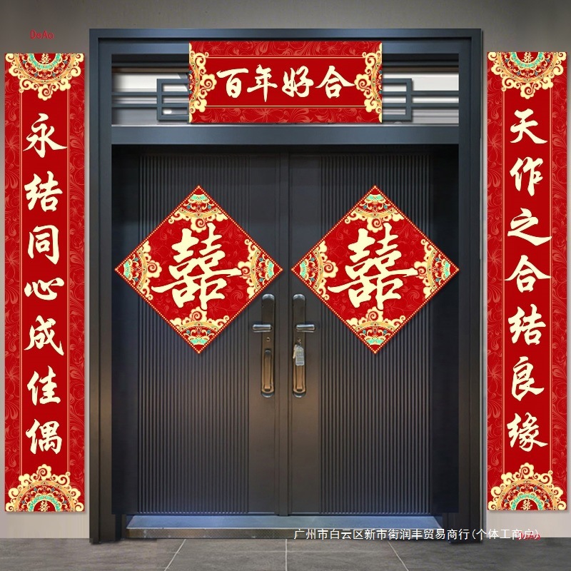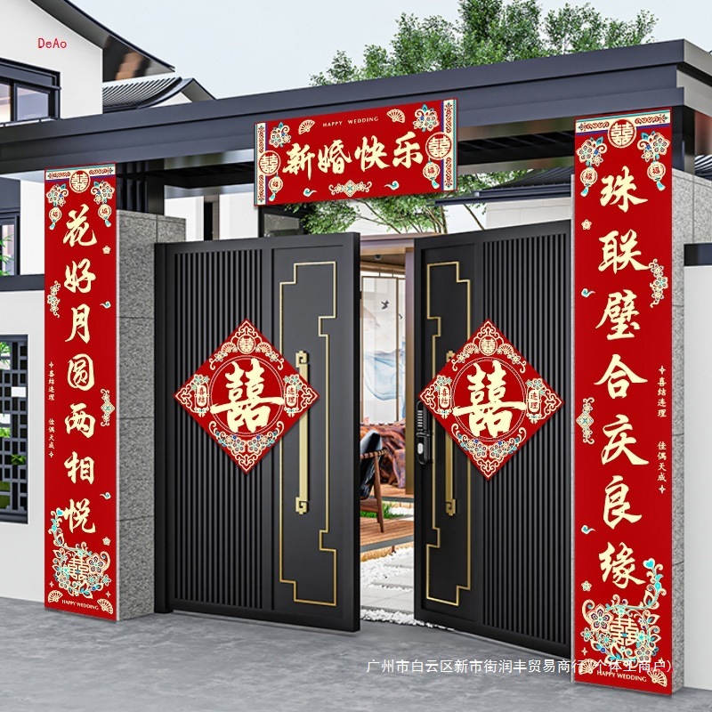 结婚对联男方农村大门米喜联全套婚礼女方出嫁入户门喜字贴装饰