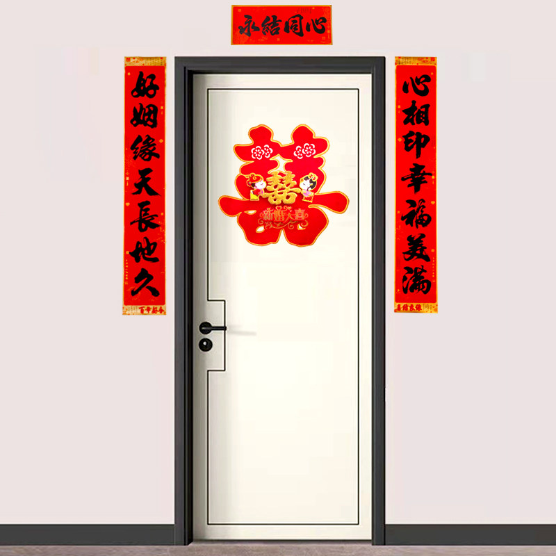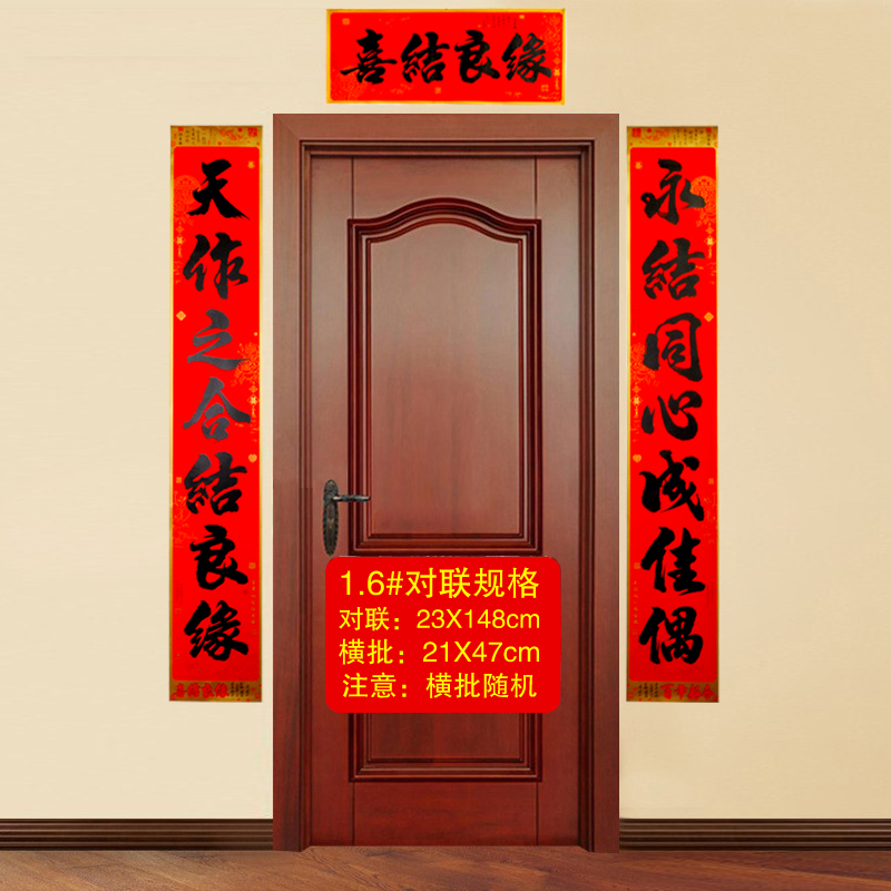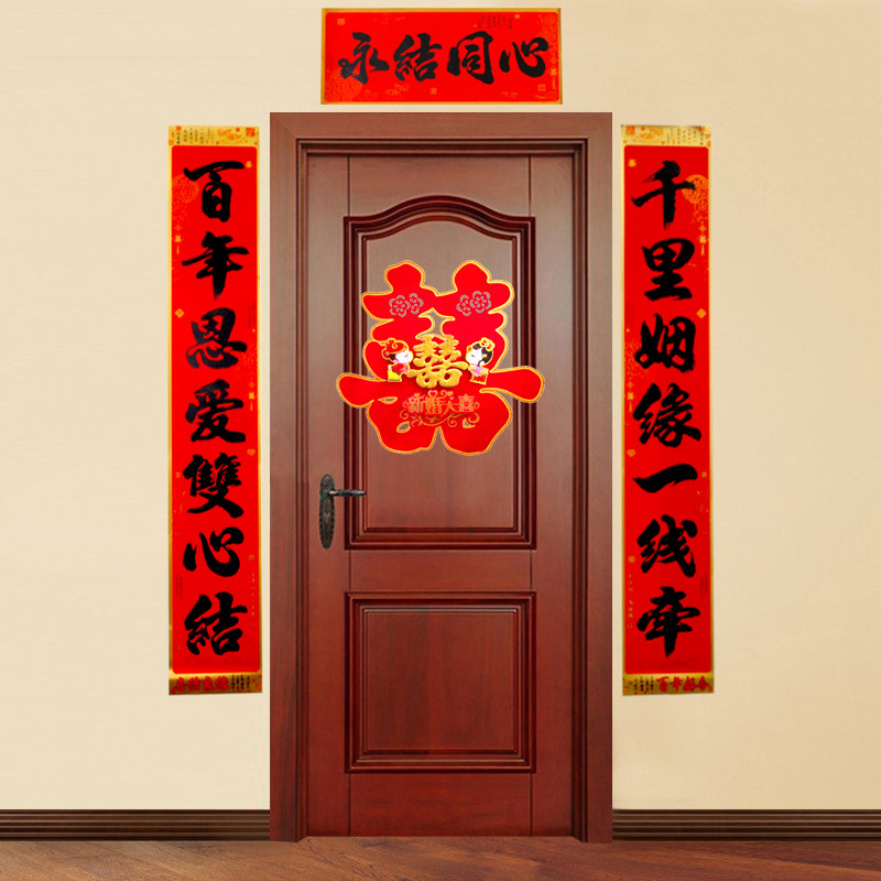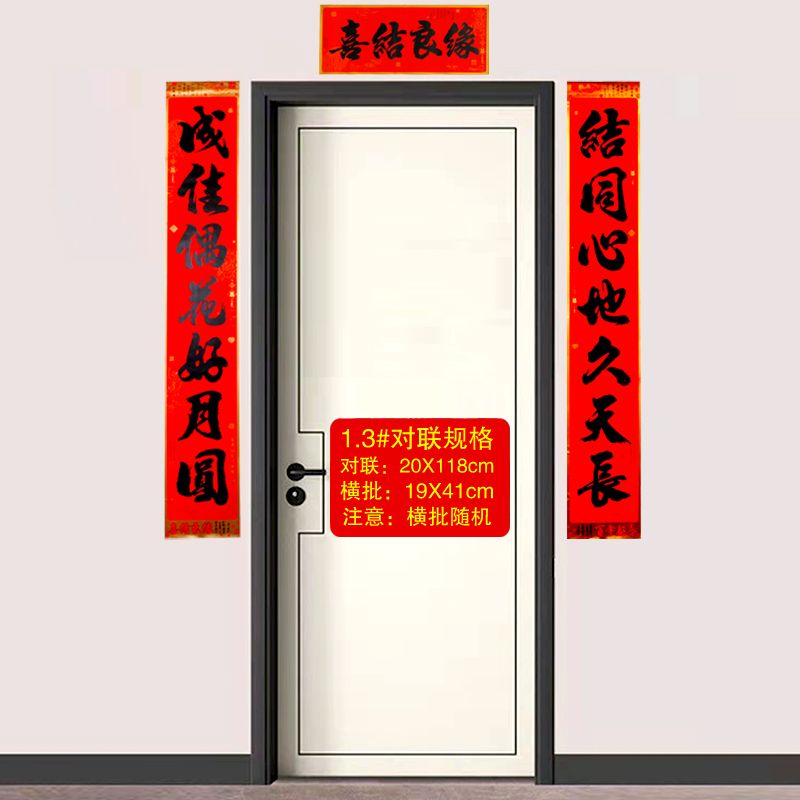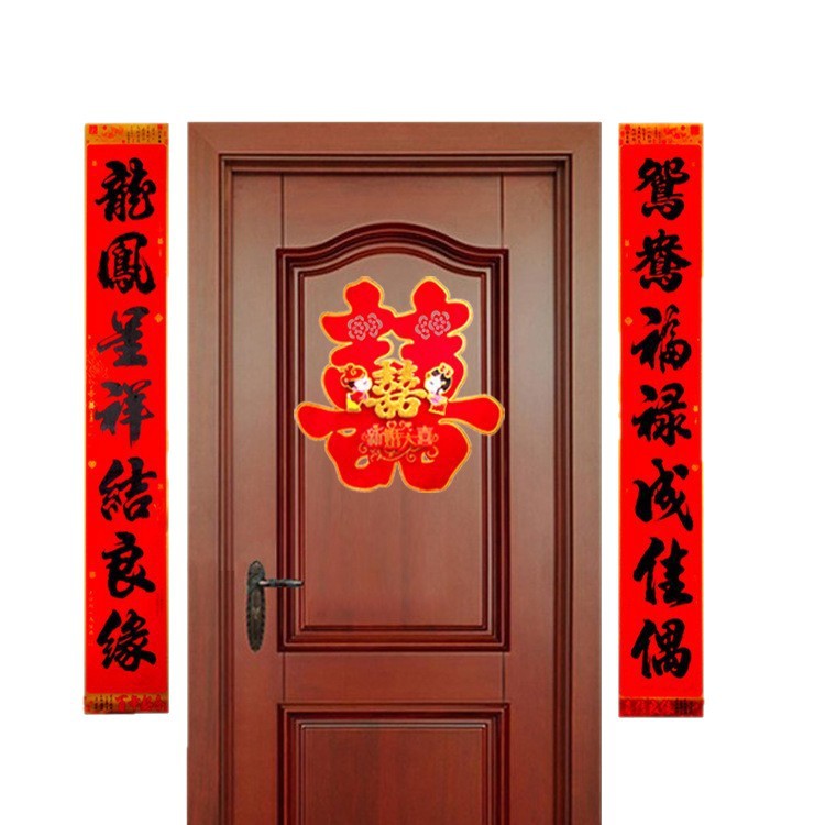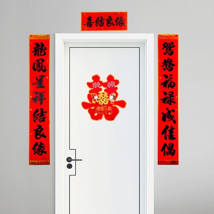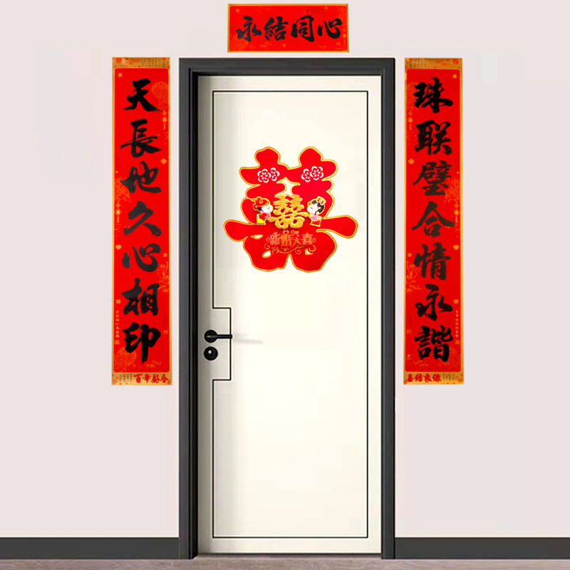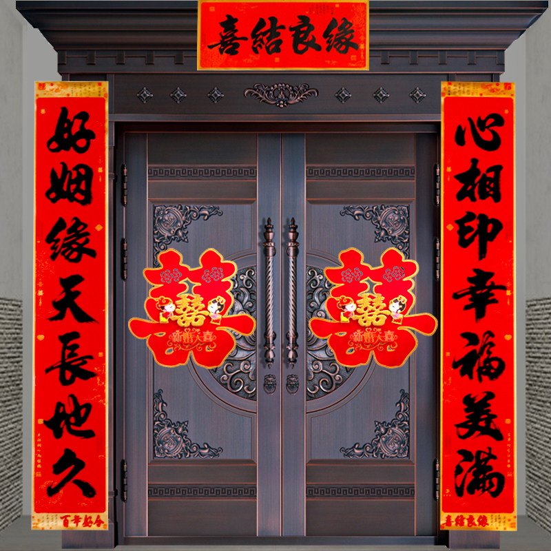 结婚对联黑字农村大门婚房布置卧室男方女方婚联全套出嫁新婚装饰