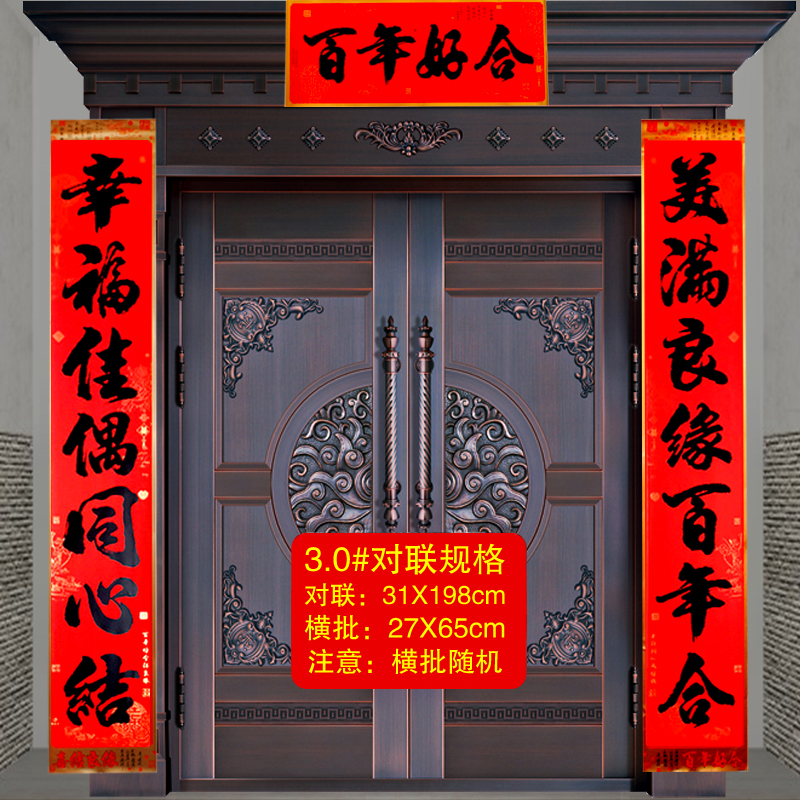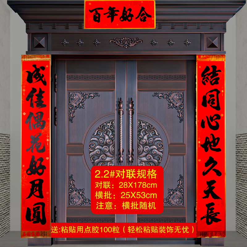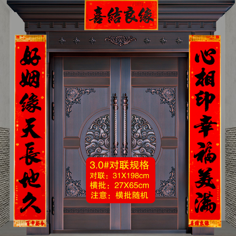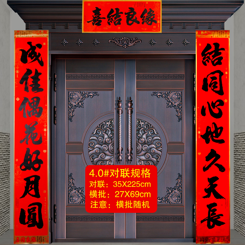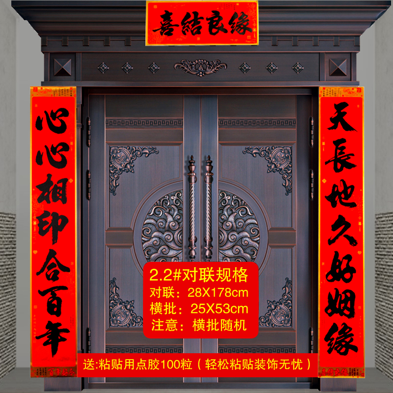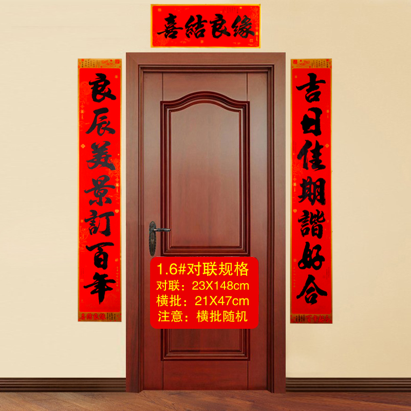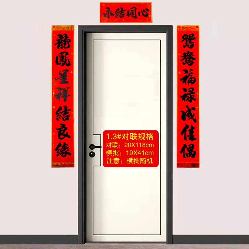 结婚对联黑字农村大门婚房布置卧室男方女方婚联全套出嫁新婚装饰