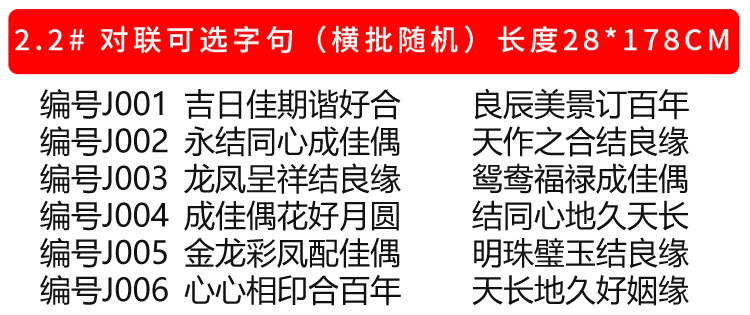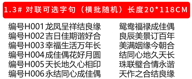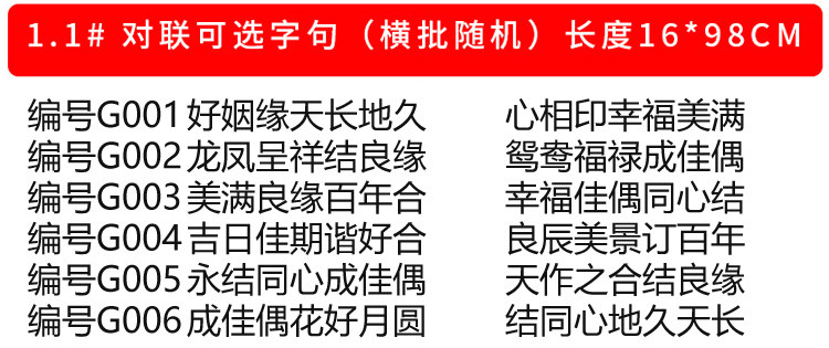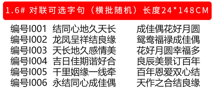 | black letter marriage couplets with wall sticker (free 2 wedding stickers with glue)(黑字婚联自带胶(送2喜字贴点胶)) | USD $3.03 | 756 piece available |