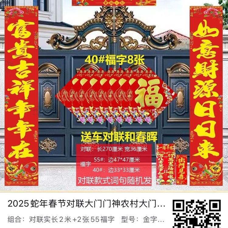 2026马年春节对联大门门神农村大门带门神全套春联农村全套家用
