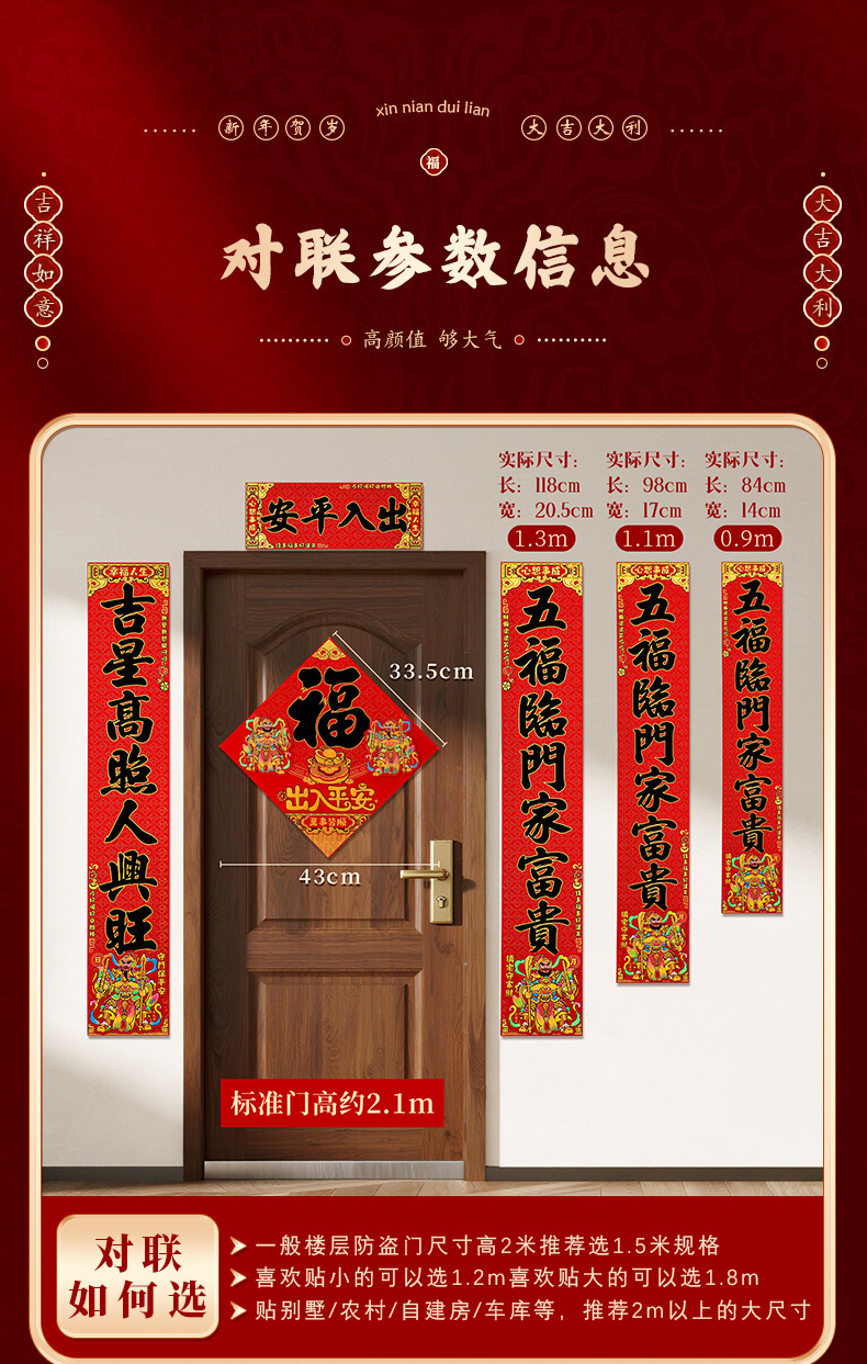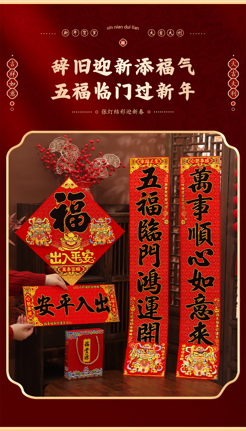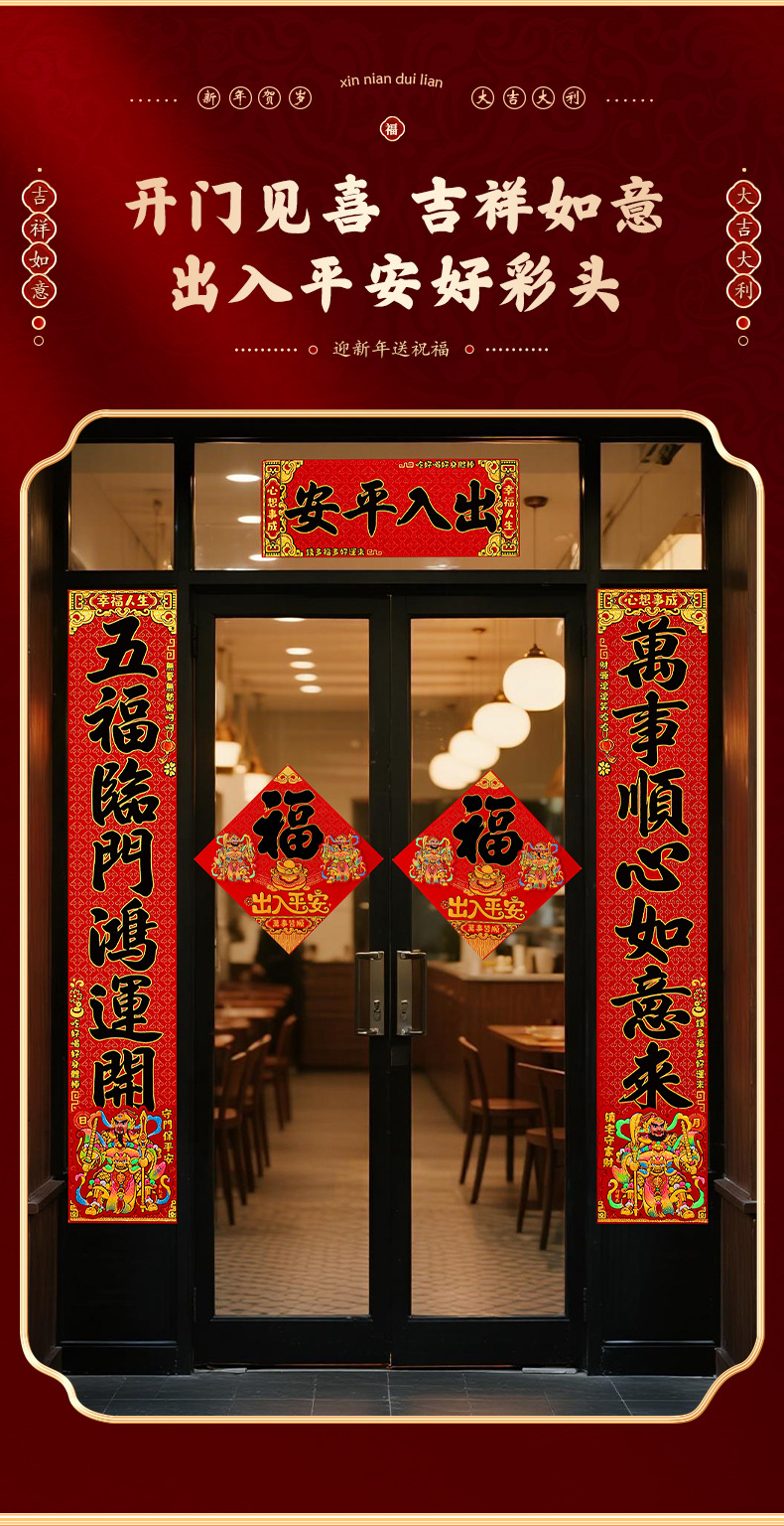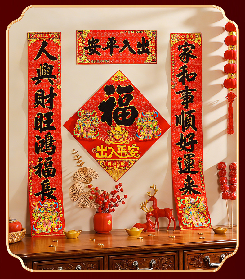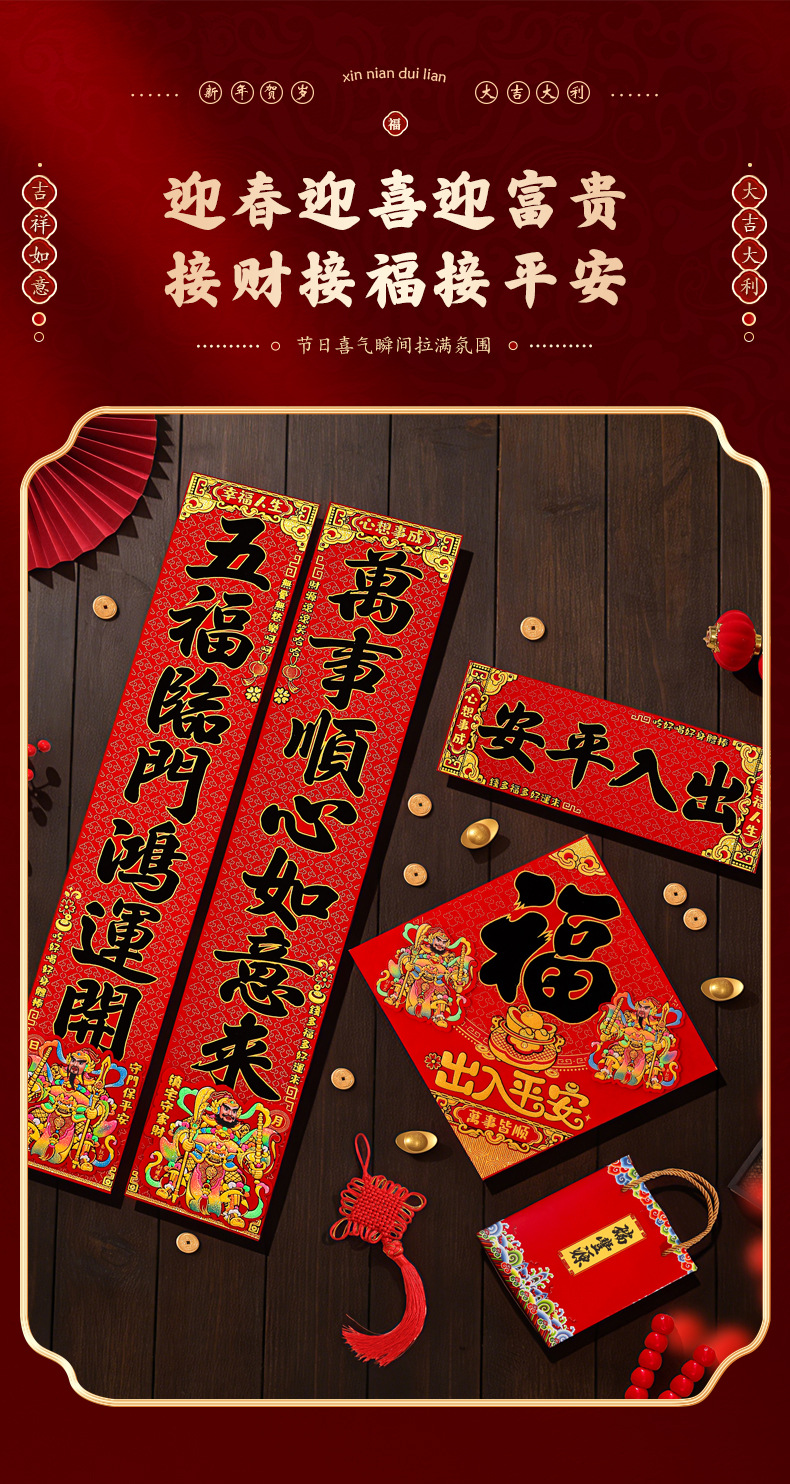 对联2026马年新款门贴过年春节福字装饰新年高档植绒农村大门春联