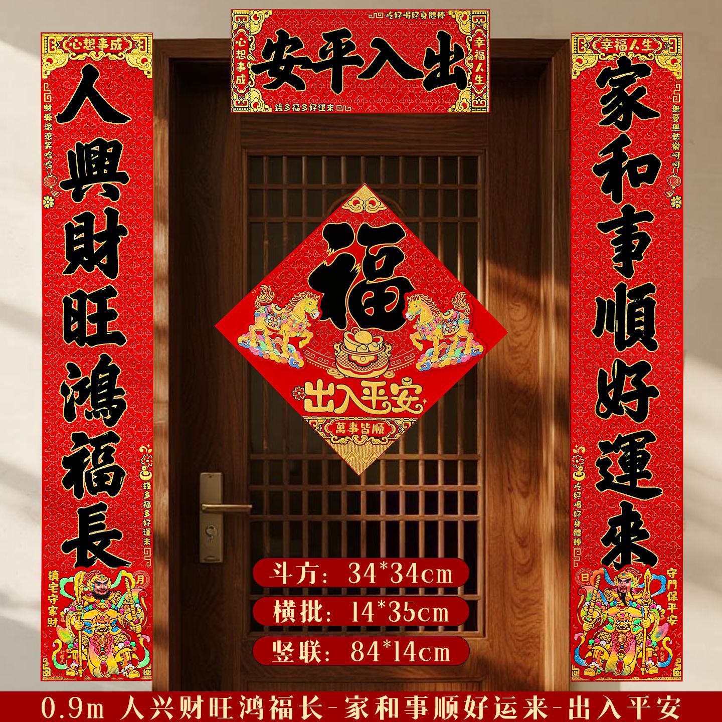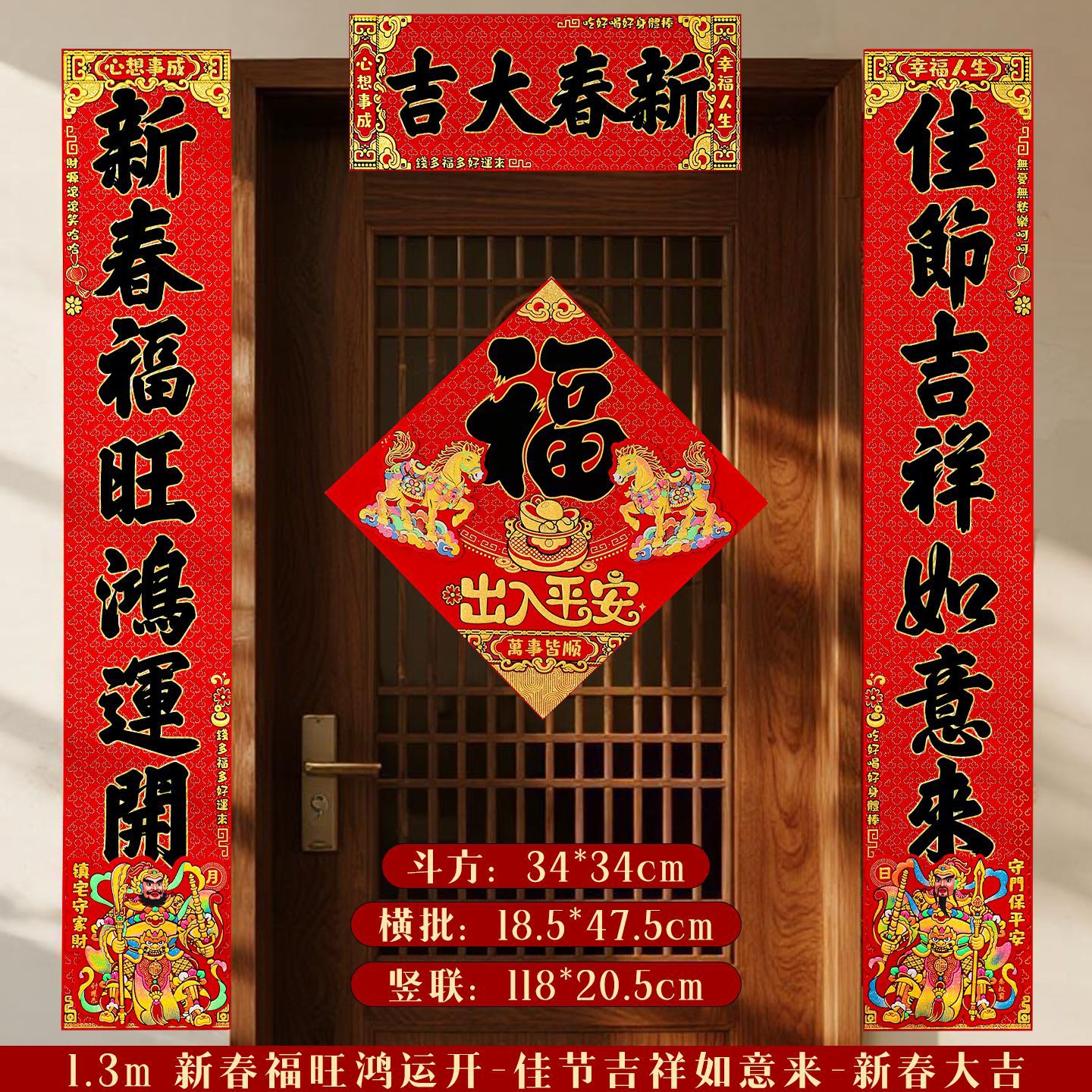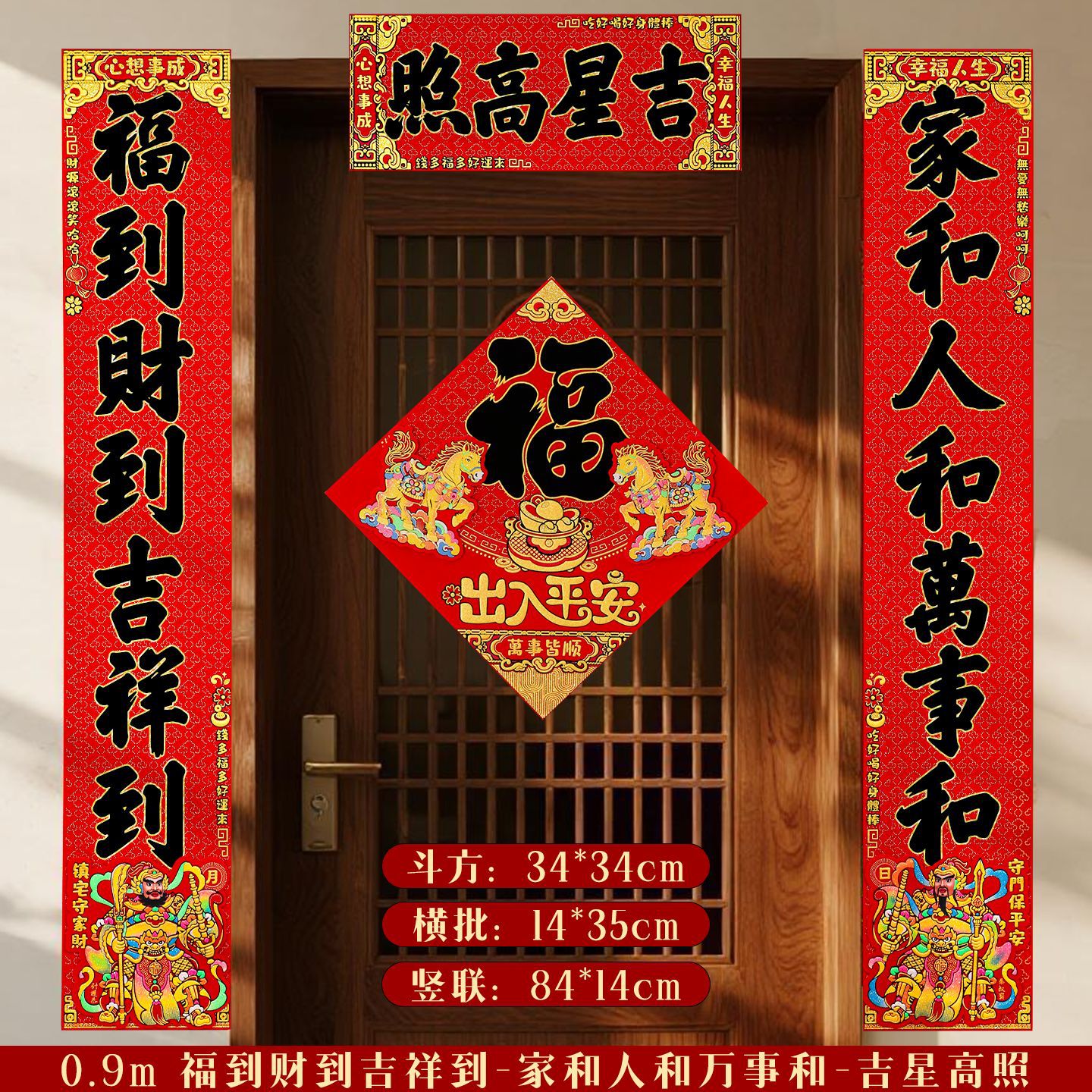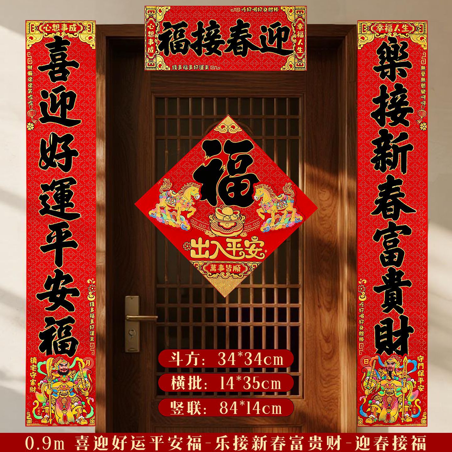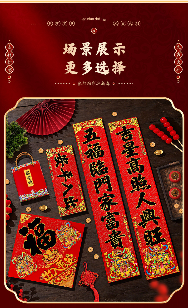 对联2026马年新款门贴过年春节福字装饰新年高档植绒农村大门春联