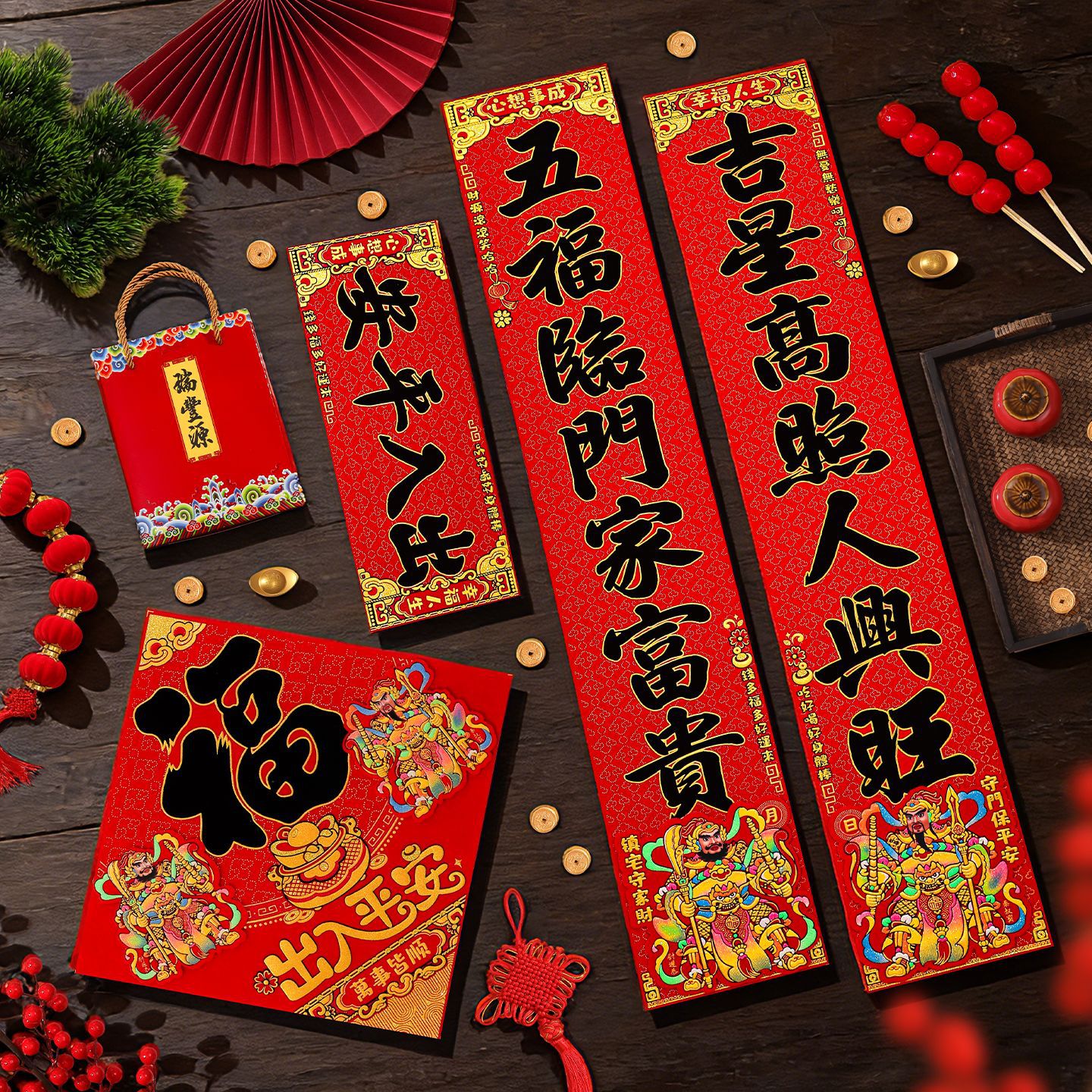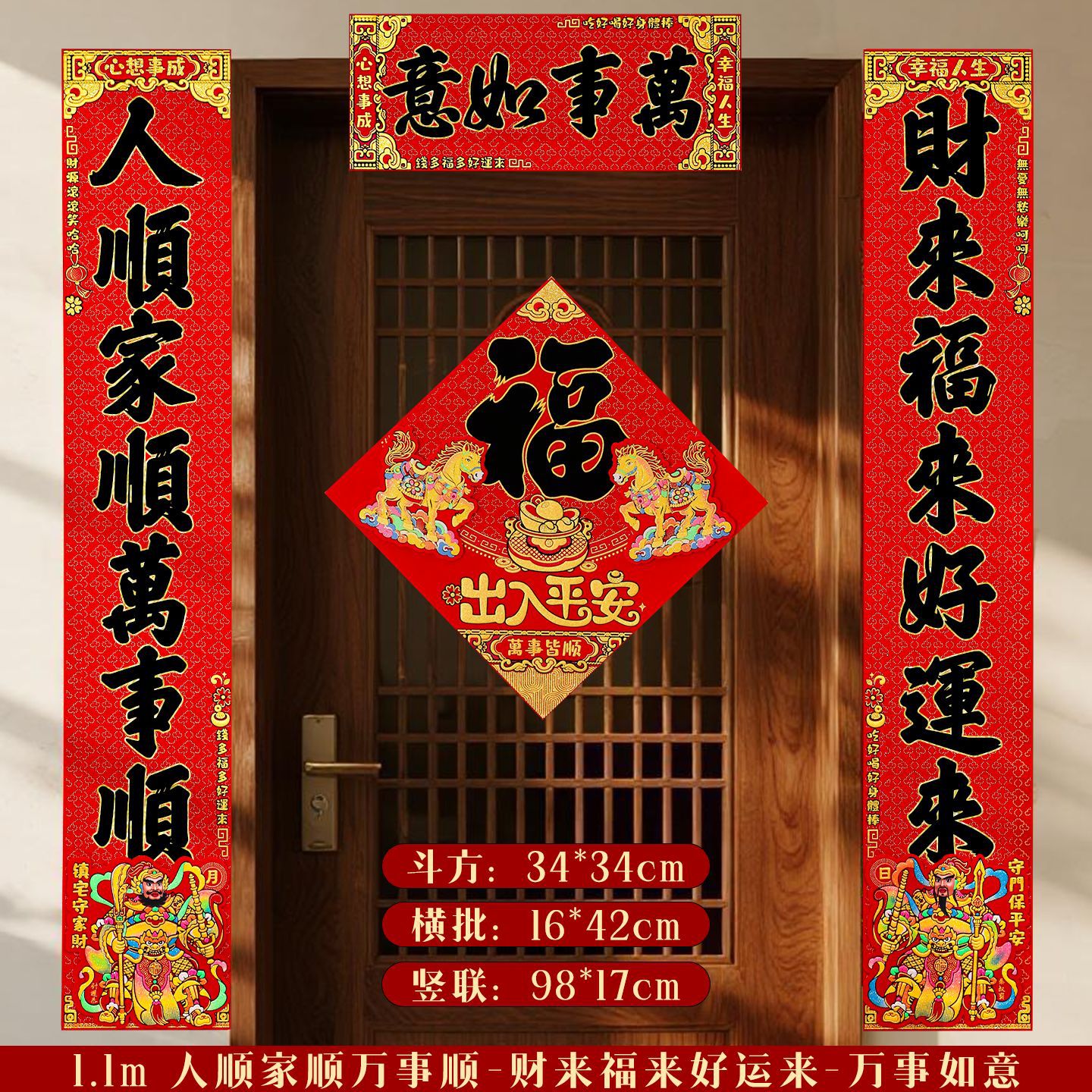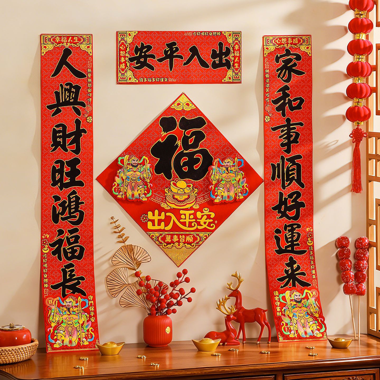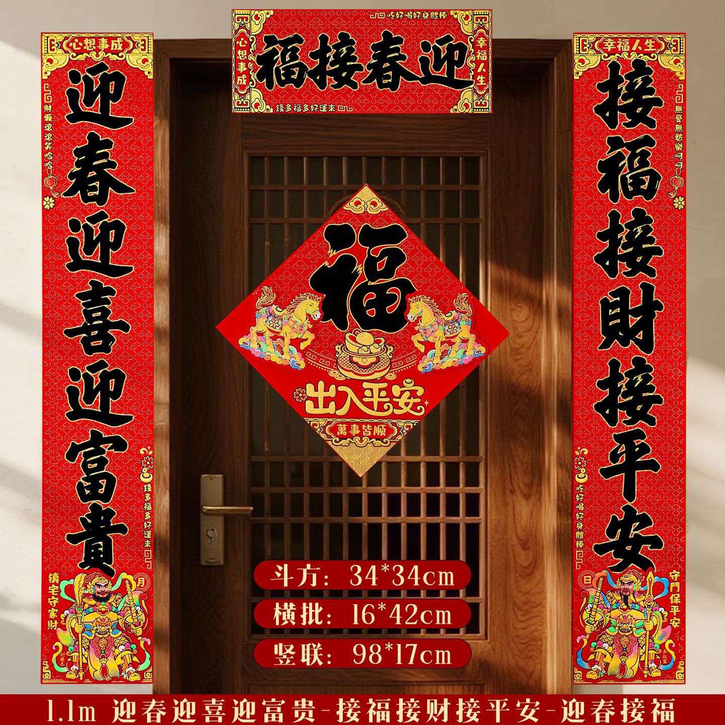 对联2026马年新款门贴过年春节福字装饰新年高档植绒农村大门春联