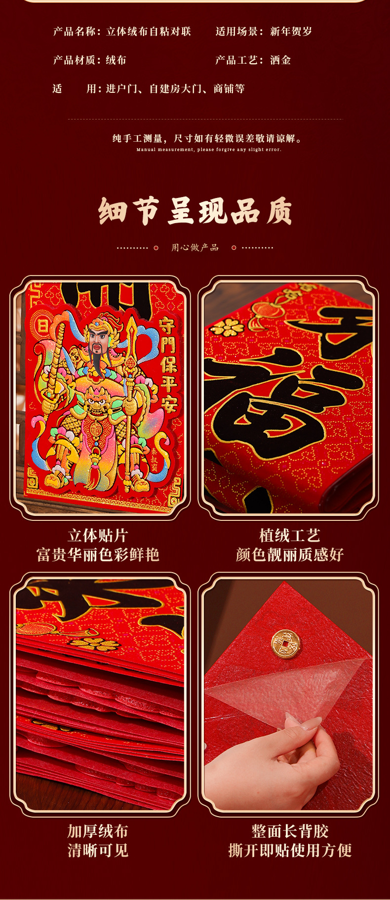 | 立体加厚绒布炫彩门神款【自带背胶】 | USD $7.62 | 10000 piece available |