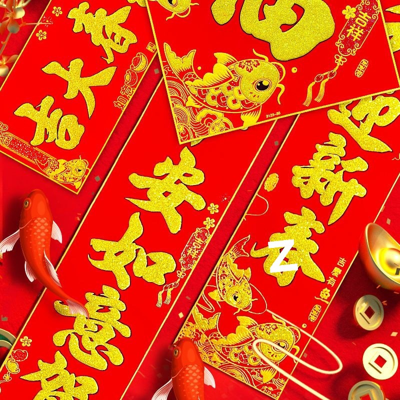 2025年对联粘贴式植绒自粘背胶新款龙年春联批发福字春联农村全套